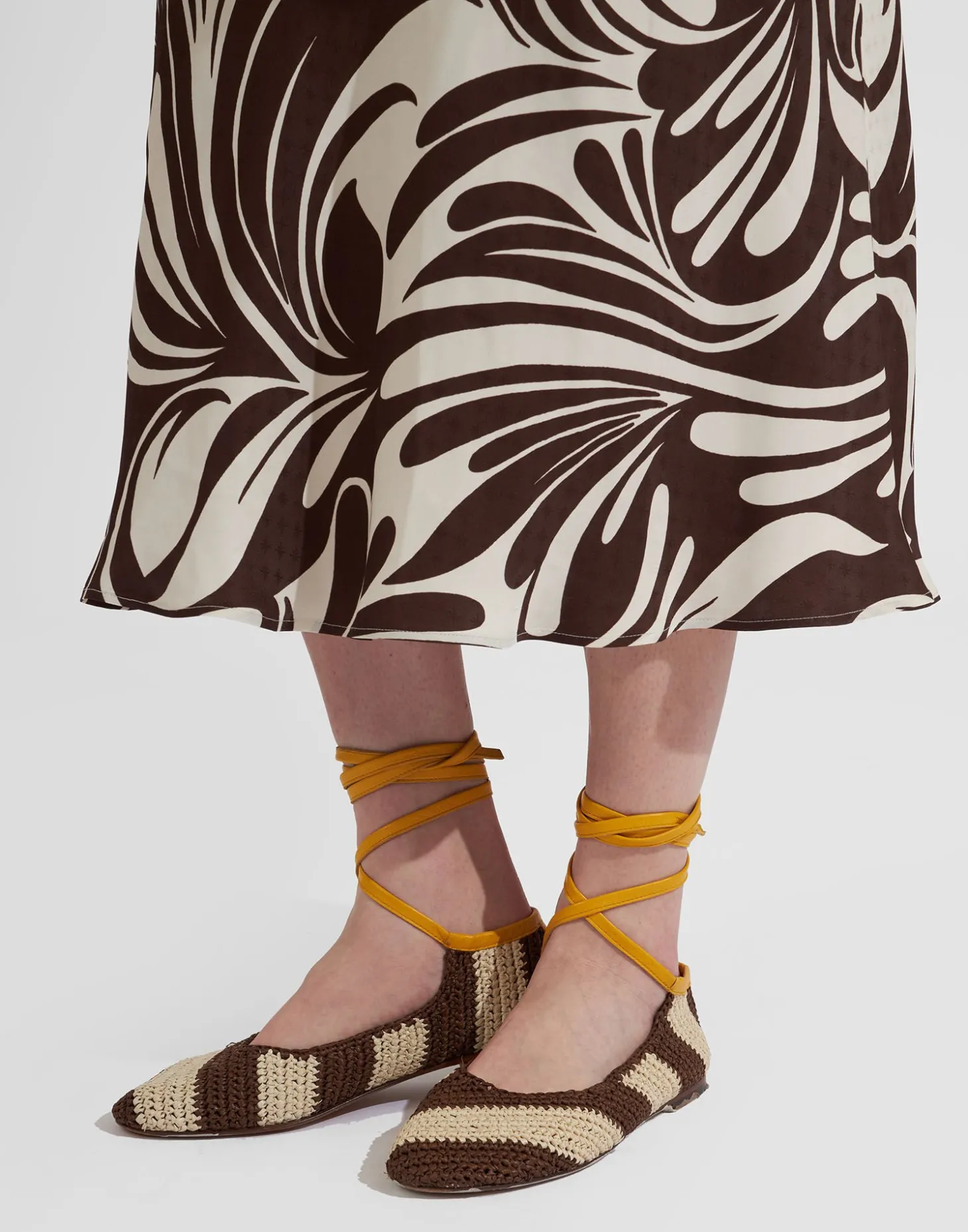 It’s official, we’re never taking these babies off. We brought the ballet flat to the beach and back with the Veneziana, elevating a classic in meticulously woven two-tone raffia, adding adjustable wraparound ankle ties and a printed silk twill lining in colorful contrast print. We mean it when we say we’re waring these everywhere – to the beach, to the bar, with dresses, skirts, jeans…..they’re so comfy, we could sleep in them (but they’re far too cute to be kept to indoors).