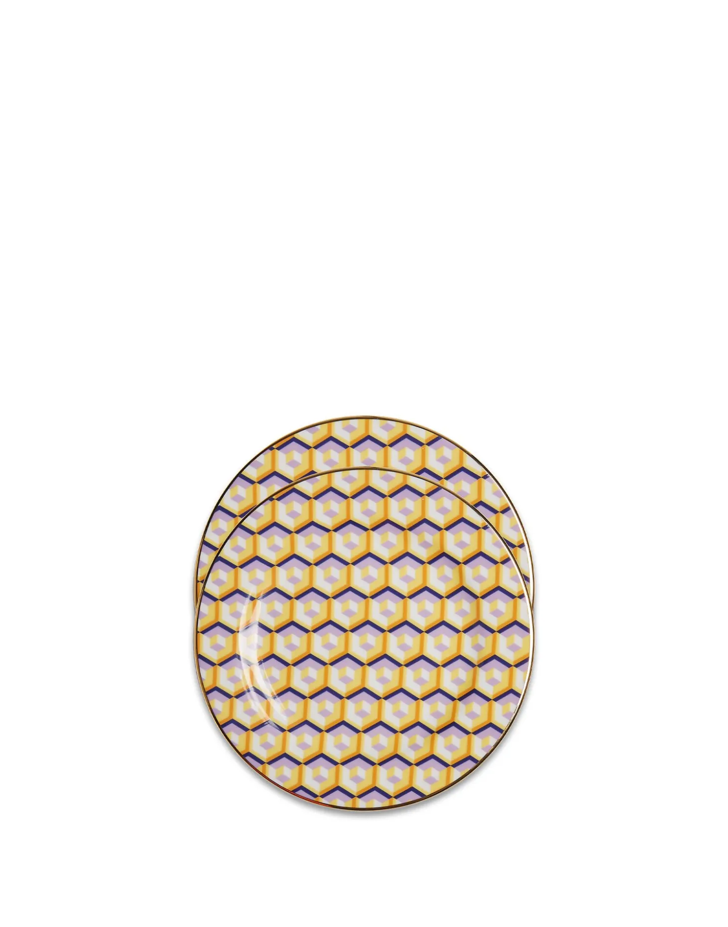 Dessert Plate Set of 2Cubi Giallo in Porcelain