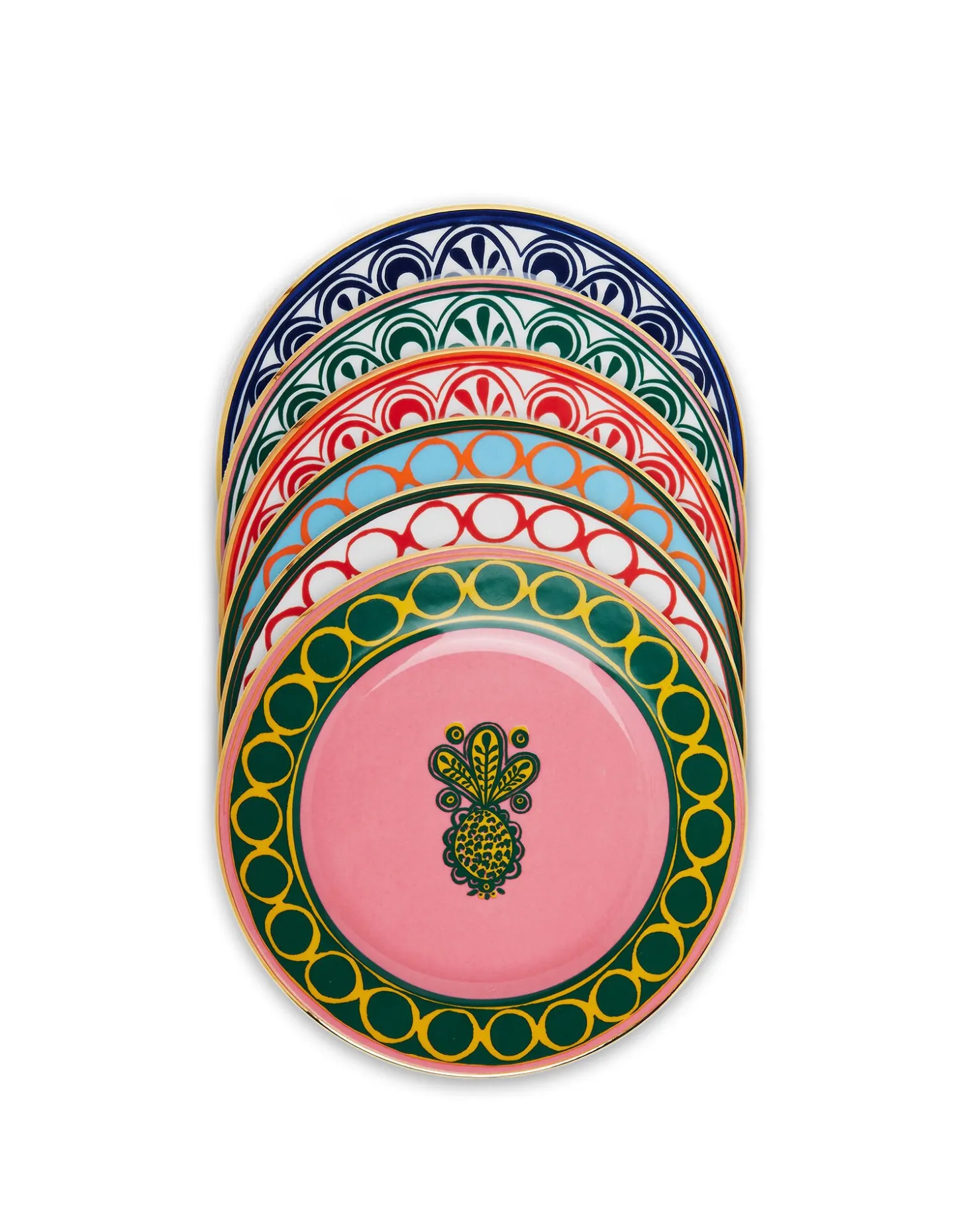 Made in collaboration with Italian porcelain greats, Ancap, these Dessert Plates are crafted from fine porcelain with hand-painted 18K gold trim. The set features our juicy Pineapple print in six eye-popping colorways and if you like a maximalist table (obviously we do) come with Vases and Tablecloths to match. It’s the perfect way to step up your hostess, wedding, or housewarming game! Oh, and they go in the dishwasher. You’re welcome.
