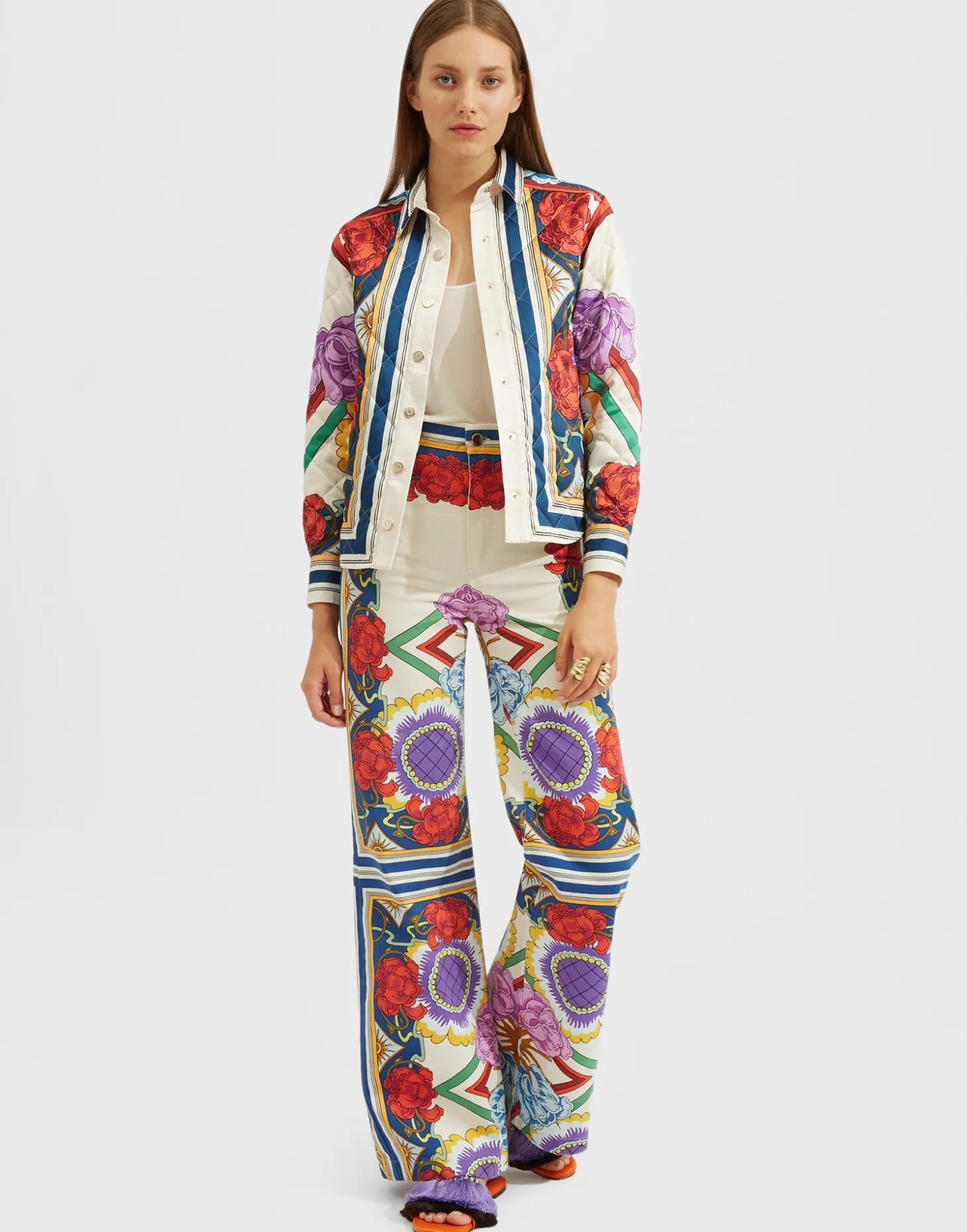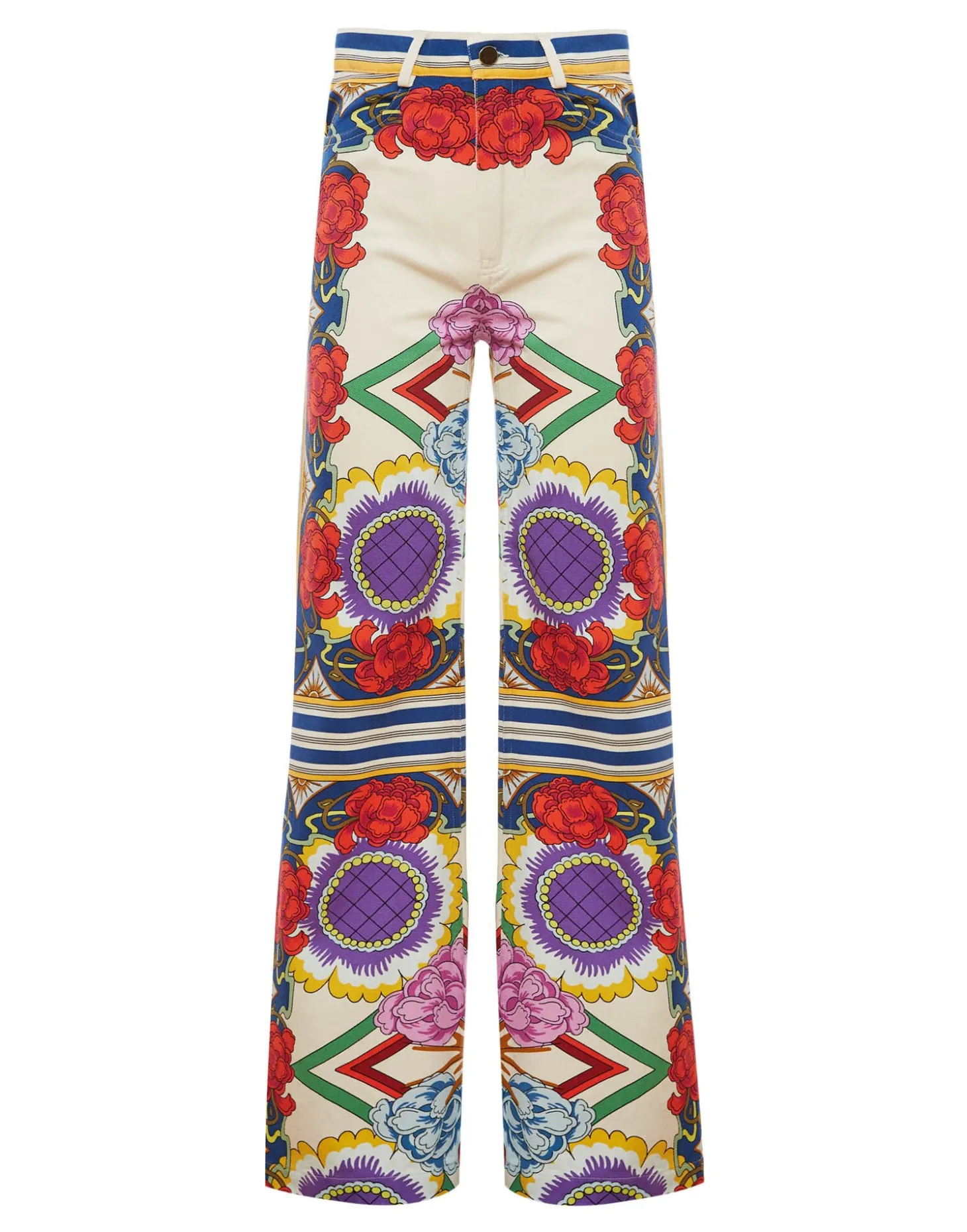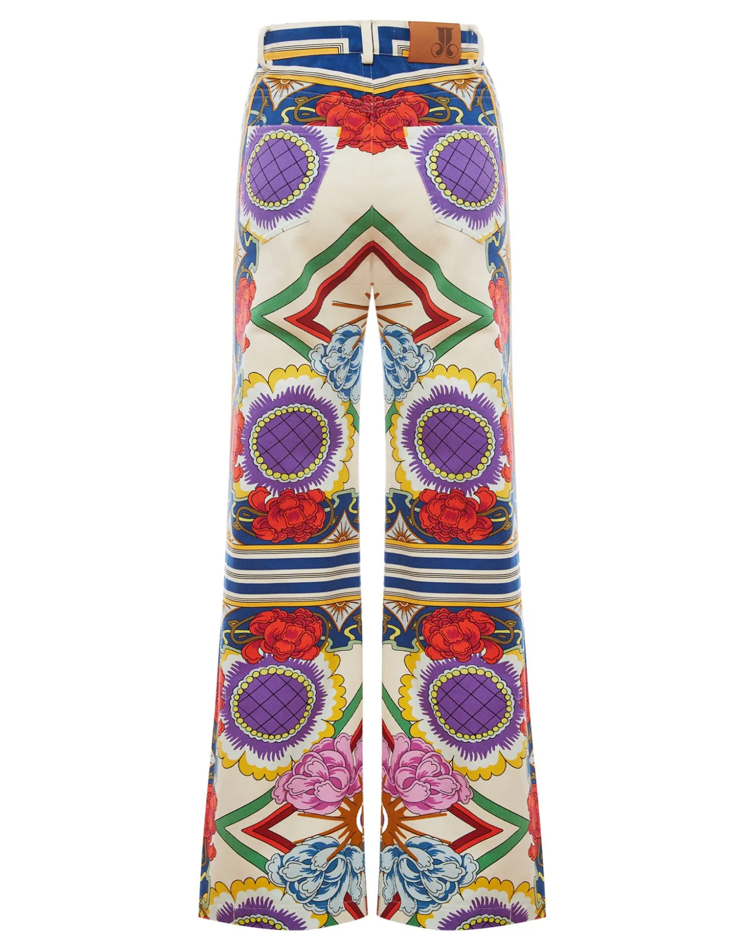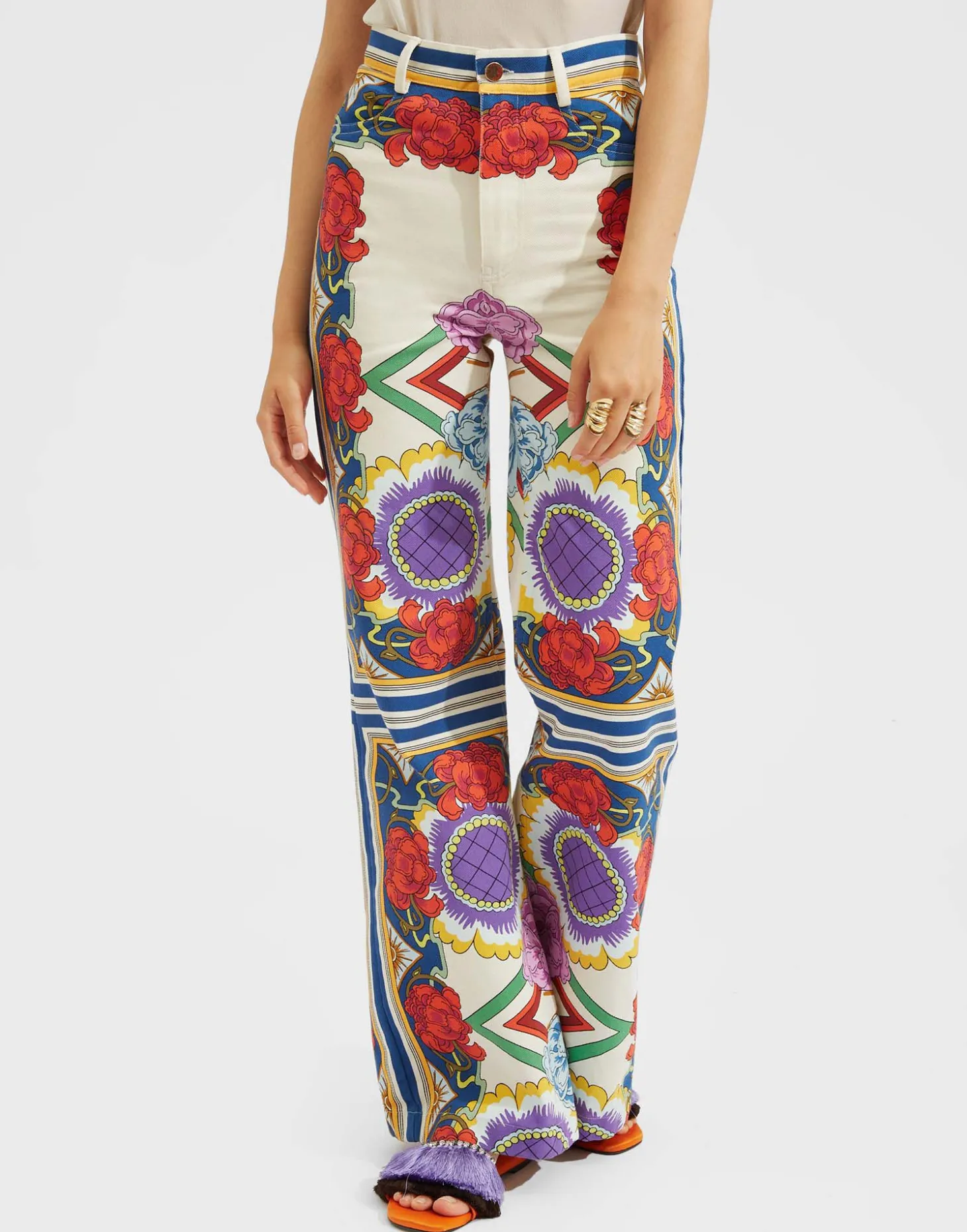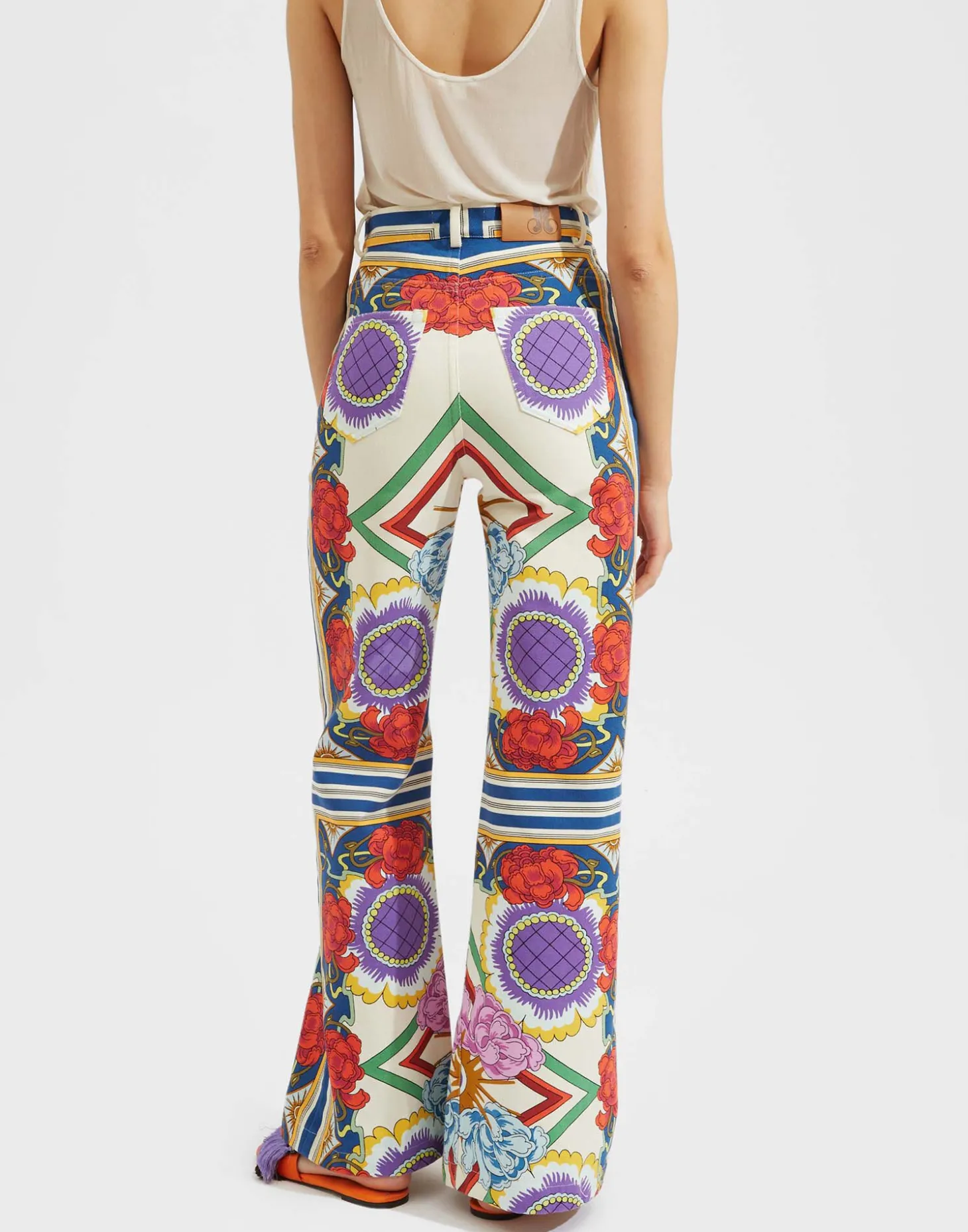 La DoubleJ does denim! Designed for those looking to elevate this everyday essential, these are not your average flares. With a super high waist that hugs your curves in all the right places, these are a modern take on a retro classic, with our beautiful hand-placed Liberty print and embroidered back pockets. Falling straight to the knee before opening up into a wide, romantic bell-bottom, these beauties have a little stretch built in, so you can channel your inner Studio64 without diminishing their booty-boosting shape.