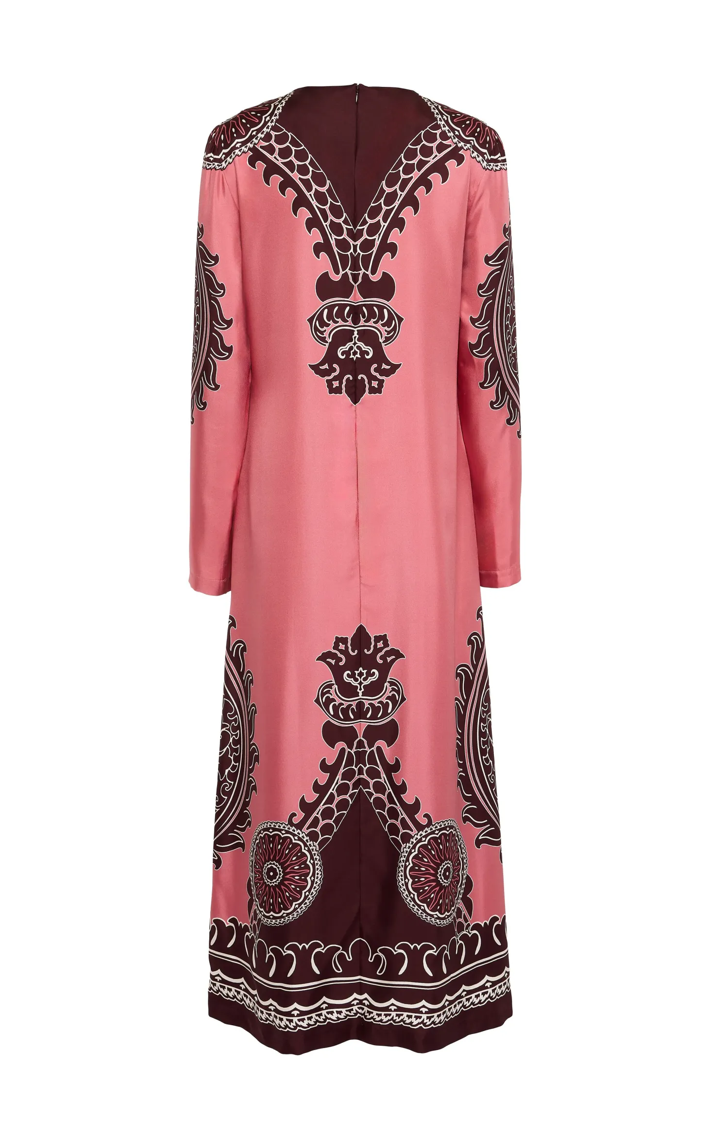 Long Sleeve Swing DressOltrarno Placée Pink in Silk Twill