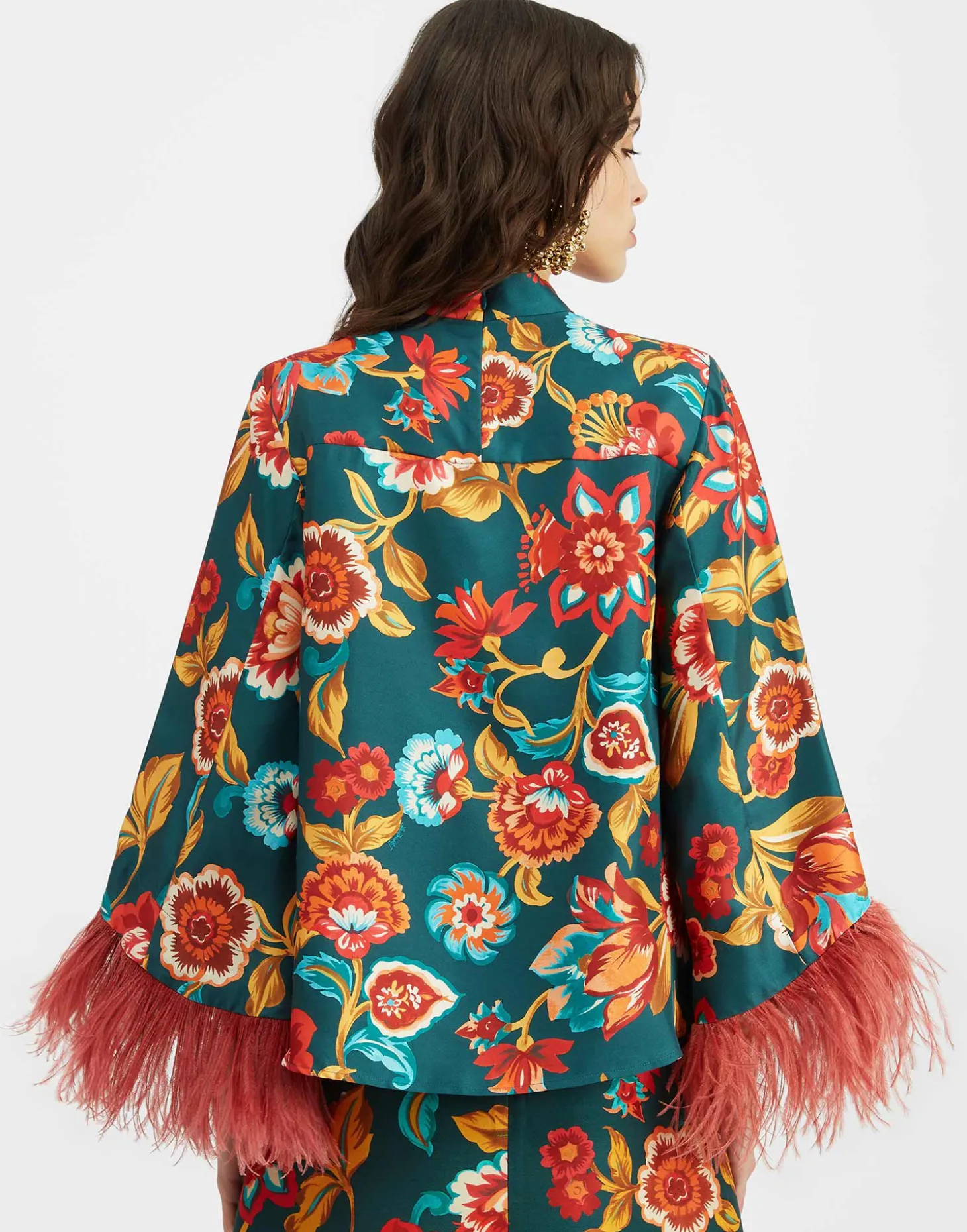 Make An Exit TopHottie Emerald in Silk Twill With Feathers