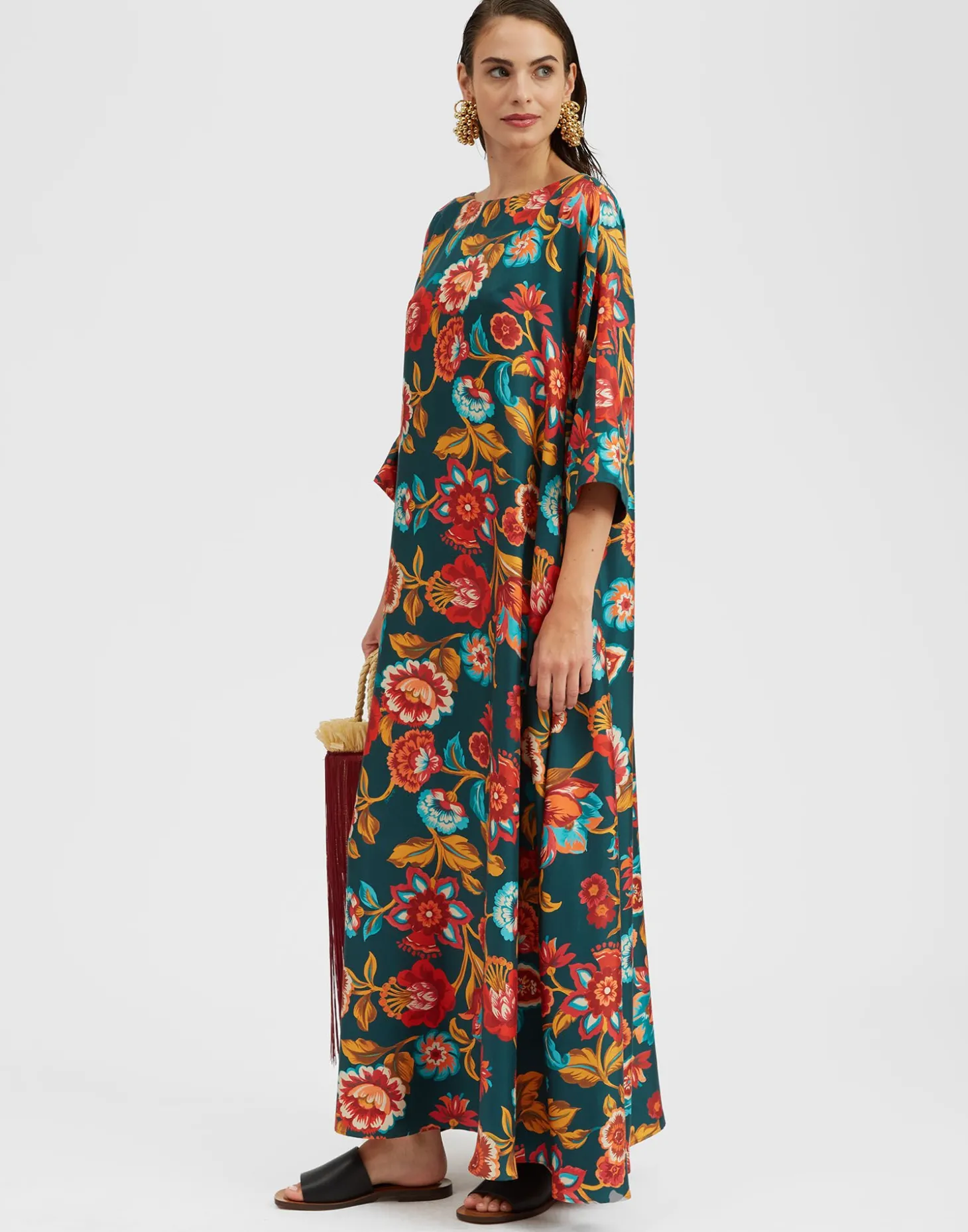 Muumuu Dress Round NeckHottie Emerald in Silk Twill