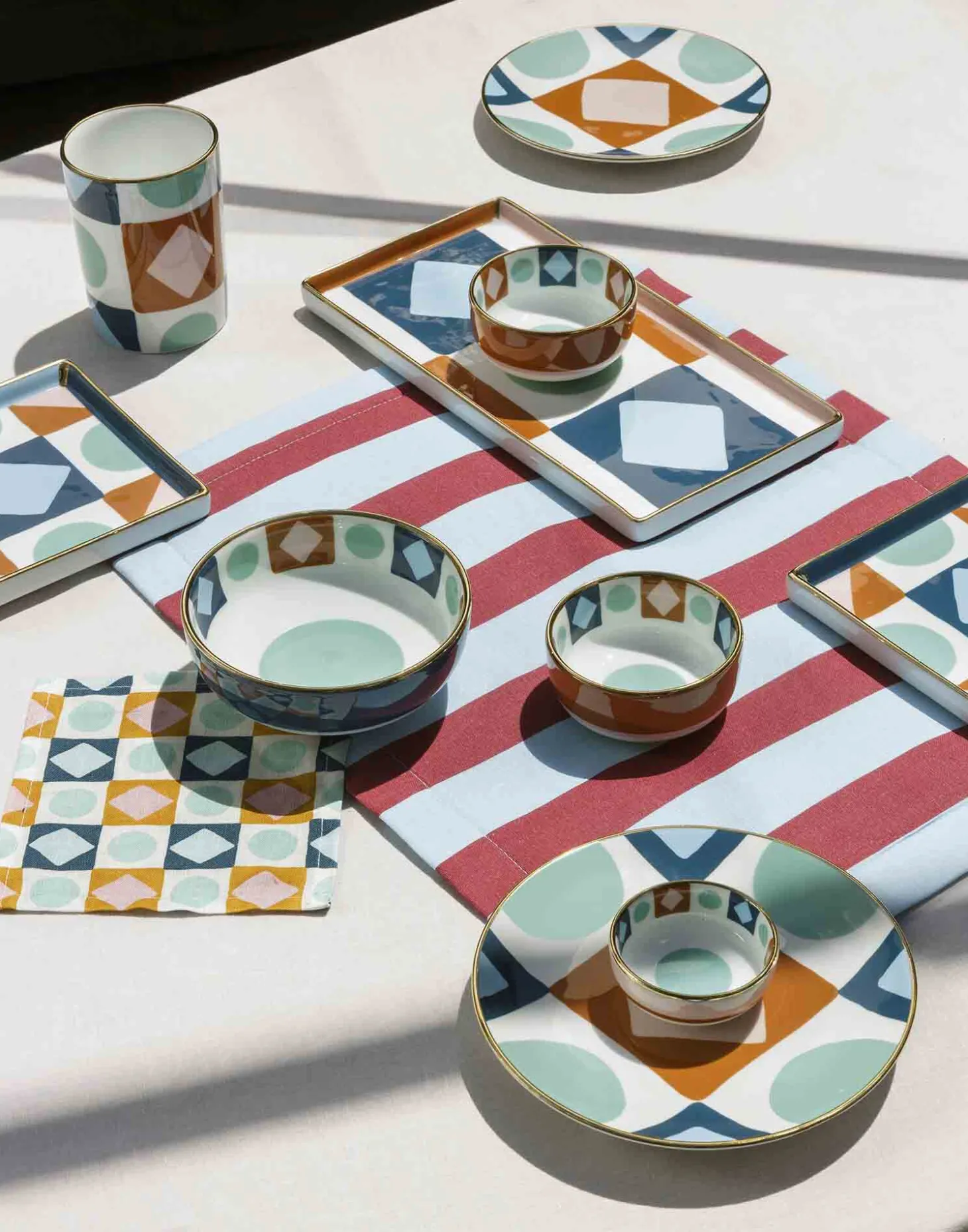 Up your entertaining ante with this charming set of three porcelain nesting bowls ready to add a bang to olives, guacamole, caprese salads, Genovese pesto pastas and whatever else you’ve got flying out of your kitchen. Printed with our fun-loving Diamond Dots design on the inside, block colors on the outside, each is thoughtfully sized for ultimate snacking but will do double duty scattered around your house to hold your jewelry, wallet, keys – you know the drill.