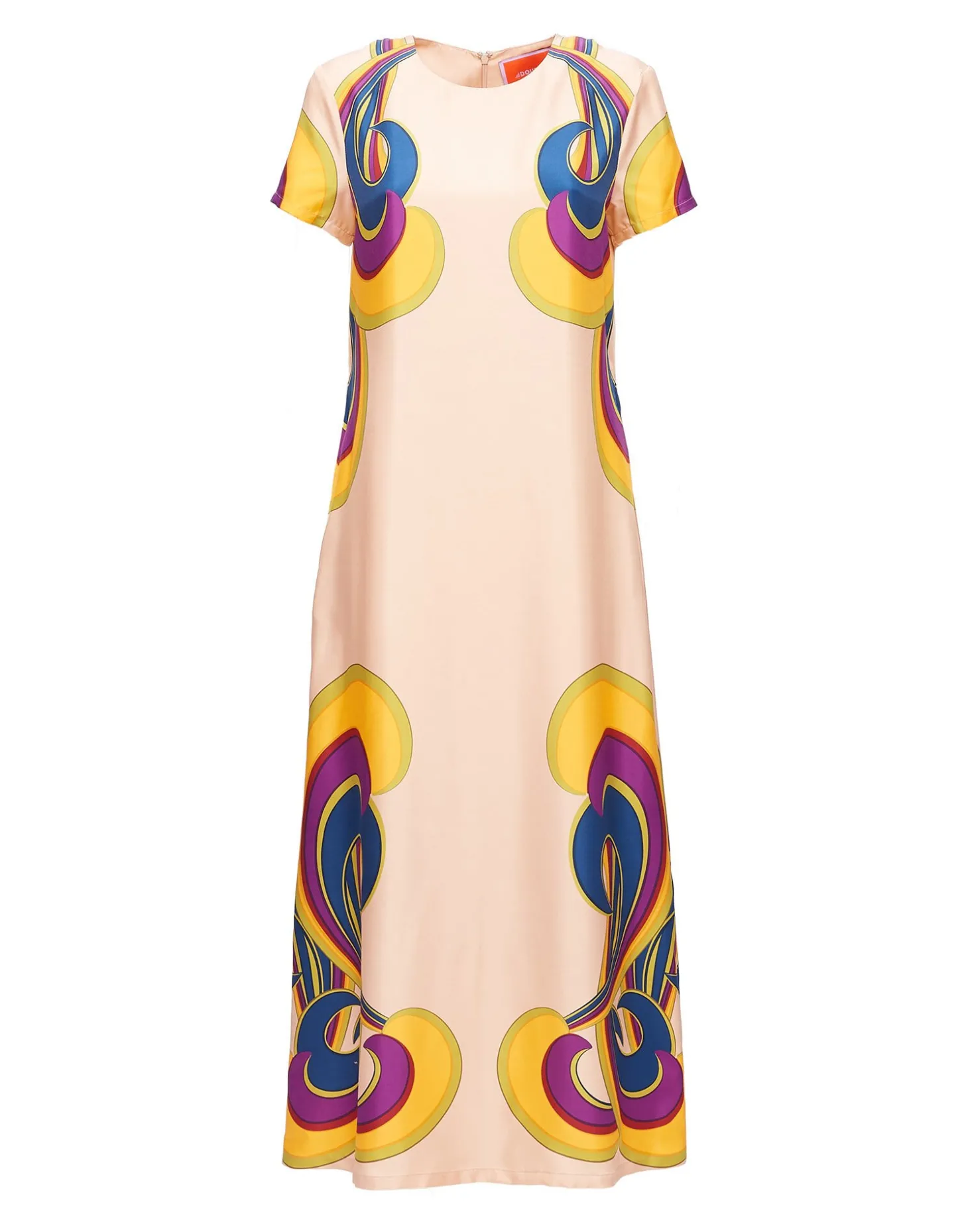 Swing DressRainbow Swirl Rosa Placée in Twill Silk