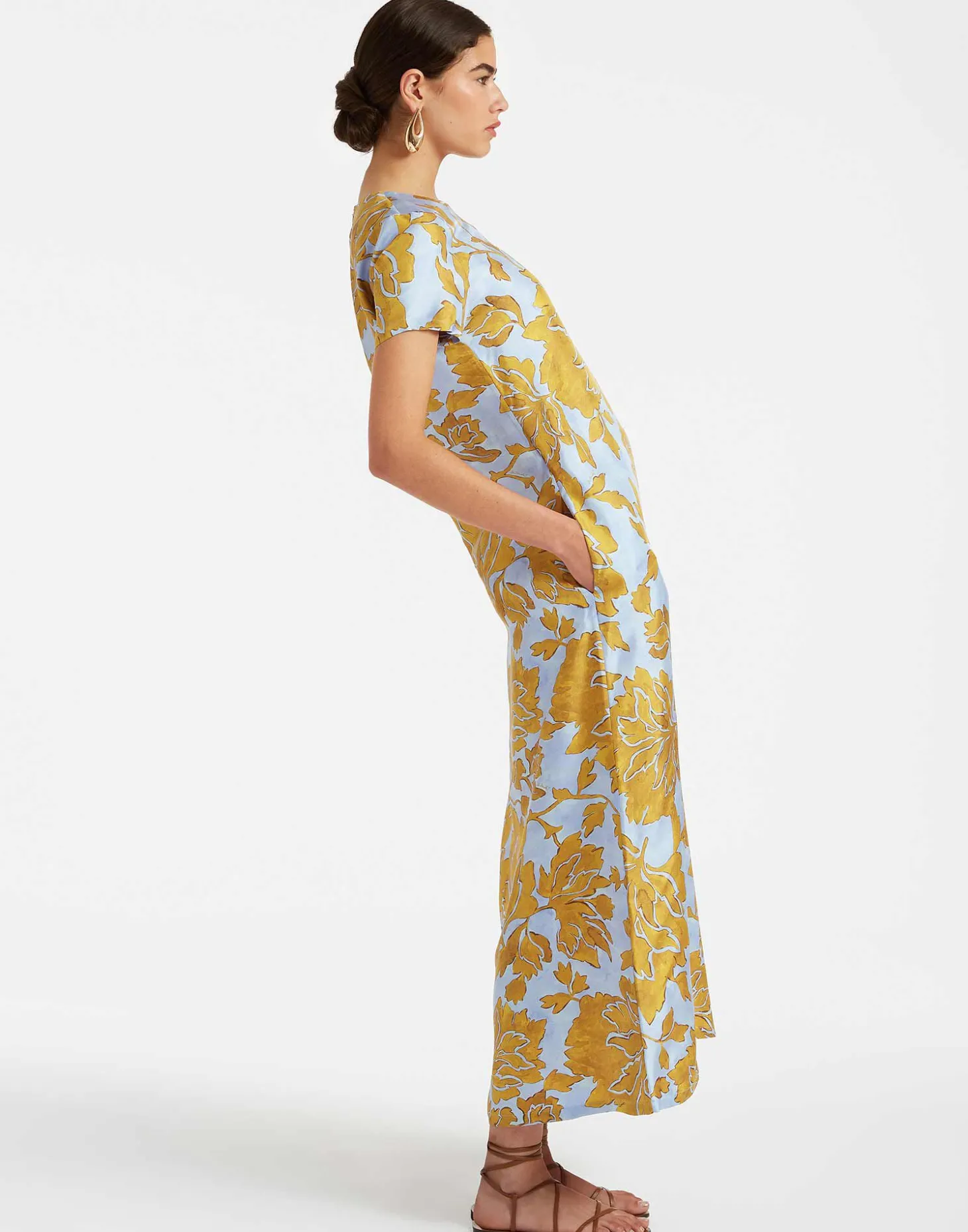 You never forget your first love and this is the story of our Swing Dress. LDJ’s very first model, this easiest of silhouettes is designed to take you from Sunday breakfast to a snappy desk job and all the way through cocktails. We’ve crafted it from our substantial silk twill that doesn’t cling and cut it slim in the shoulders, generous in the hips. Pockets? We got ‘em, plus a long A-line hem for sassier swooshing. Embrace a dolce vita mantra in this Tangle print.