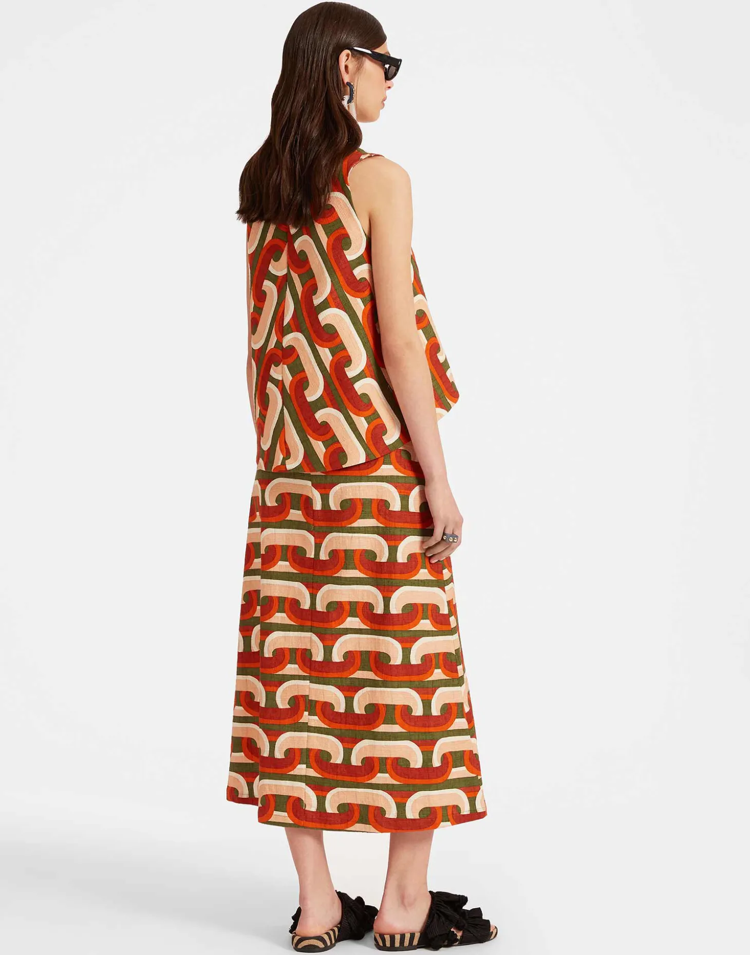 Long and lovely, this super skirt has a mid-rise waist, falling slim on the hips into an A-line shape that swings above the ankle. Fabulous in our latest print, it arrives for the summer season crafted from Italian shot cotton which has a nubby linen feel perfect for city sauntering or vineyard hopping. Also great: pockets. Fabulously versatile from the office to weddings, vacations and beyond, tuck in your fave silk shirt and call it an outfit.