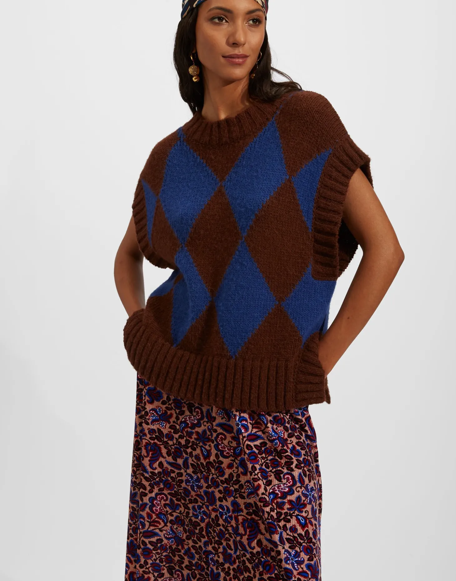 What statement sweater feels better than one crafted from soft bouclè wool? Our Argyle Gilet is made in Italy from a texture-fest alpaca wool blend and is designed to bring high vibes to winter wardrobes in these vibrant happy hues. With a mock neck and slits on the hips, it’s a stylist’s dream with its mannish oversized fit that brings plenty of swag to pretty print dresses or black turtlenecks alike.