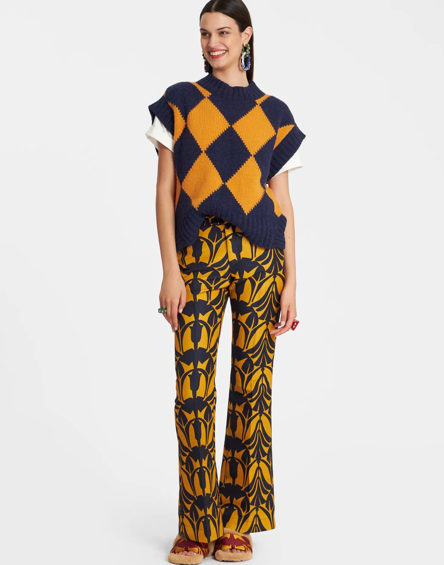 What statement sweater feels better than one crafted from soft bouclè wool? Our Argyle Gilet is made in Italy from a texture-fest alpaca wool blend and is designed to bring high vibes to winter wardrobes in these vibrant happy hues. With a mock neck and slits on the hips, it’s a stylist’s dream with its mannish oversized fit that brings plenty of swag to pretty print dresses or black turtlenecks alike.