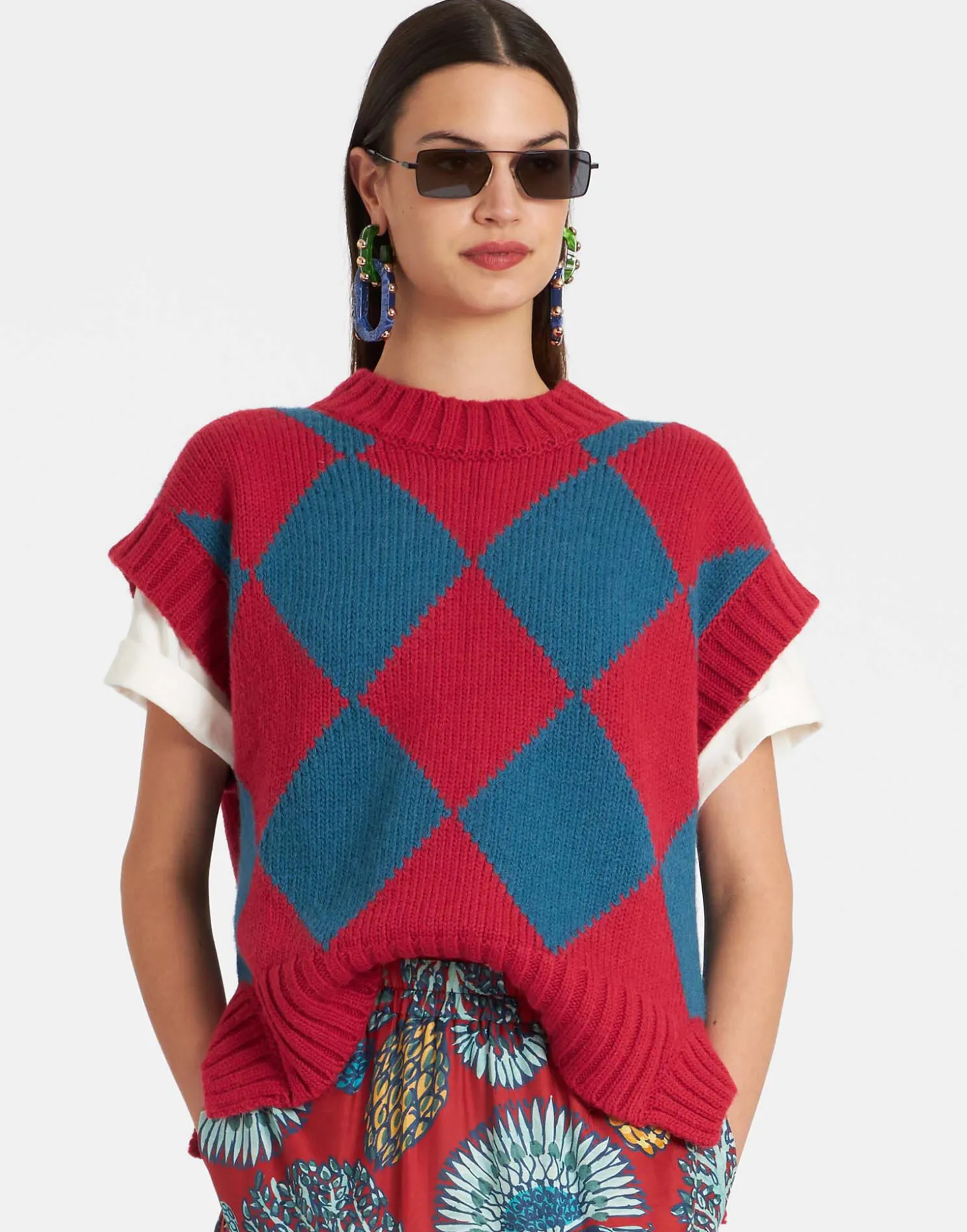 What statement sweater feels better than one crafted from soft bouclè wool? Our Argyle Gilet is made in Italy from a texture-fest alpaca wool blend and is designed to bring high vibes to winter wardrobes in these vibrant happy hues. With a mock neck and slits on the hips, it’s a stylist’s dream with its mannish oversized fit that brings plenty of swag to pretty print dresses or black turtlenecks alike.
