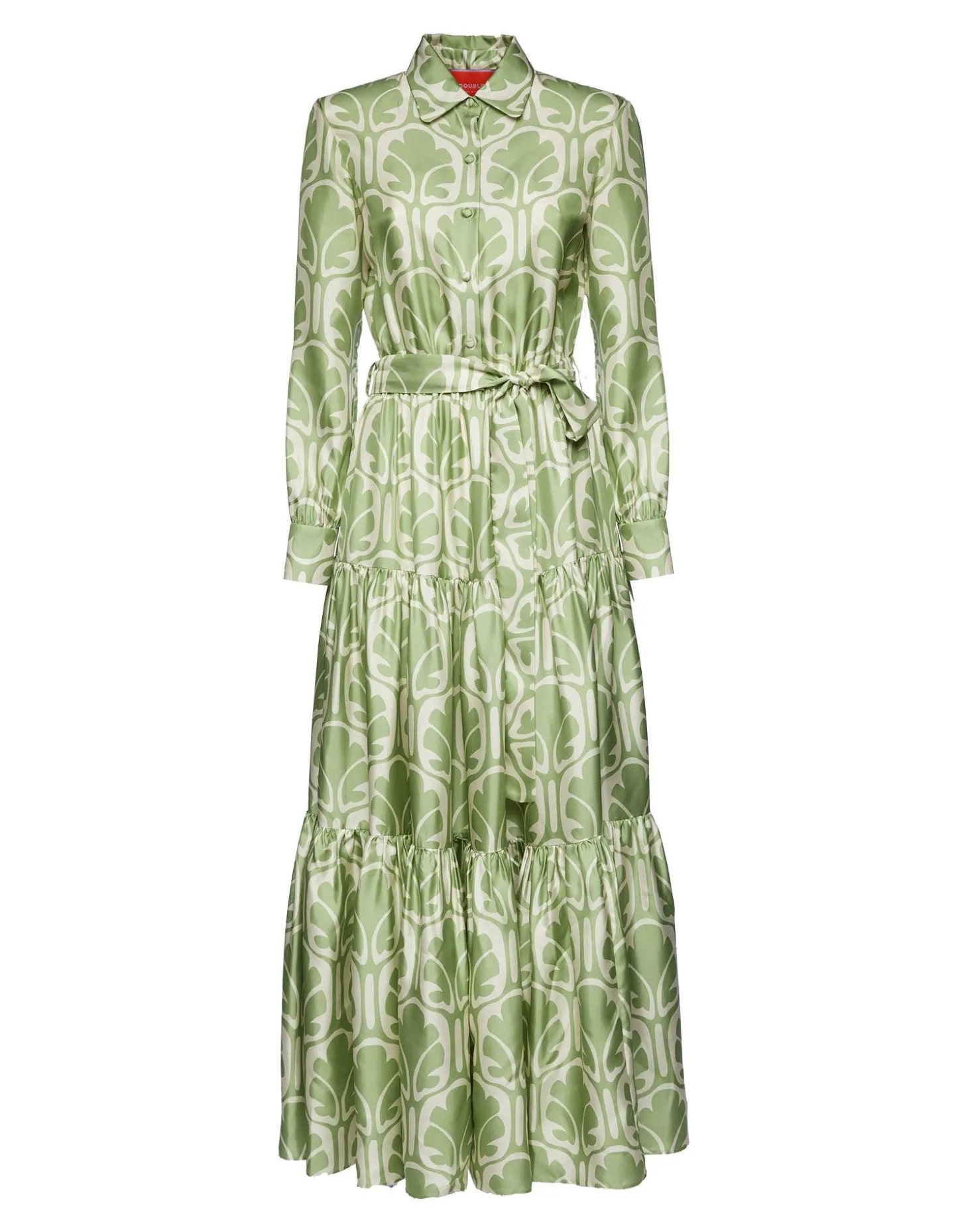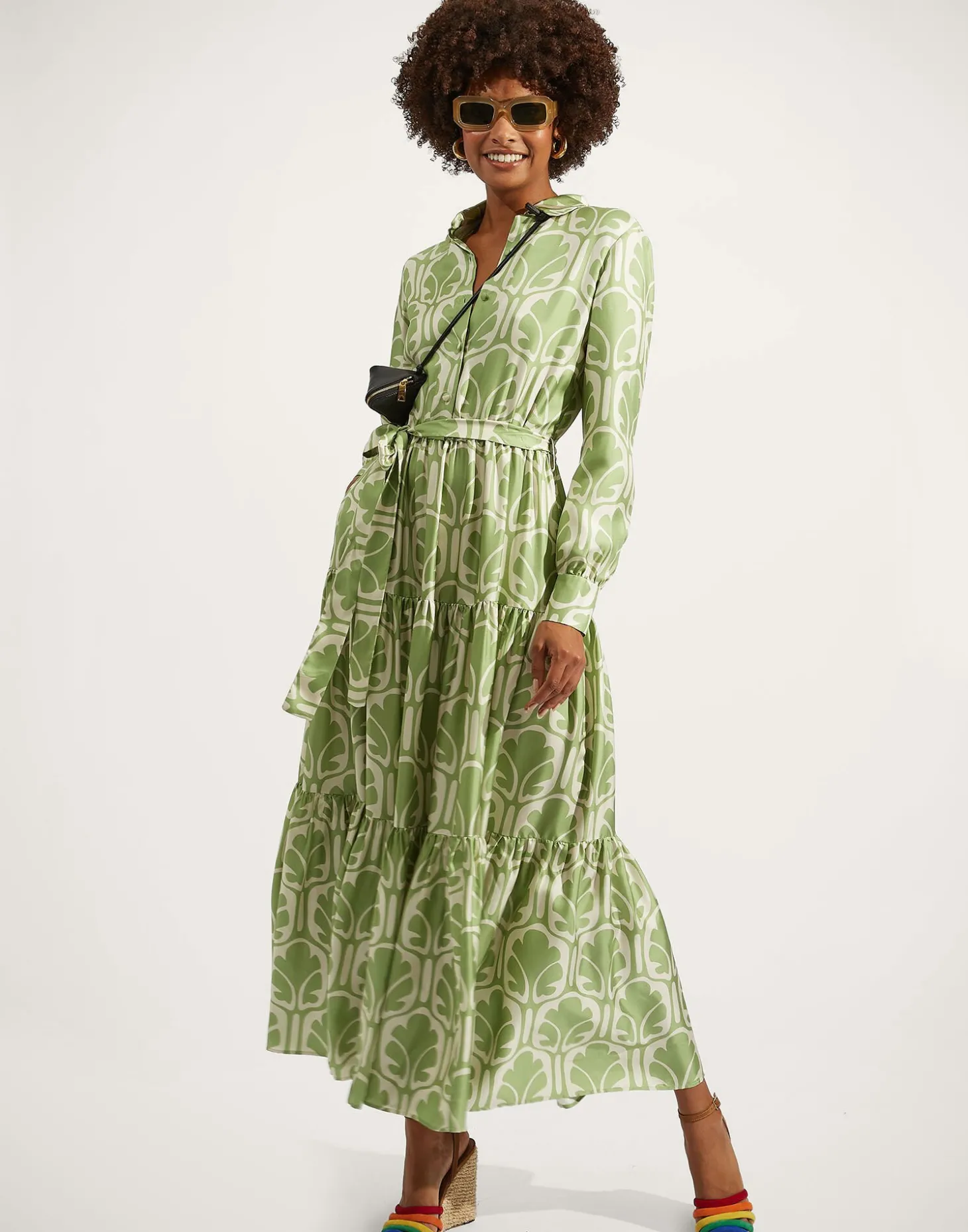 This whimsical maxi dress is infused with a summer mood that takes us to a seaside sunset sipping Bellinis. So popular it’s now an LDJ icon we bring back every season, the Bellini silhouette balances a snappy collar with a flowing three-tier skirt and is prime for summer’s most fabulous RSVPs crafted in our glossy silk twill. Cinch the belt for more shape at the waist!