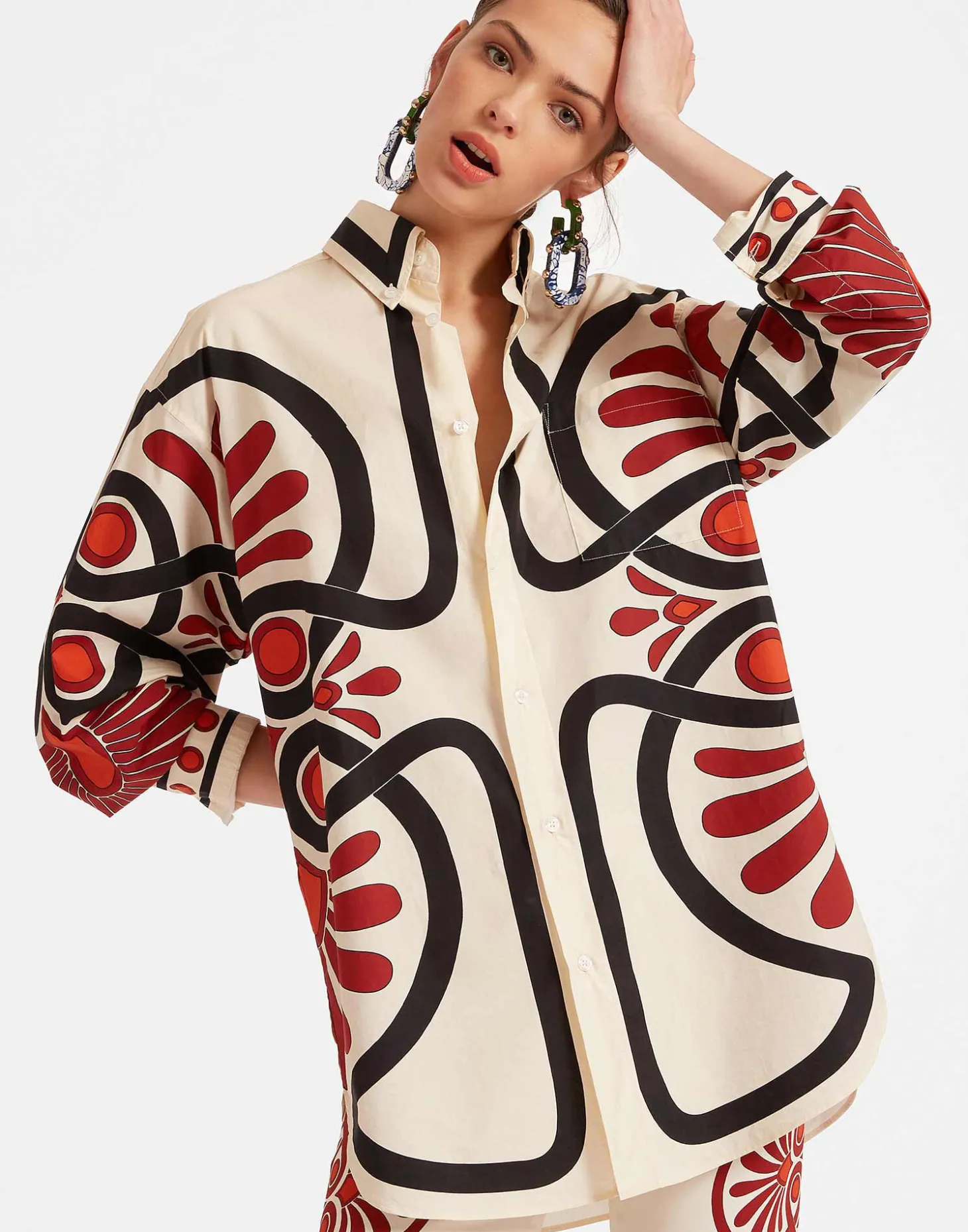 We’ll go ahead and say it – this just might be the perfect shirt. One that’s tailored in all the right places but still oversized enough to feel effortlessly laid back. Crafted in crisp cotton poplin this beauty pops with pretty much anything – your favourite pair of jeans, a printed Pencil Skirt, over a bathing suit, or nothing at all!. Just keep this one close to the chest….your boyfriend will want to steal it, we guarantee.