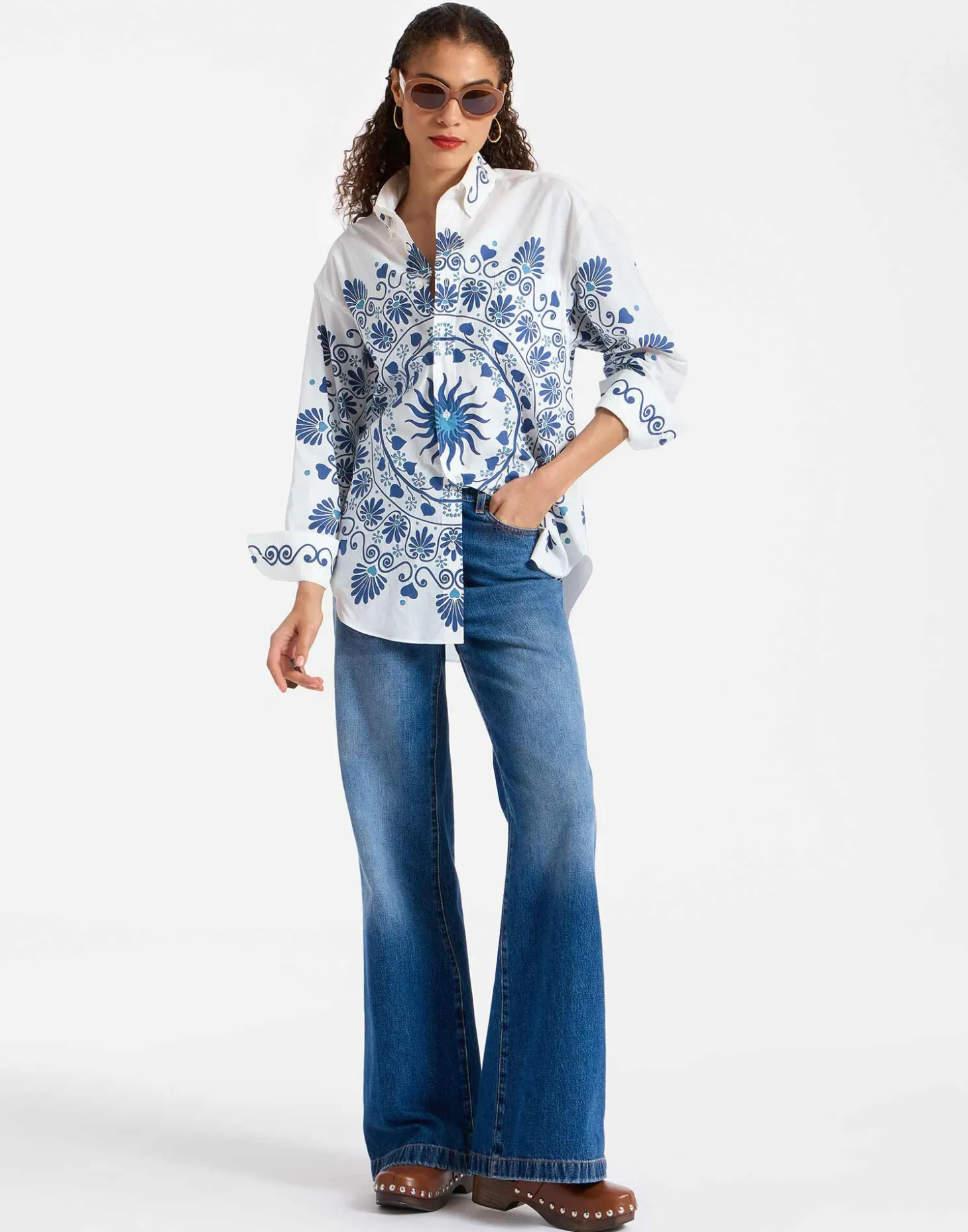 We’ll go ahead and say it – this just might be the perfect shirt. One that’s tailored in all the right places but still oversized enough to feel effortlessly laid back. Crafted in crisp cotton poplin this beauty pops with pretty much anything – your favourite pair of jeans, a printed Pencil Skirt, over a bathing suit, or nothing at all!. Just keep this one close to the chest….your boyfriend will want to steal it, we guarantee.