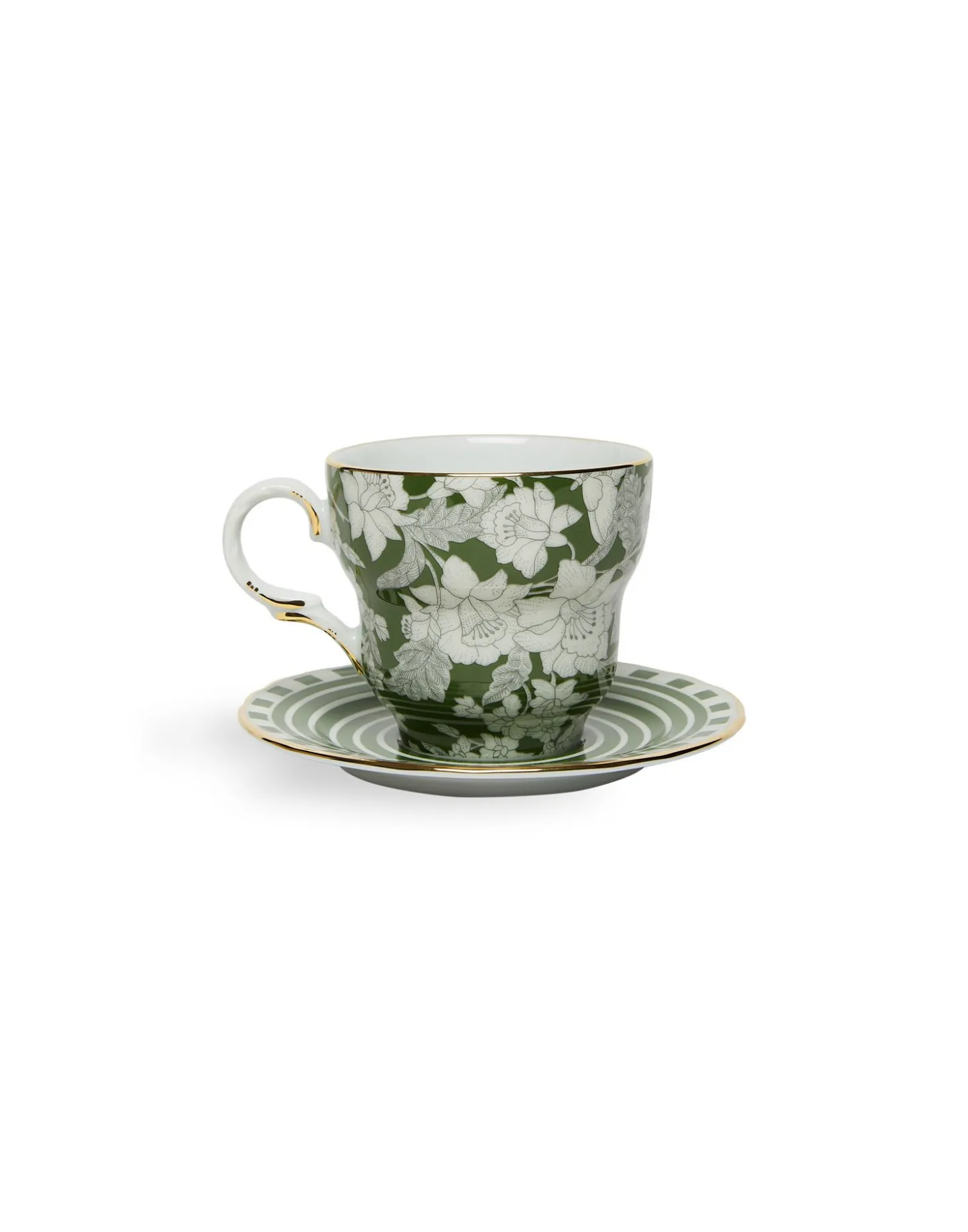 Our Big Teacup is a hug in a cup, arriving supersized and in the perfect shape for wrapping your hands around on a cold morning. Inspired by Italy’s opulent capital of amore, Rome, this set comprises two boldly contrasting prints over one cup and one saucer for a love affair between equally high-vibe patterns. For extra feel-good energy we hand-painted each rim in 18K gold and provided you an entire Dessert Plate set to match for tasty tea-time tabletop.