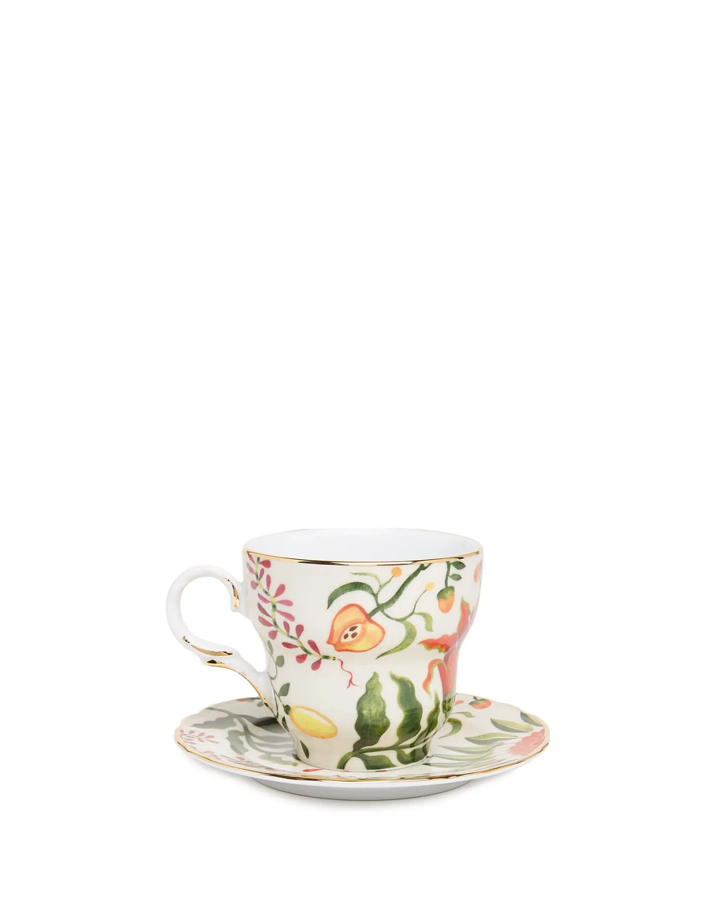 Mythical, enchanting and busting with feminine energy, let our Big Mama teacup raise your vibration with her supersized shape and heart-pulsing Eden print. Crafted from fine porcelain by the Italian greats Ancap, this shapely set comprises one cup and one large saucer and is finished with hand-painted 18k gold rims, nothing less than our goddesses deserve. Oh, and they go in the dishwasher, too.
