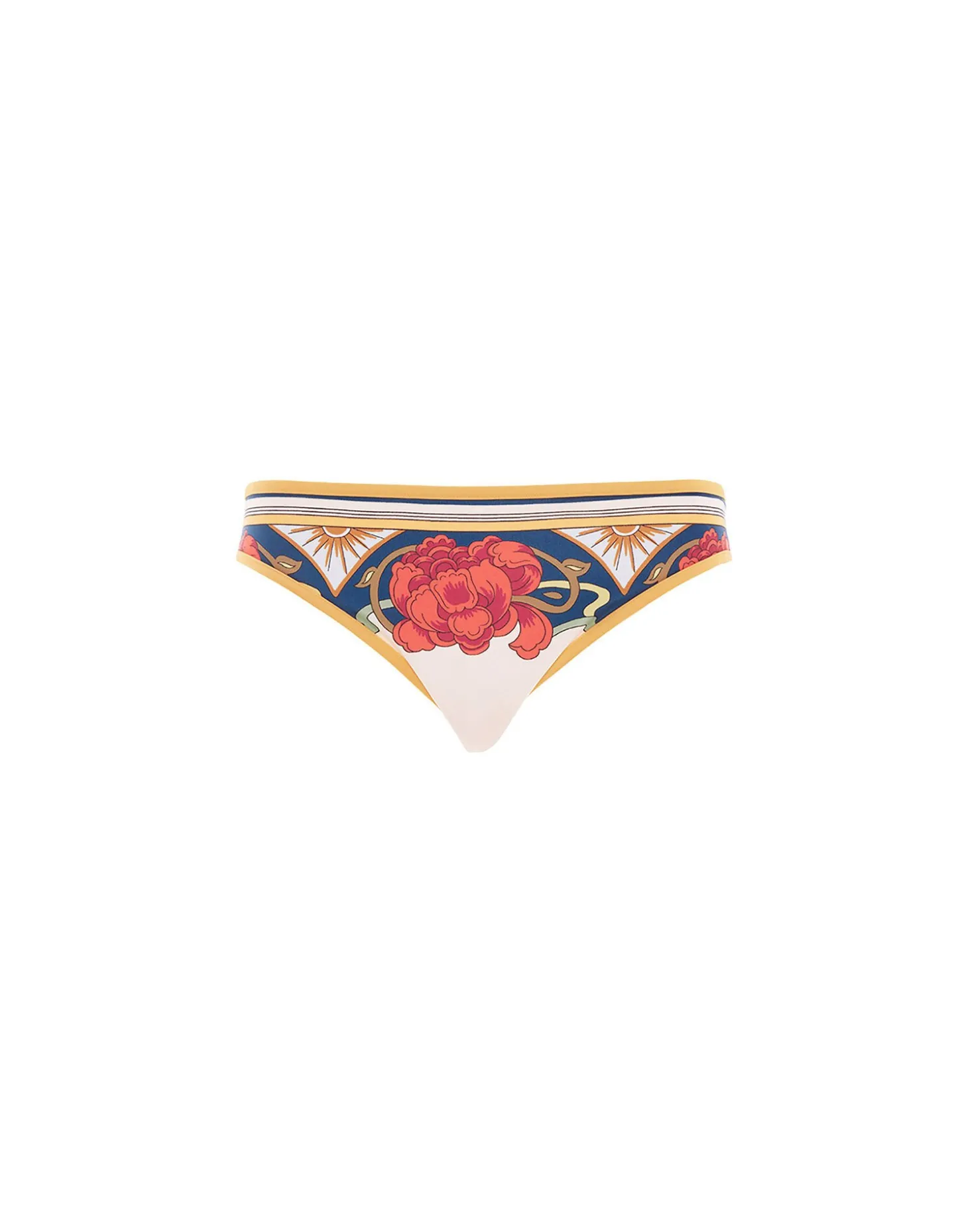 Your go-to, do-everything bikini bottom with a little more coverage than the String Bikini Bottom. This hip-hugging number sits low with a medium rise leg and will (almost) fully cover your butt. Made of our super high quality Italian Lycra and hand-printed in this in-house Liberty motif, it’ll live in your beach bag for years to come. Match it with the Liberty Triangle Bikini Top for your molto elegante poolside entrance.