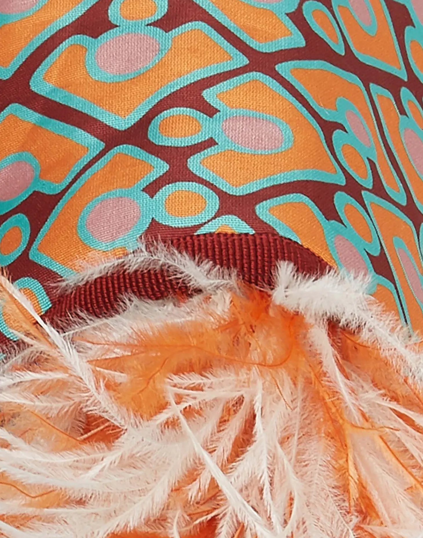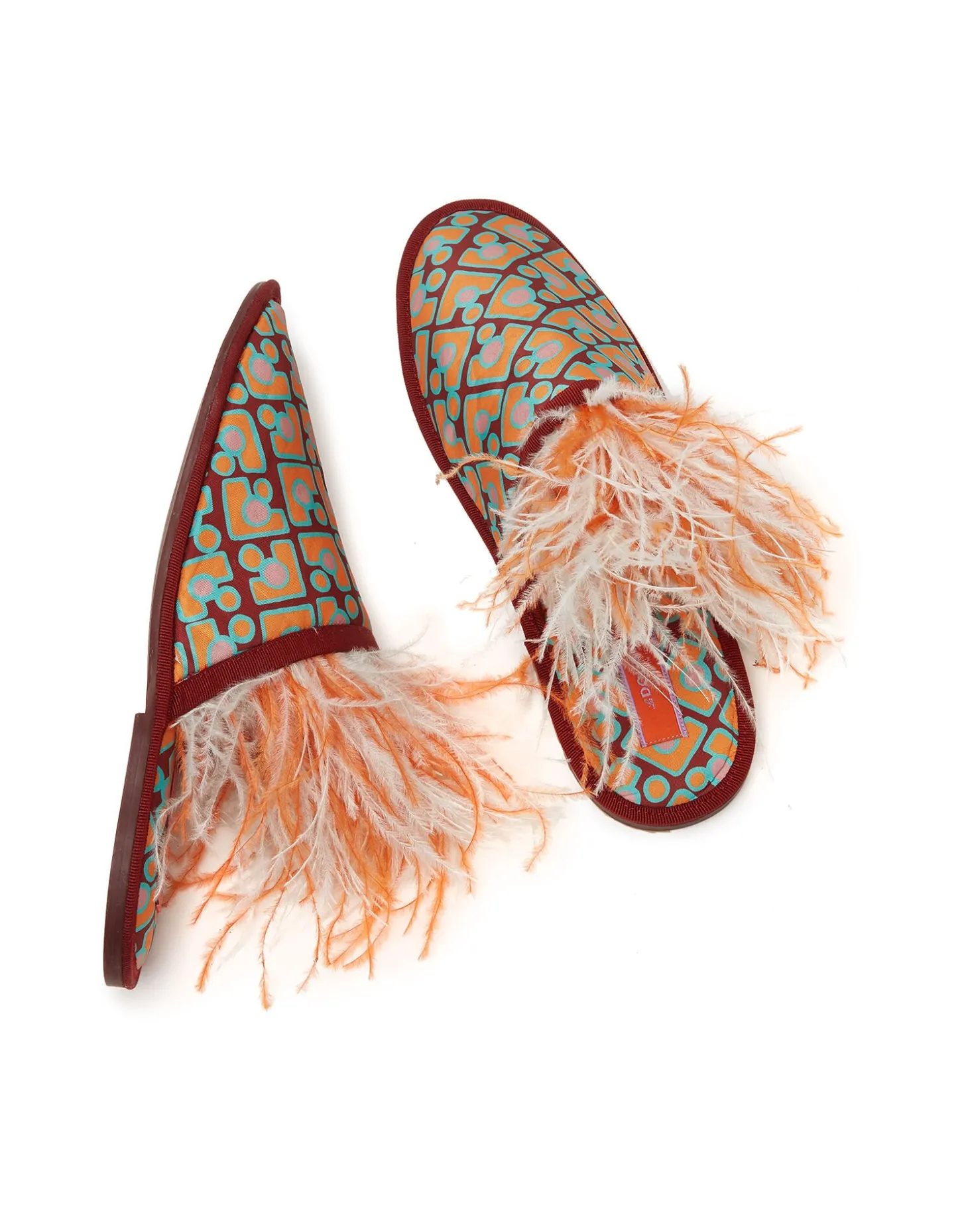 These glamorous mules reimagine the slipper in swish printed faille and responsibly sourced ostrich features that’ll tickle your ankles and give you something to smile about as you glide from boudoir to boardwalk – the rubber sole means they are perfect for both. Our ankle swinging Coulottes should really set them off.