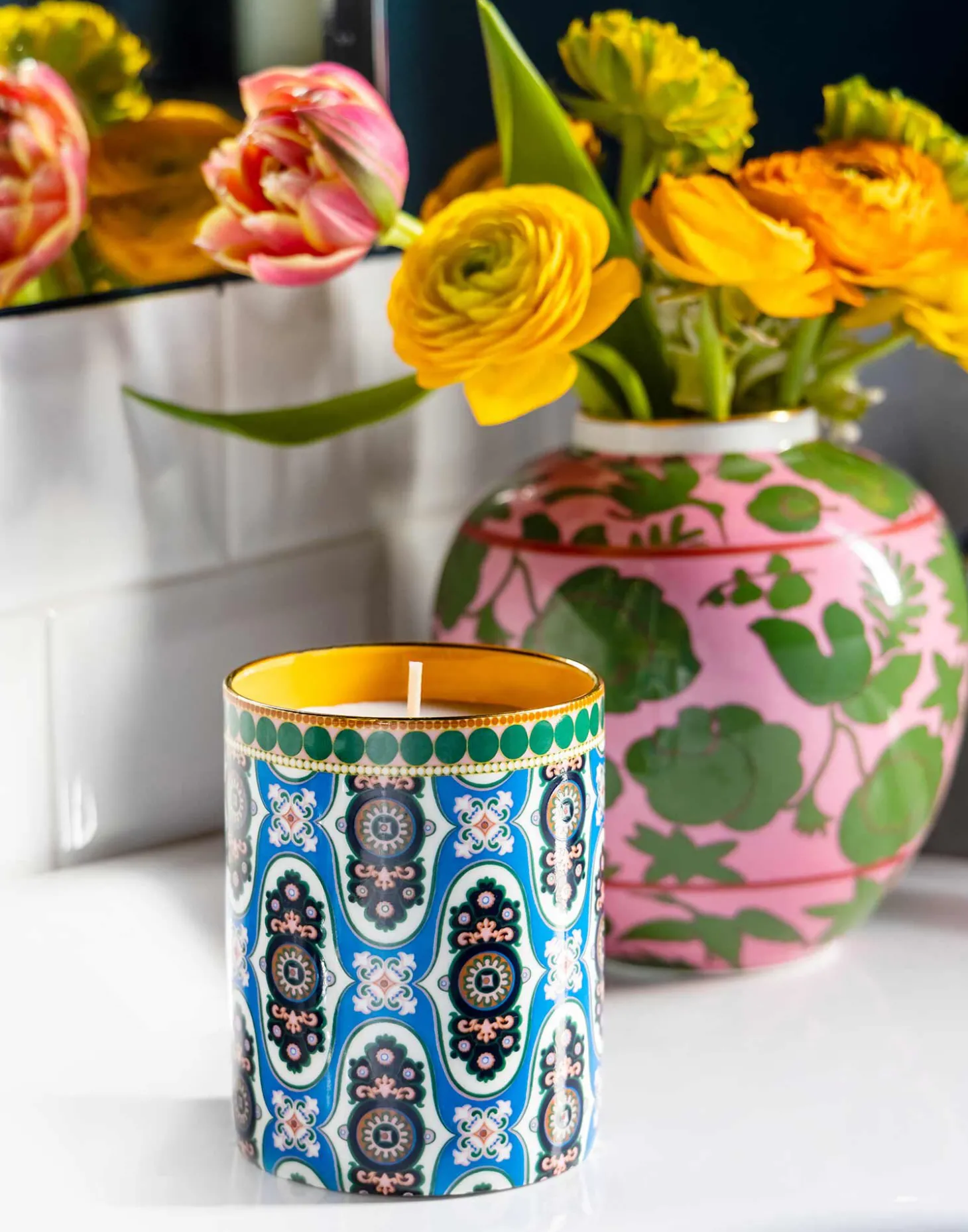 In our signature “more is more” mood, we’ve blended a juicy bounty of blackcurrants, pomelo, lemon, applewood, cedar, violet and arancia in a serenade to the sensual island pleasures of Capri. Reuse this beautiful 18K gold vessel as a bud vase, a makeup brush holder or simply as a gorgeous objet on your hallway mantle.