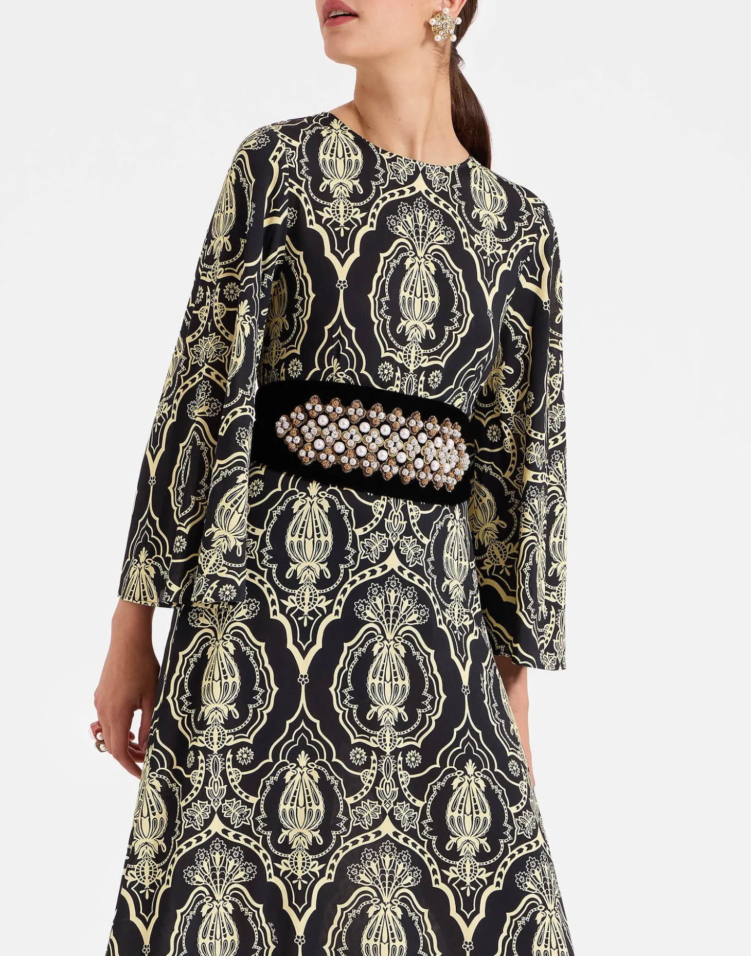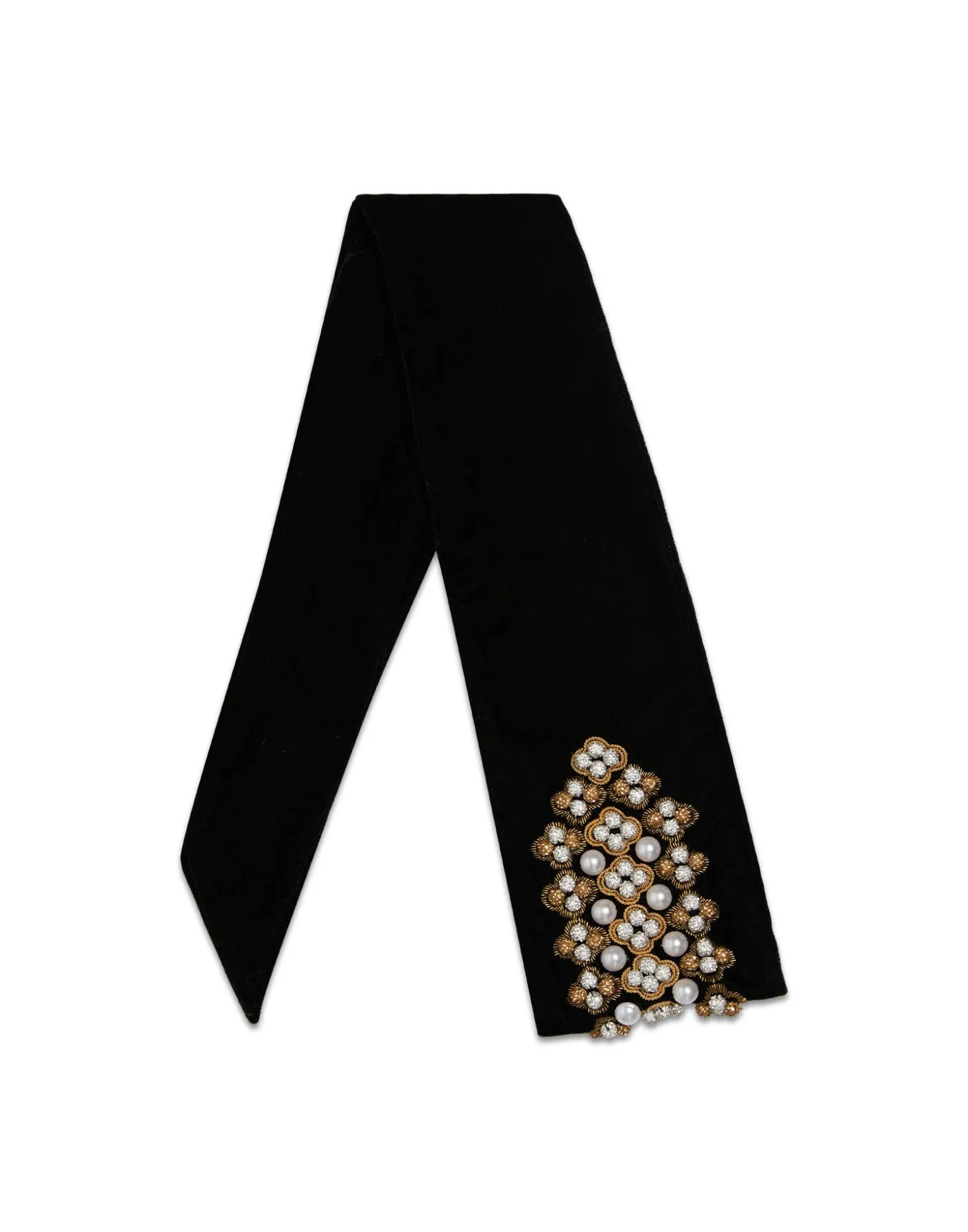 Named for the uber stylish Renaissance icon Caterina de Medici, this belt is our favorite new multi-use accessory. Crafted from sumptuous black Italian velvet and embroidered with gems across its center, she arrives in a simple ribbon tie composition, so you can cinch your waist to your desired level of va va voom. Or, do as we do in the LDJ HQ and wear her as a headband, like a bejeweled velvet crown.