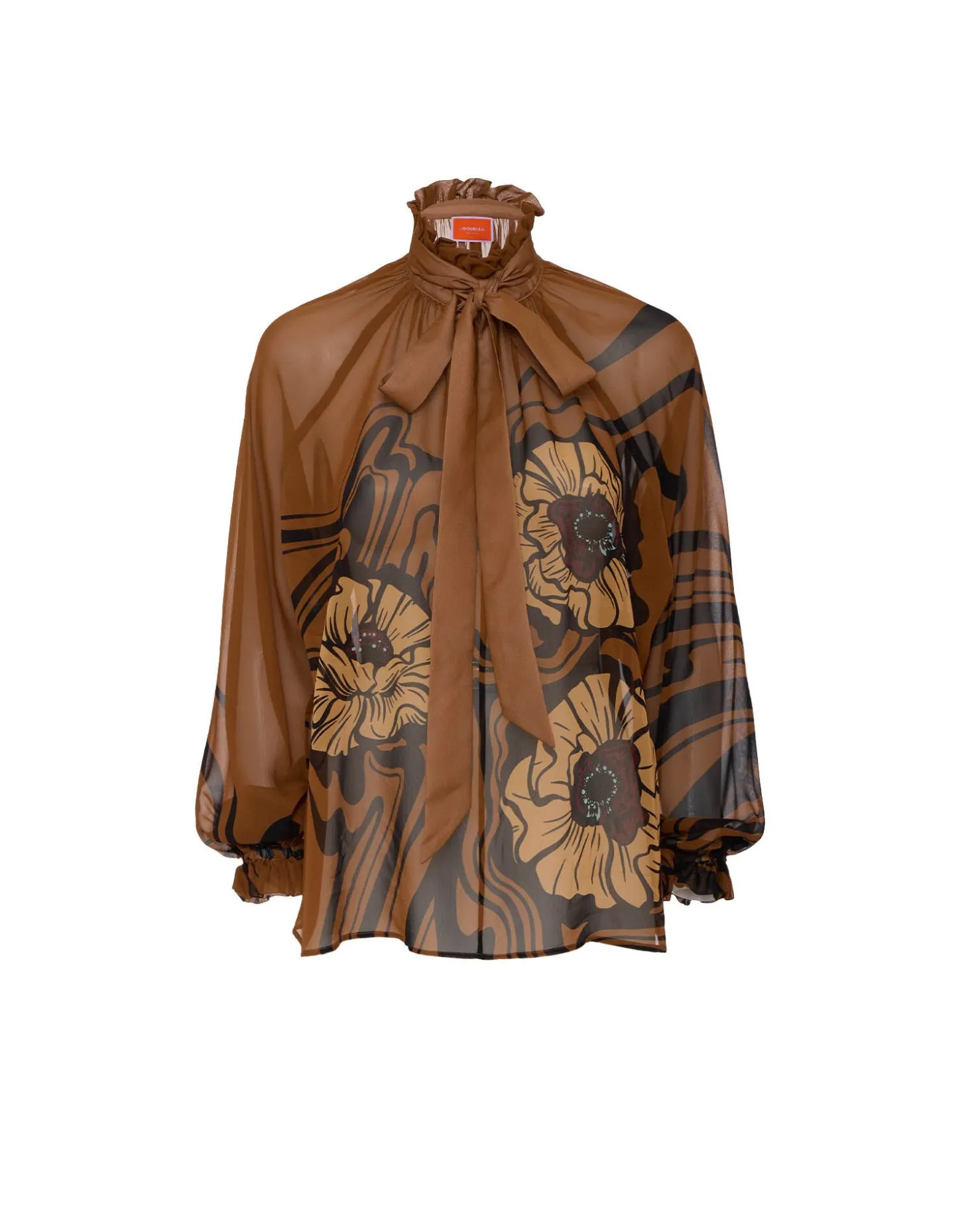 Cerere BlouseBig Blooms Placée Brown in Silk Chiffon
