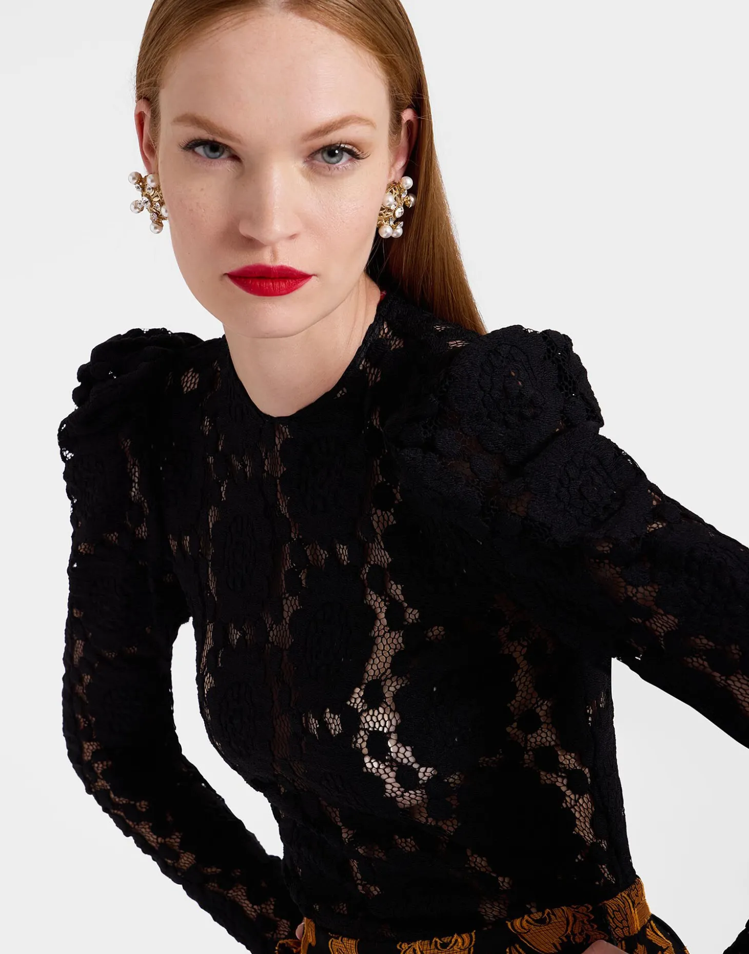 Sister if you’re hoping to turn heads at your next soiree, this is the top for you. Crafted in our solid Italian lace (yes we do solids), this beauty hugs the body in all the right places, and has dramatic dart sleeves to contrast its classic round neckline. Pair her with your favourite boyfriend fit jeans for a cool-girl-out-on-the-town vibe, or under our Ella Mini Dress for full ingenue allure.