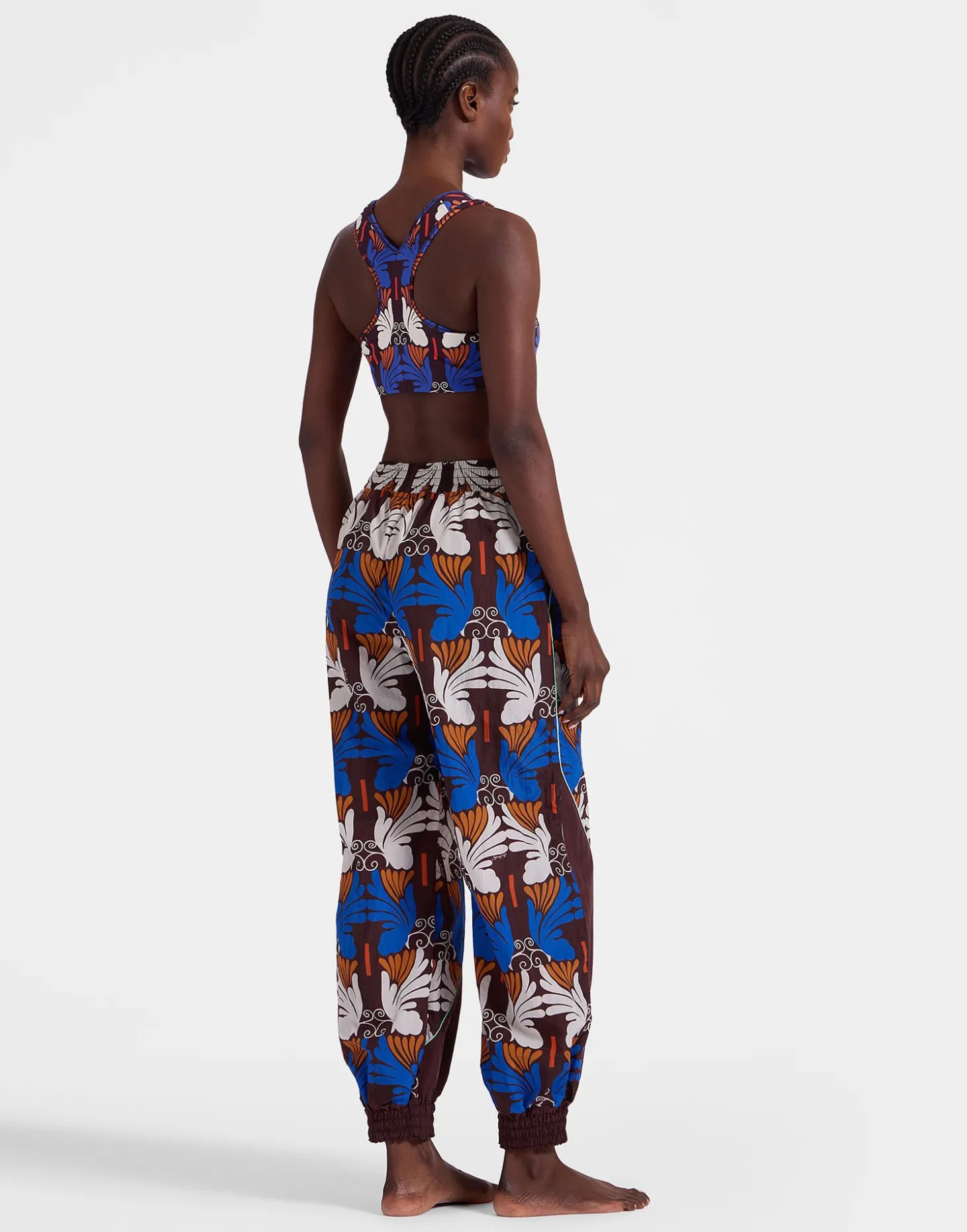 Longtime LDJ lovers will know we adore taking a vintage silhouette and making it modern. We took a page from the Spice Girls and took the iconic 90s tracksuit pant shape and reimagined in our latest mood-boosting prints. These beauties have a high elastic waist, contrast panels and piping all along the ankle. Oh, and we put a sun on the bum. Yep, we’re calling it. These are our happy dance pants.