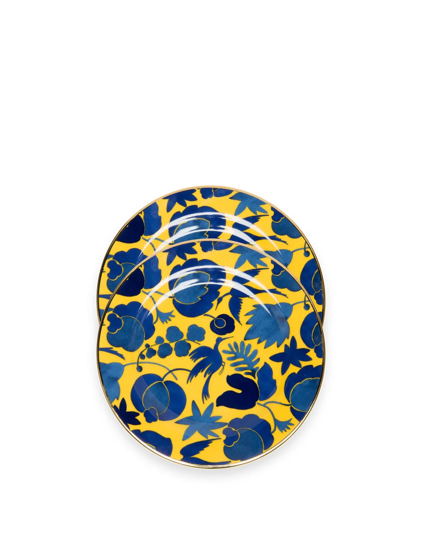 Dessert Plate Set of 2Wildbird Giallo/Blu in Porcelain