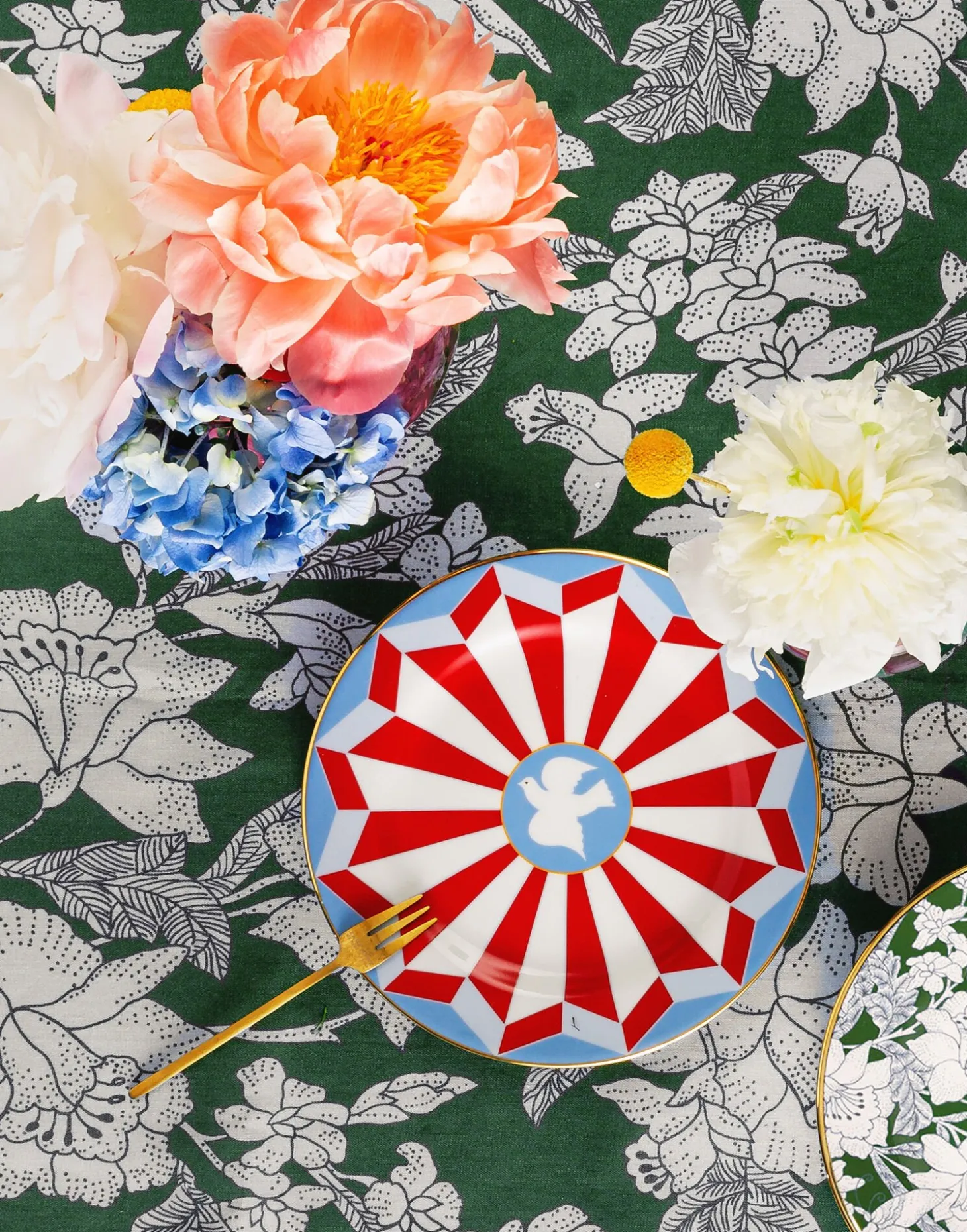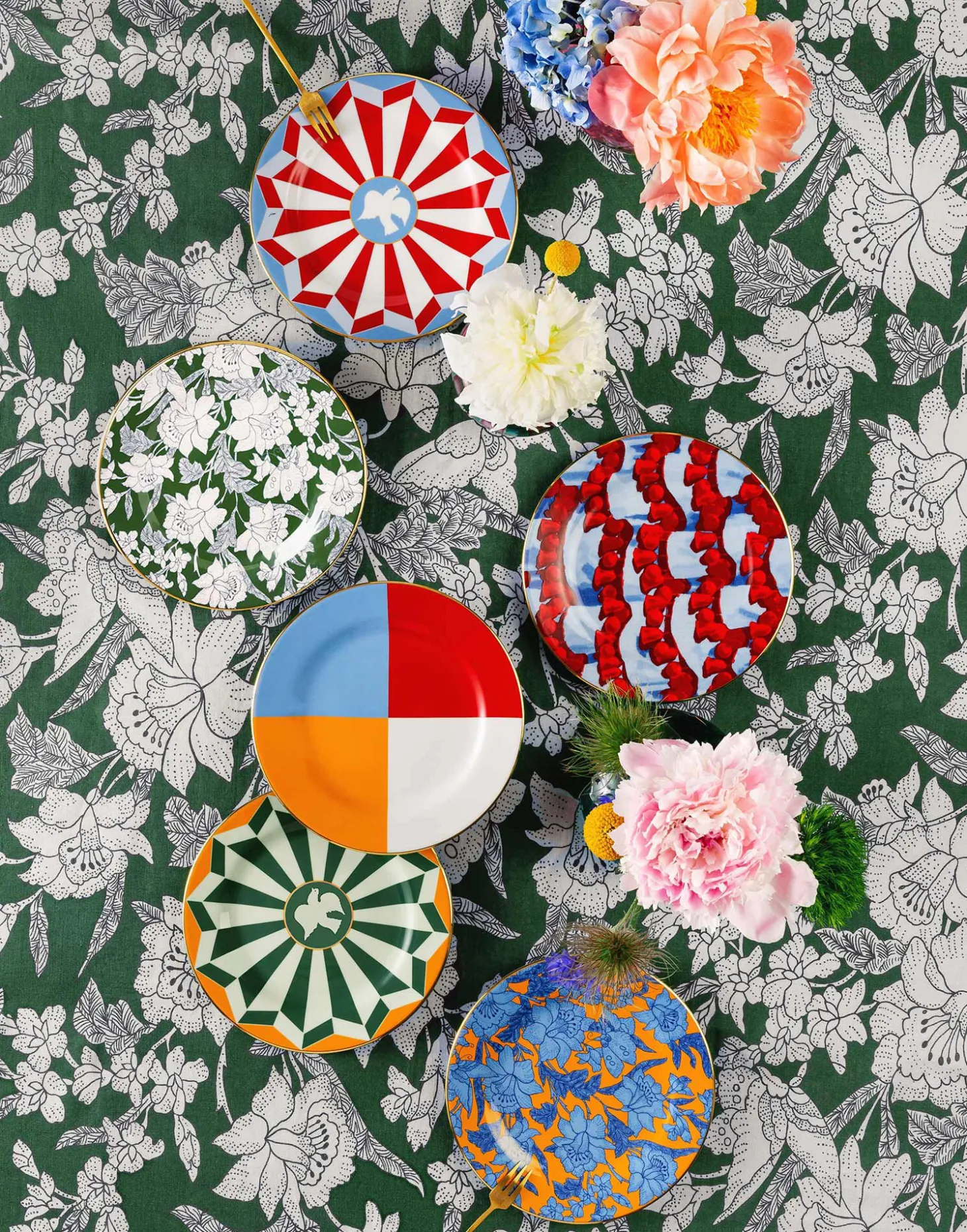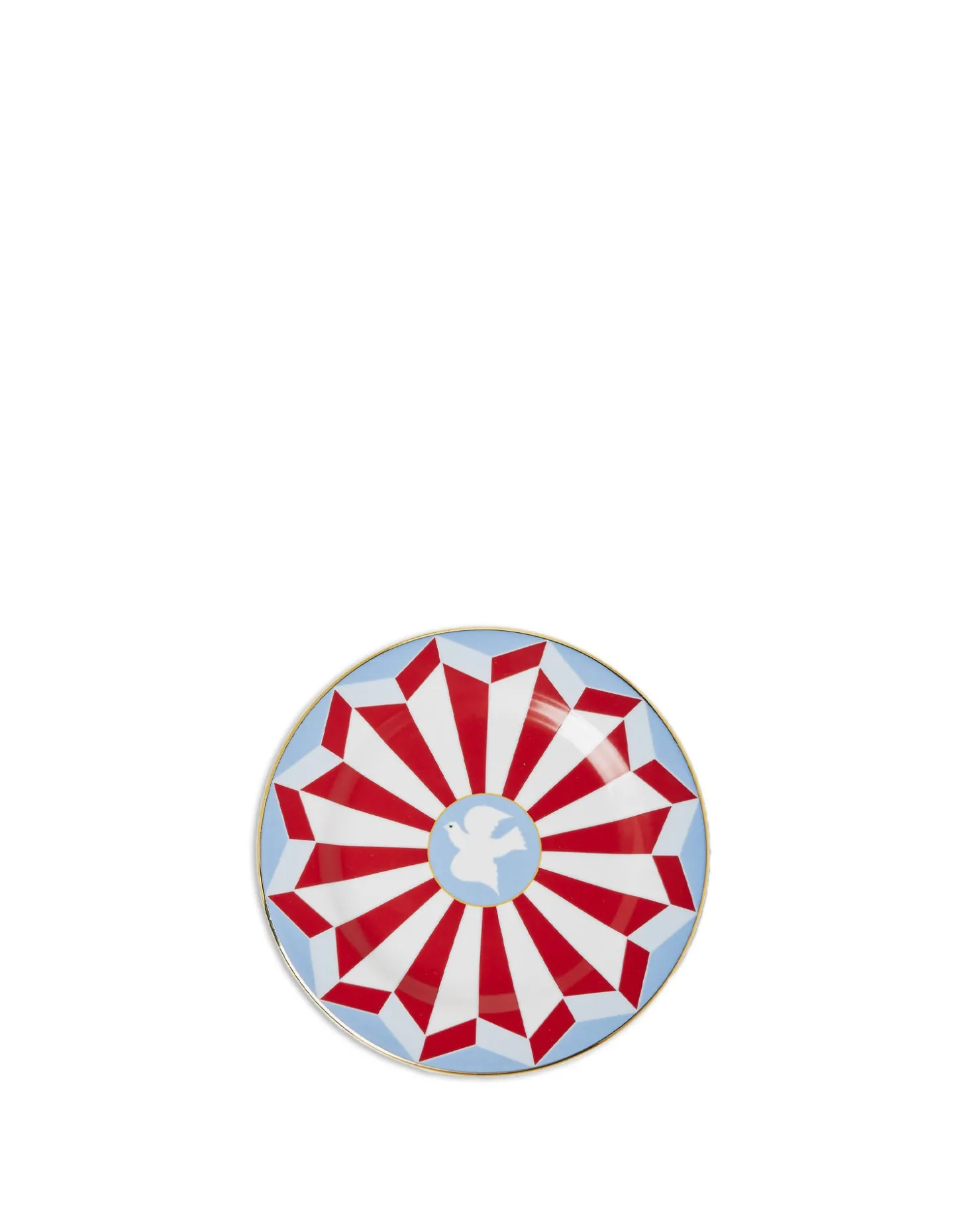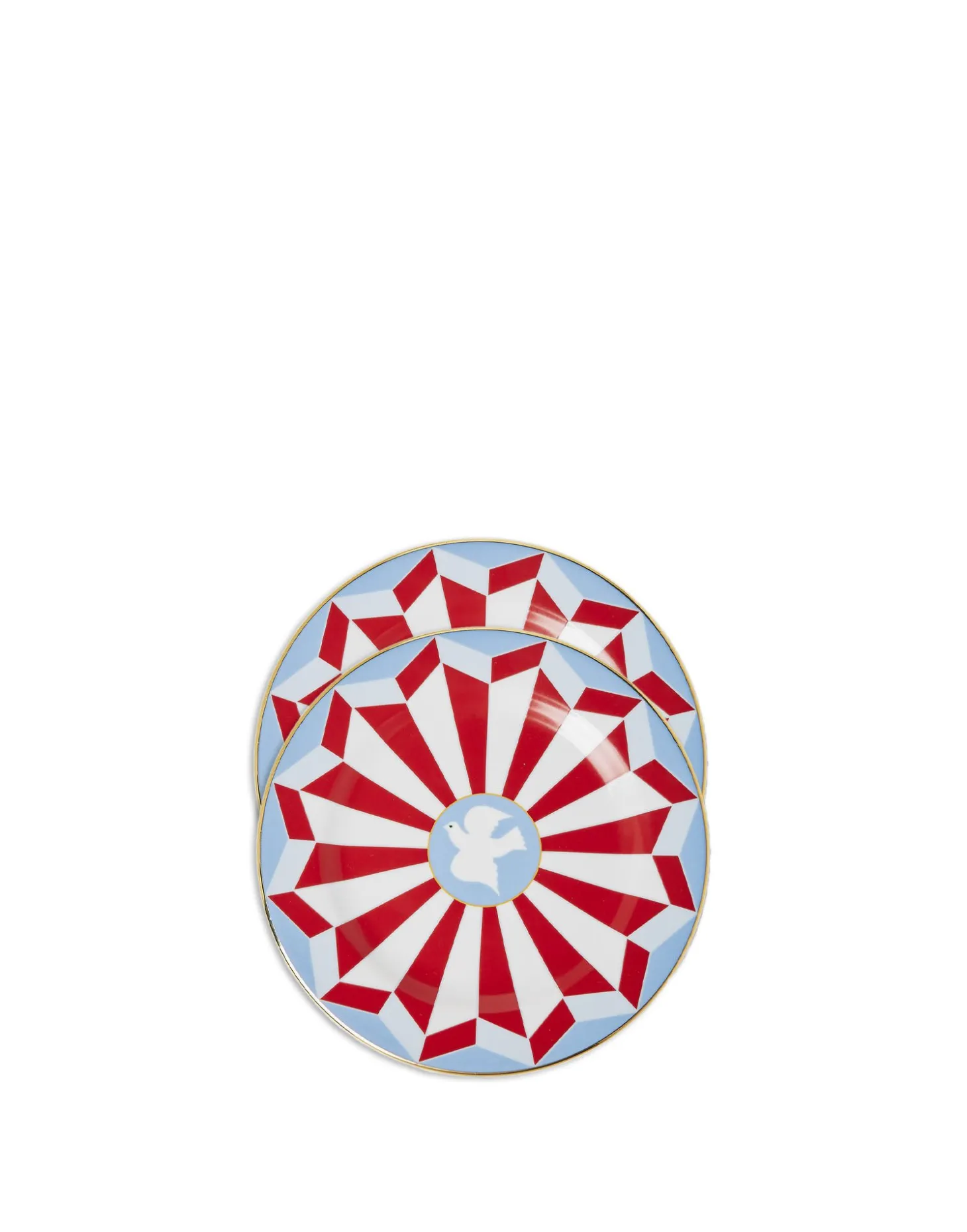 Crafted from the finest Italian porcelain, our Dessert Plates arrive in appropriate high-vibe style, with hand painted 18K gold trims. This geometric set of two in a rich berry and blue palette is inspired by the drama and romance of Italy’s opulent capital, Rome, and features a white peace dove in its centre. Great for a gorgeous gift, these plates do double duty, so snag a few for your salad course or dot around your home as a handy spot for keys or crystals as well.