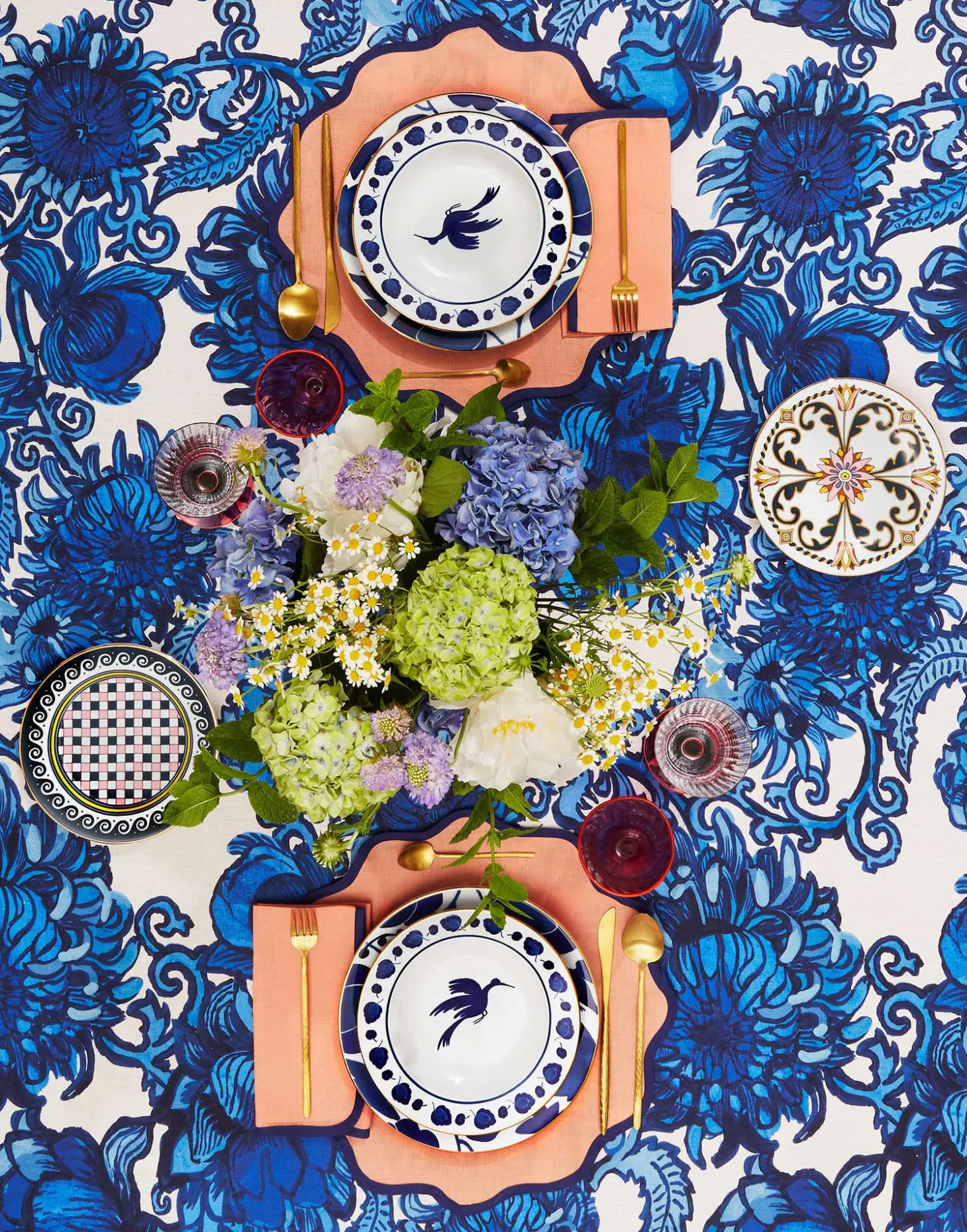 What a dish! By popular demand, we present our new set-of-two Dinner Plates, crafted in ultra-fine Italian porcelain and hand-finished with an 18k gold rim by our fabulous team of Veronese artisans. A bellissima showcase for your kick-ass culinary skills, these beauties feature extra wide rims with our glorious Wildbird print. Stunning styled simply on a white tablecloth, or layer on top of our new Table-mats to conjure al fresco evenings on the Mediterranean coast.