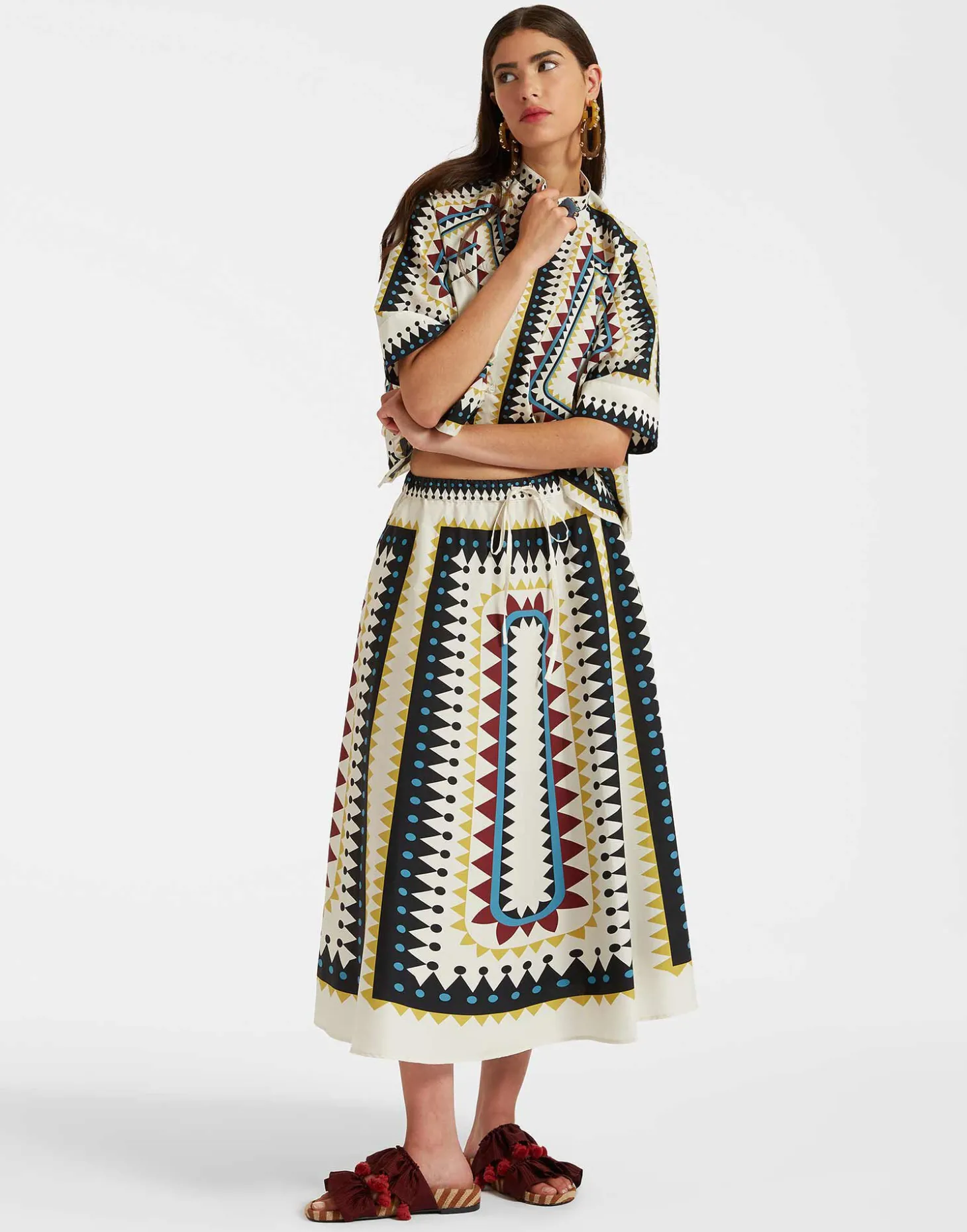 Boho, but better: exude a chic Ibiza vibe in our Drawstring Skirt, which arrives for far-flung getaways in this grogeous light cotton poplin. Designed with a drawstring waist (no vacation deserves a tight waistband), this beauty hits at the ankle on more petite women and mid-calf on longer legs with a zig-zag hemline to really bring the free spirit vibe home. Dress it up with our La Scala Top, dress it down with our Poet Skirt and definitely finish with some oversized sunglasses.