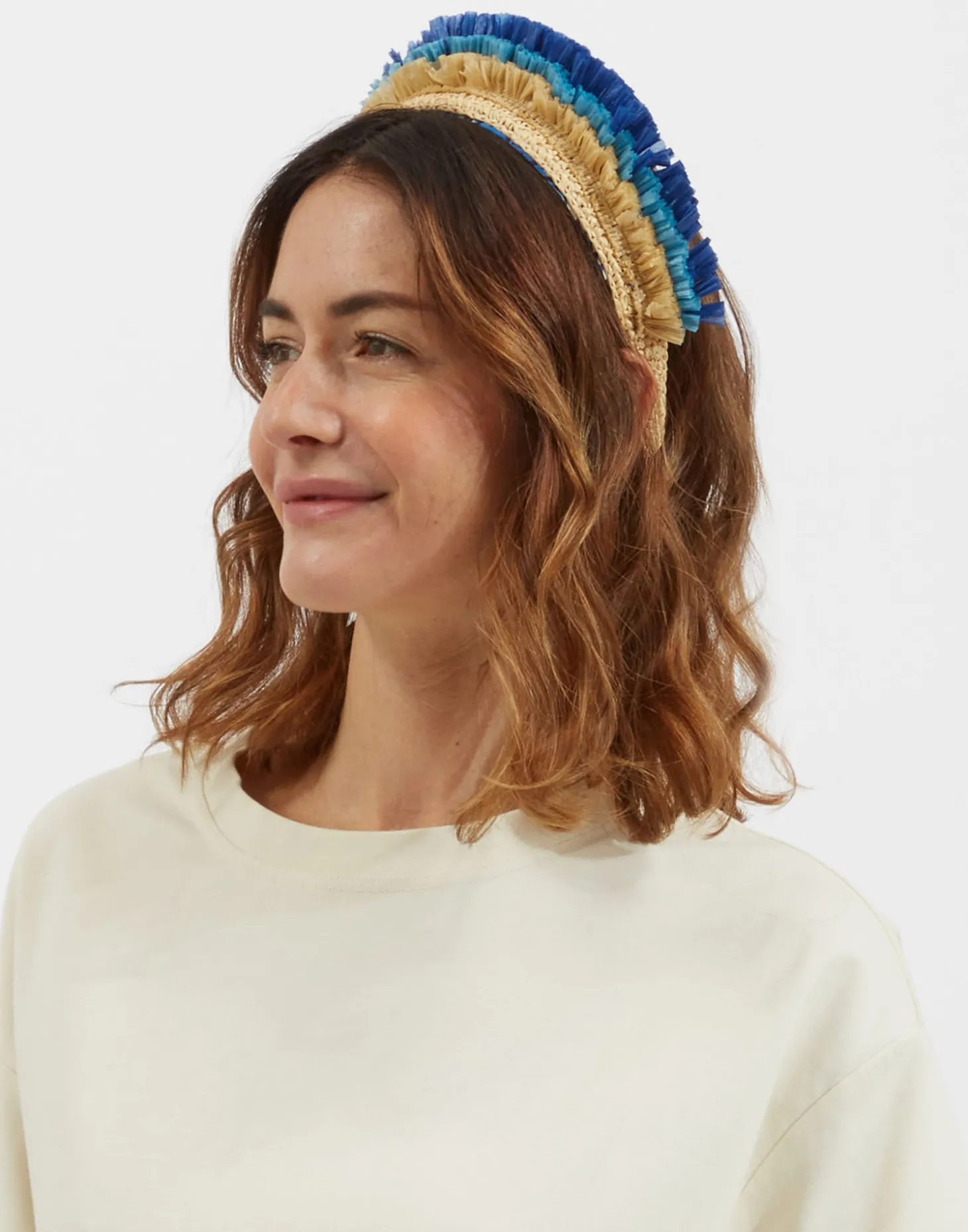 For our LDJ angels, this boho beauty radiates happy serenity handmade with tiers of fringed raffia and a silky structured hairband in our stunning Anemone print. Slide it on for the chicest beachside style at La Fontelina, or pair with our Choux Dress for a quick and cute cocktail look.
