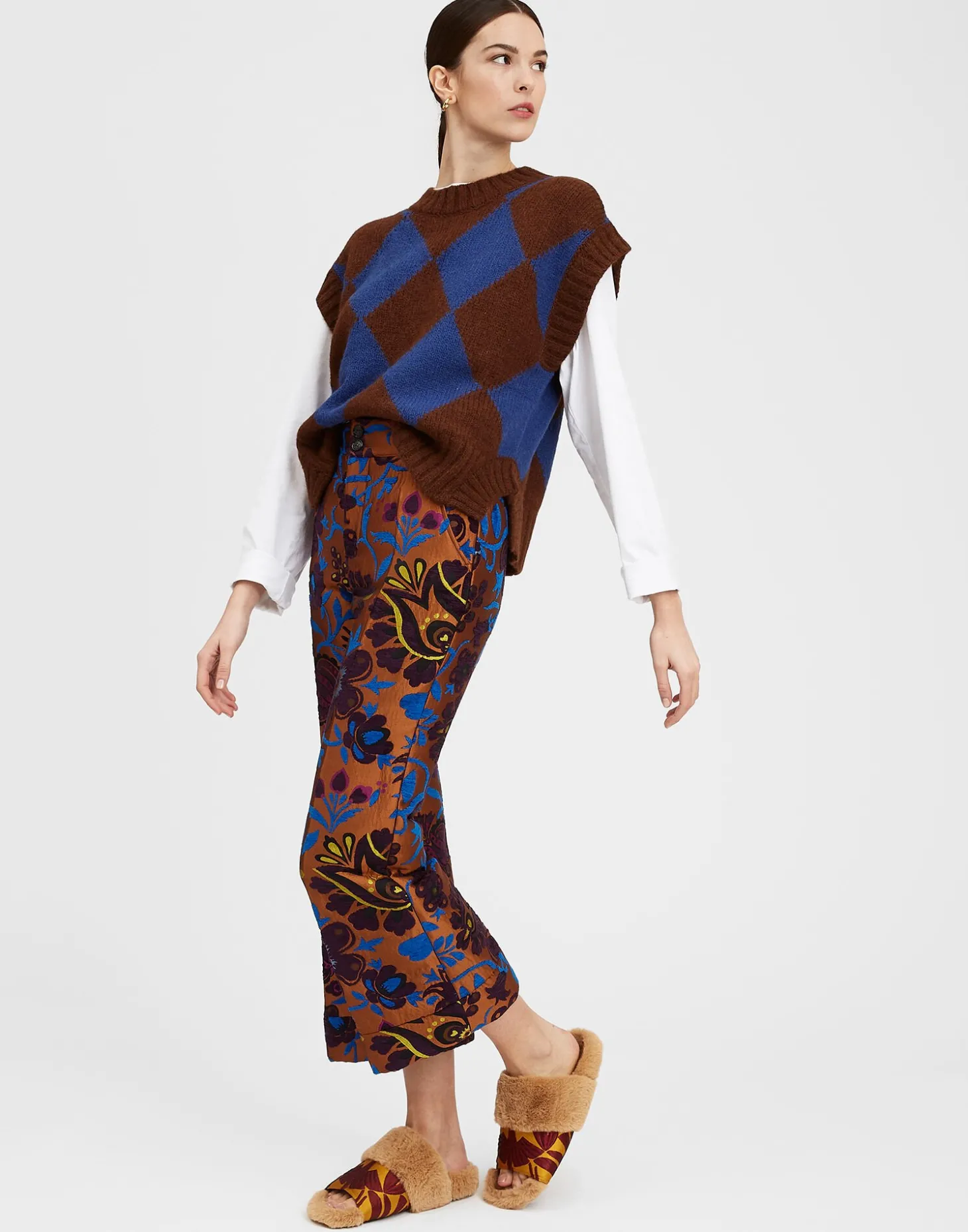 For strutting, high-kicking and looking badass. The Hendrix Pants would make Jimi proud. Made for the party princesses in this exquisite jacquard Selva print, they’re a proper four-pocket, button-fly trouser. High-waisted and fitted at the hips and butt (they look extra great when you’re shaking it, btw) they flare slightly and hit just above the ankle. Wear with the La Scala top to match, natch!