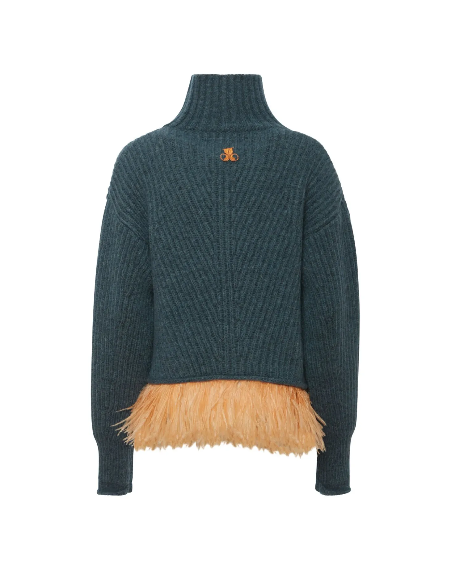 Isn’t it crazy when something you didn’t know existed just appears and now you can’t live without it? That’s how we felt when we first met our High Kick Sweater, the softest alpaca-blend beauty that had us instantly asking ourselves “why don’t all of my turtlenecks have feathers?” With its slightly cropped hem that flares just a touch into a plume of feathers, this is the most flattering way to “fancy” up your outfit (but not too much). Make your daytime look a little more maximal, or go full feathered glam with our Fancy Crop Jeans in Anemone.