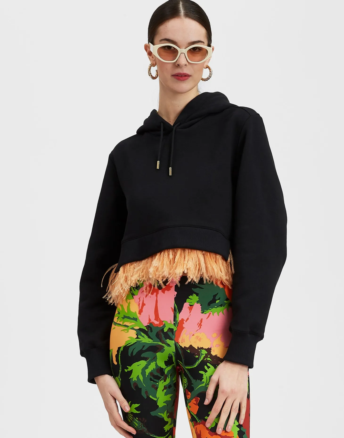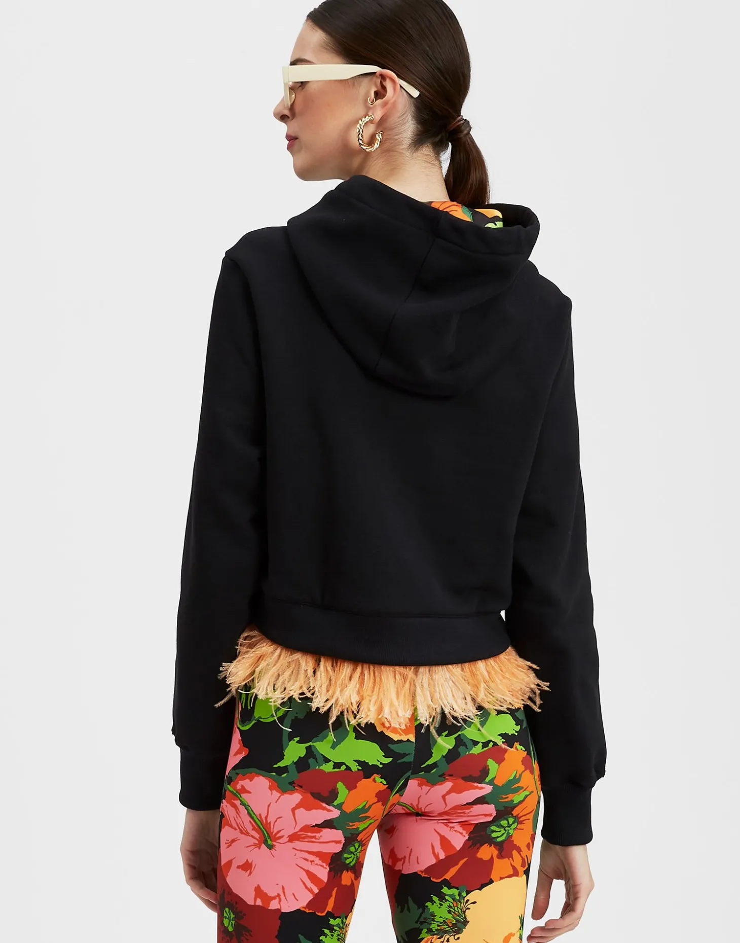 If the last few years have taught us anything it’s that a statement sweat is in fact a wardrobe essential. Designed to look as excellent layered over our most fancypants dresses as it does over everyday jeans, this haute hoodie is a cropped A-line shape finished with a fabulous feather trim and silky twill lining in the hood. Arrives in cocooning cotton jersey for a look that is high on impact *and* ease – how’s that for mood-boosting style?