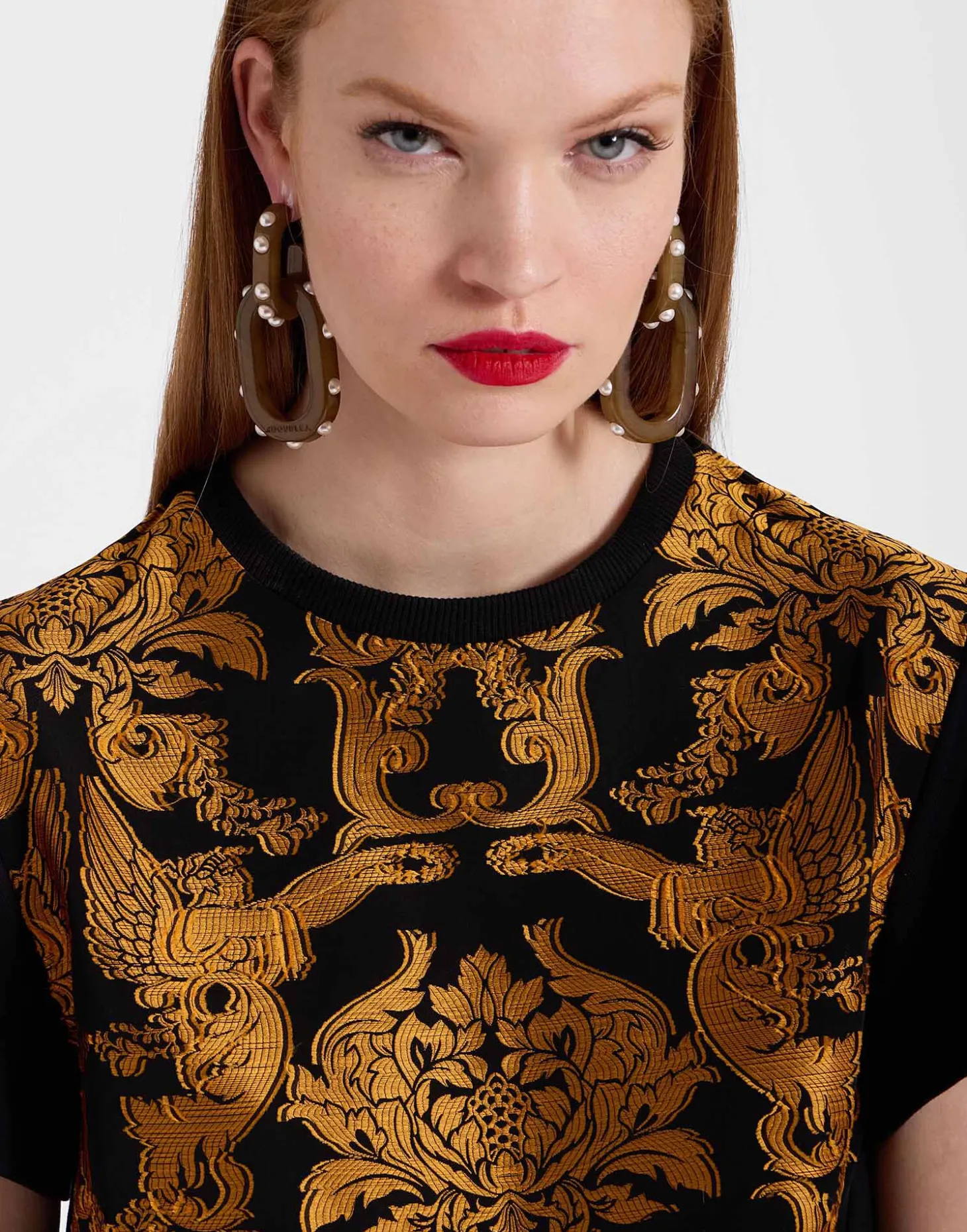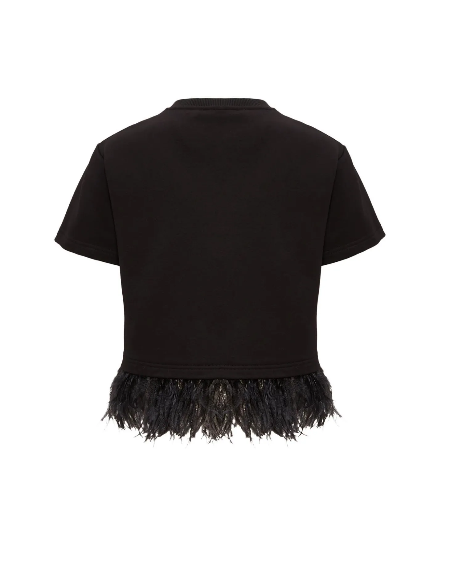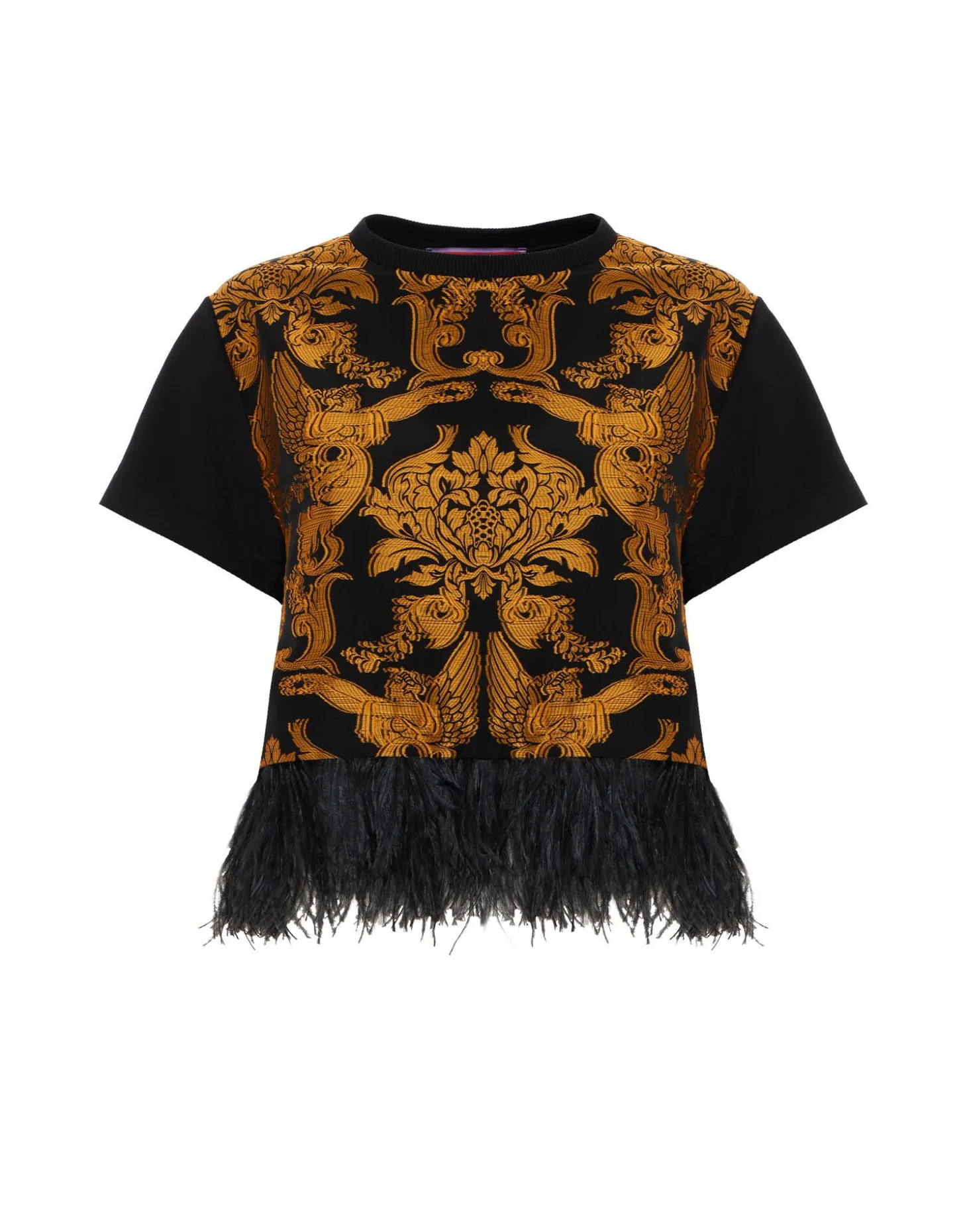 La Scala TeeCherubs Black in Fil Coupé With Feathers