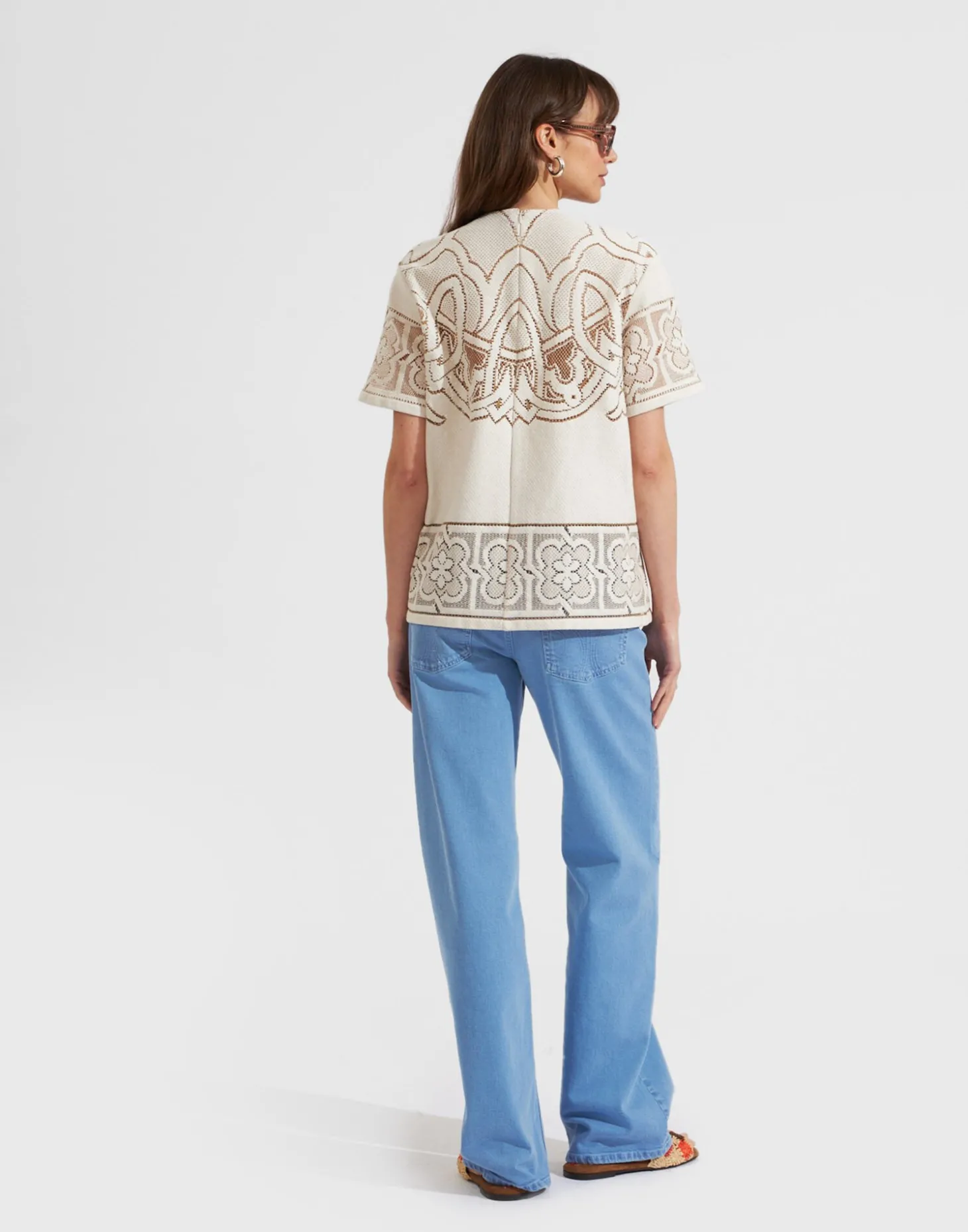 Who needs a plain white tee when you could have a trophy T-shirt? Our House silhouette is exactly that, crafted in our new weightless white cotton lace to bring a molto elegante spin to your summer work wardrobe or Saturday night ensemble. With a boyfriend shape that’ll elevate with an insouciant spirit, we’ve left it unlined to highlight every stitch of that exquisite embroidery. Throw over a swimsuit for your schlep to the Mezzatorre pool or style up with the matching Oscar skirt for a dreamy look that’ll take you from vineyard weddings to garden parties, beach soirees, and beyond.