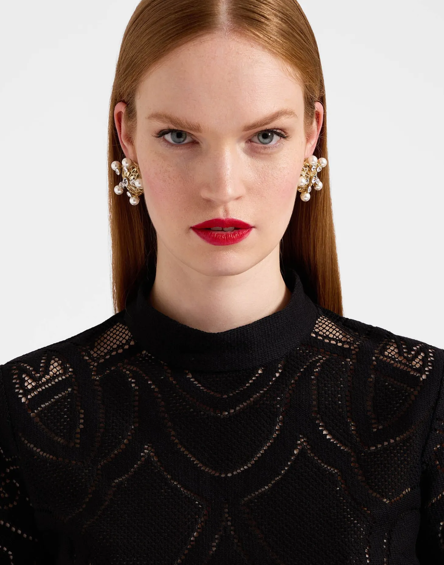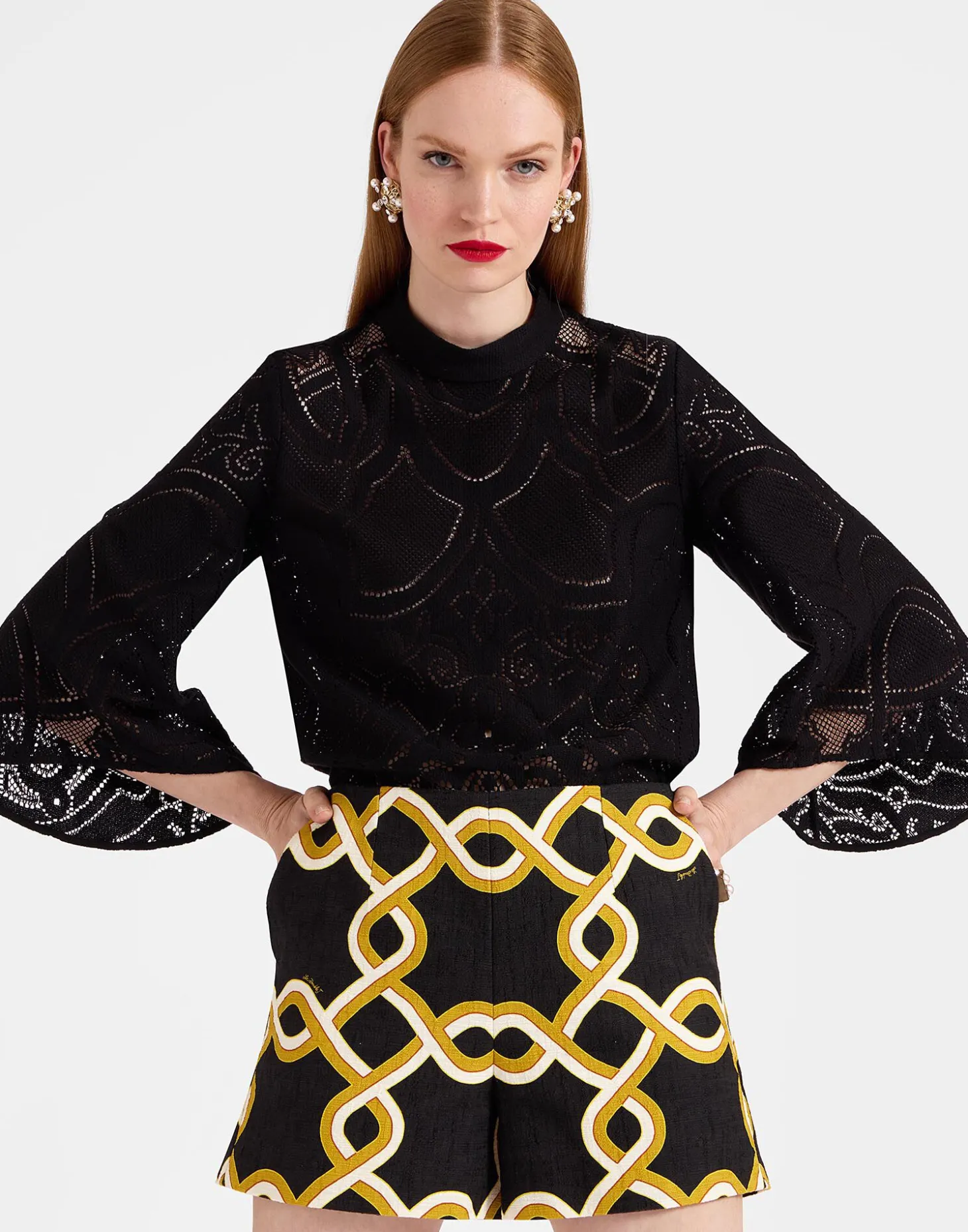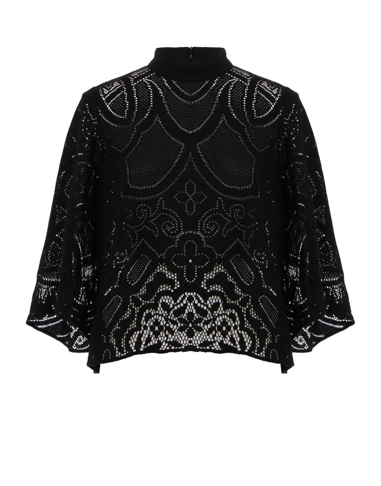 If a top could be a tease, this one would be it. Deceptively demure in the front with a high neck and easy A-line shape through the body, it’s the back of this beauty that truly wows, with a cape-like high-low back that floats as you turn. Crafted in this elegant black lace, this has date night drama written all over it. Throw it under a gilet or our Folk Jacket for bohemian flare, or with our Milano Skirt for a super chic silhouette.