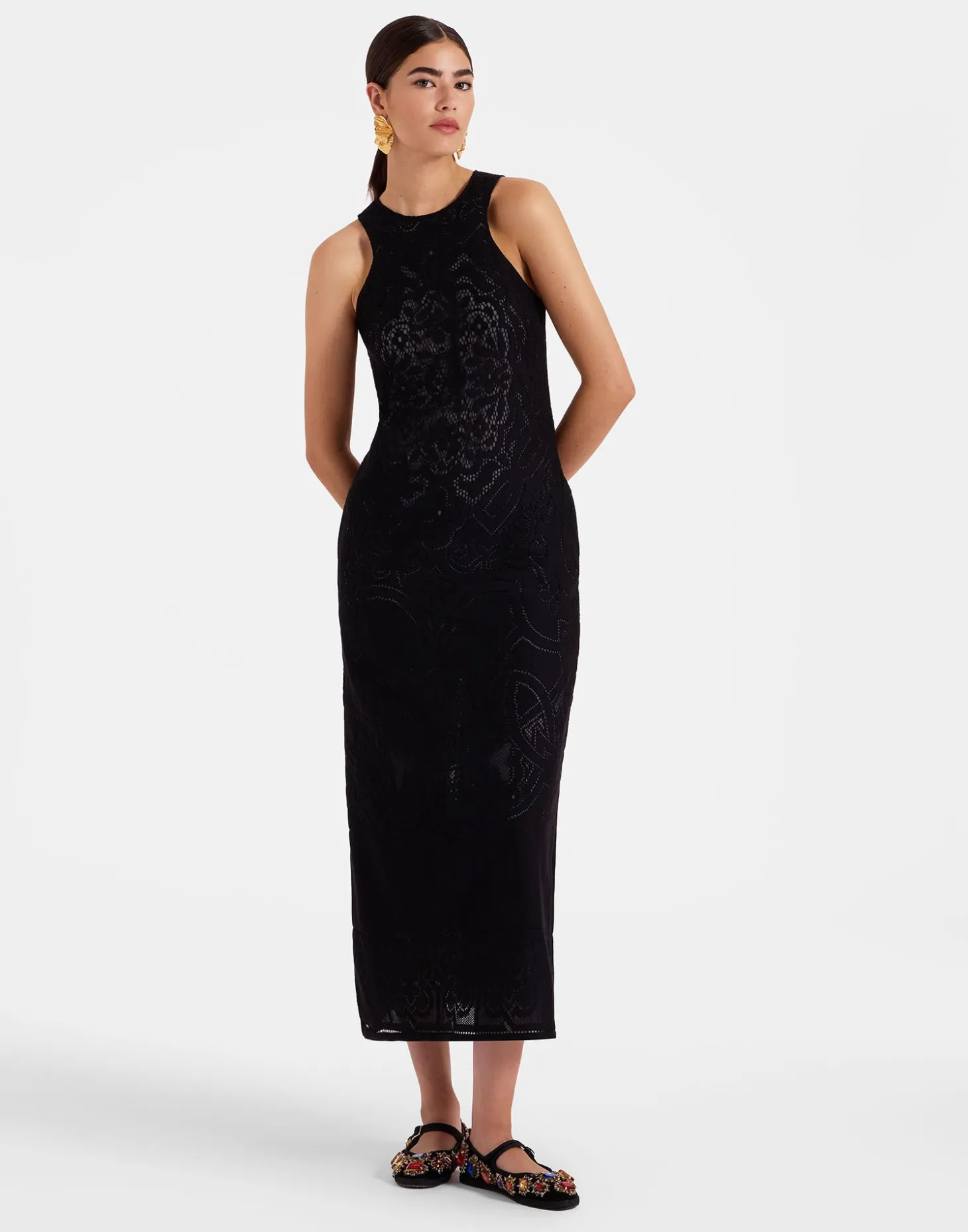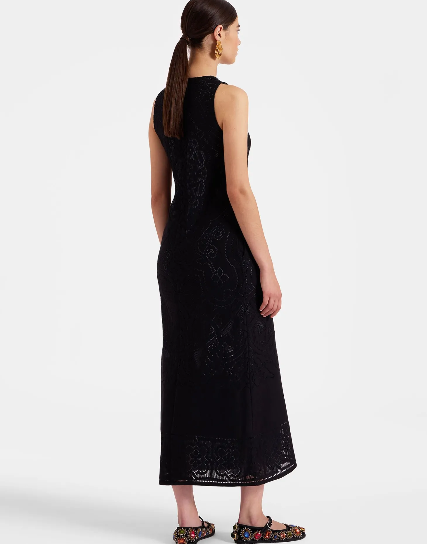 Lacey Racer DressSolid Black in Embroidered Cotton