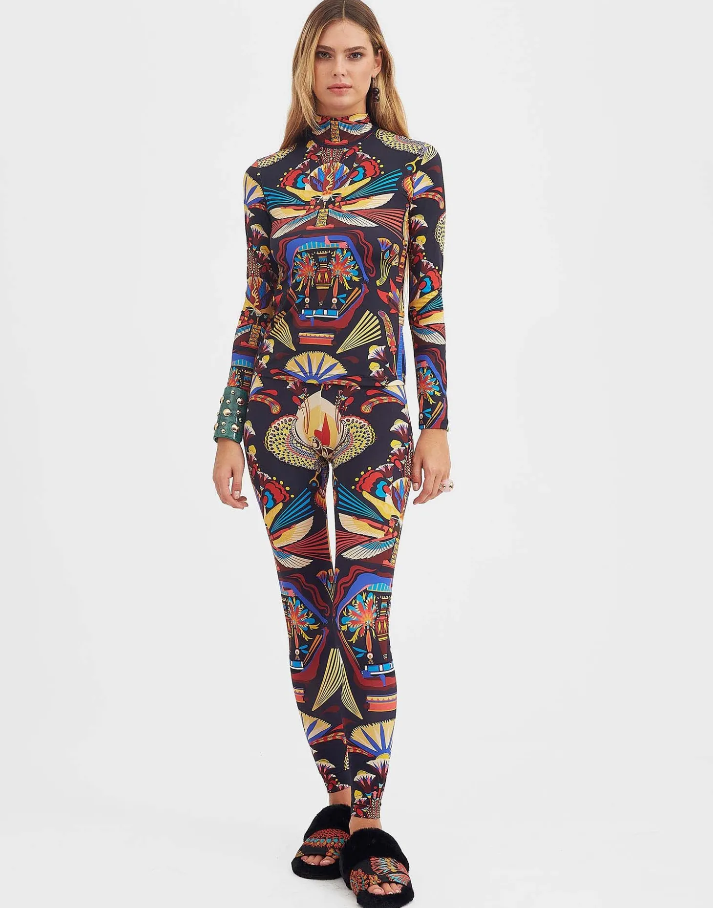 Our cult leggings are made of skinny jersey so they’re light, stretchy and fit like a comfortable second skin. They have a mid-rise waist and cut off at the ankle. Wear them for the fiercest look in your yoga class or under your favorite printed dress for a cute pattern clash.