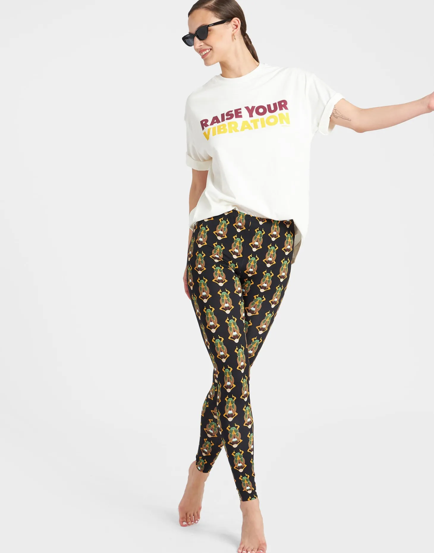 Our cult leggings are made of skinny jersey so they’re light, stretchy and fit like a comfortable second skin. They have a mid-rise waist and cut off at the ankle. Wear them for the fiercest look in your yoga class or under your favorite printed dress for a cute pattern clash.