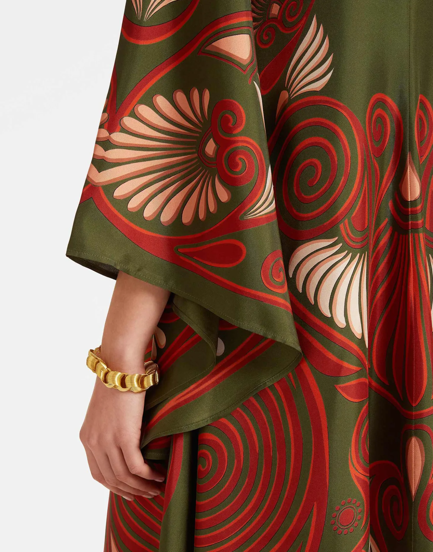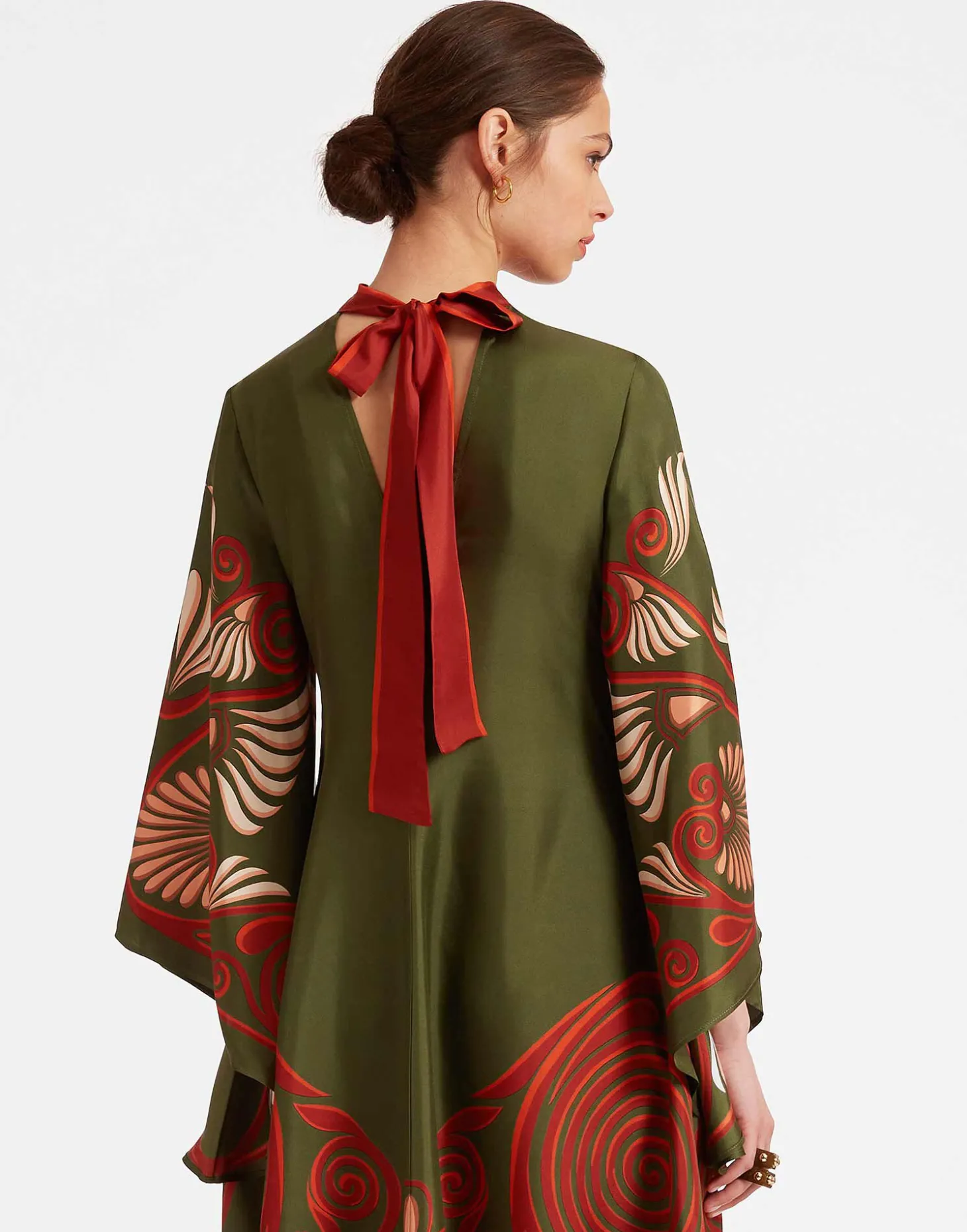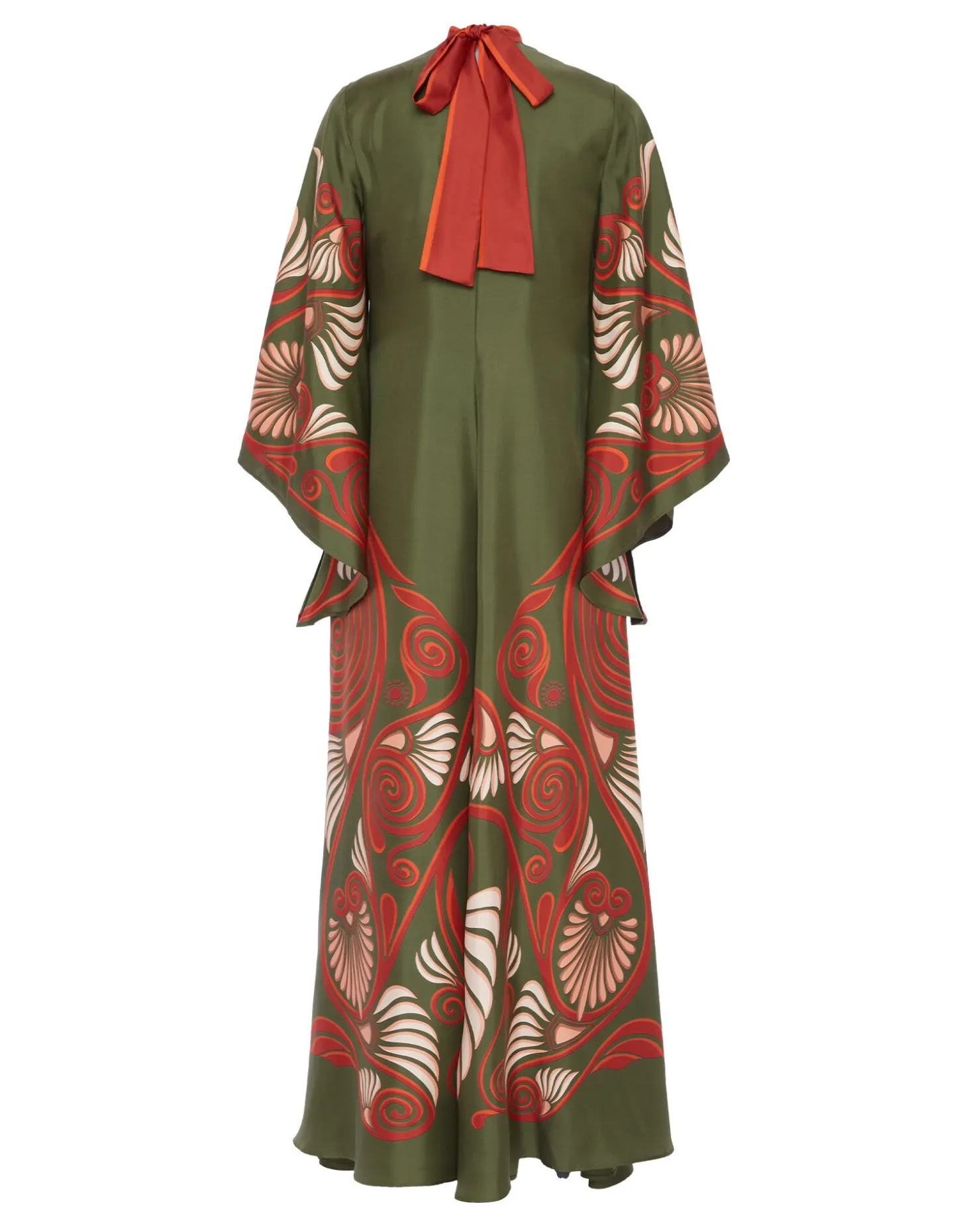 Magnifico DressKerylos Placée Dark Green in Silk Twill