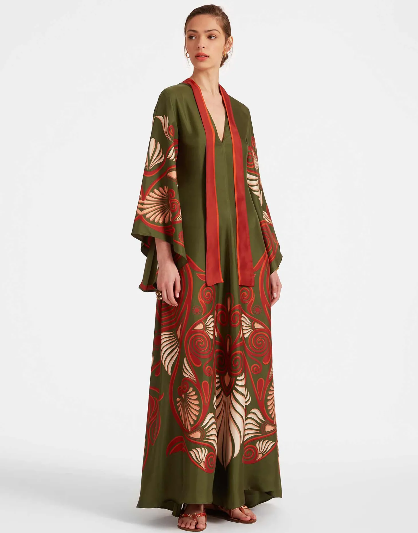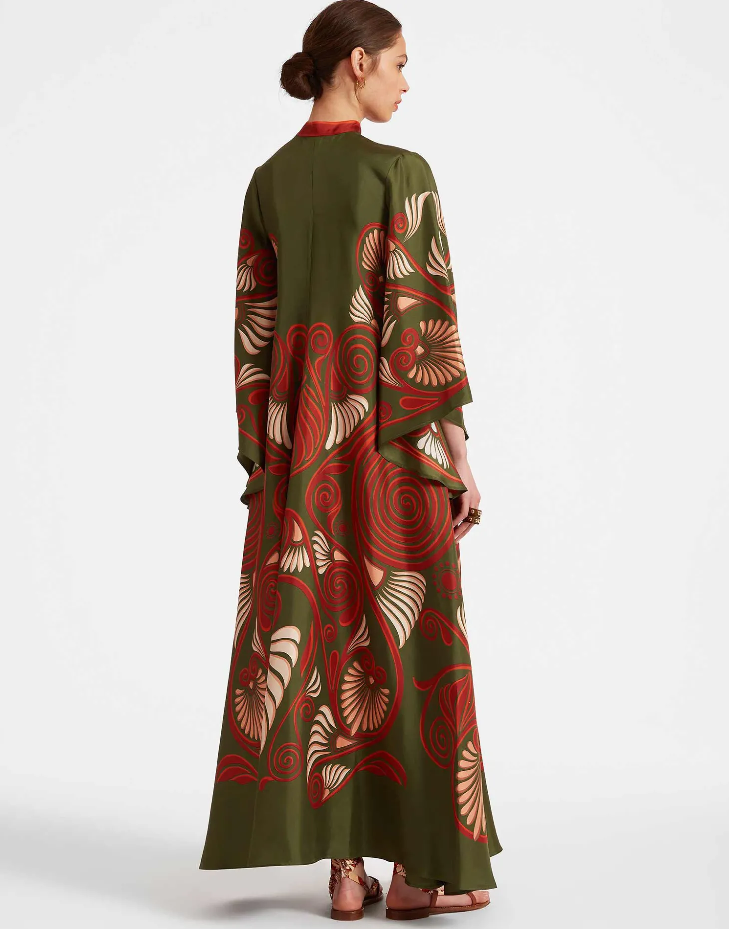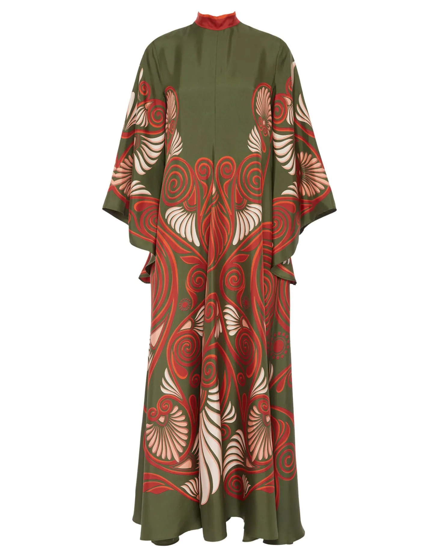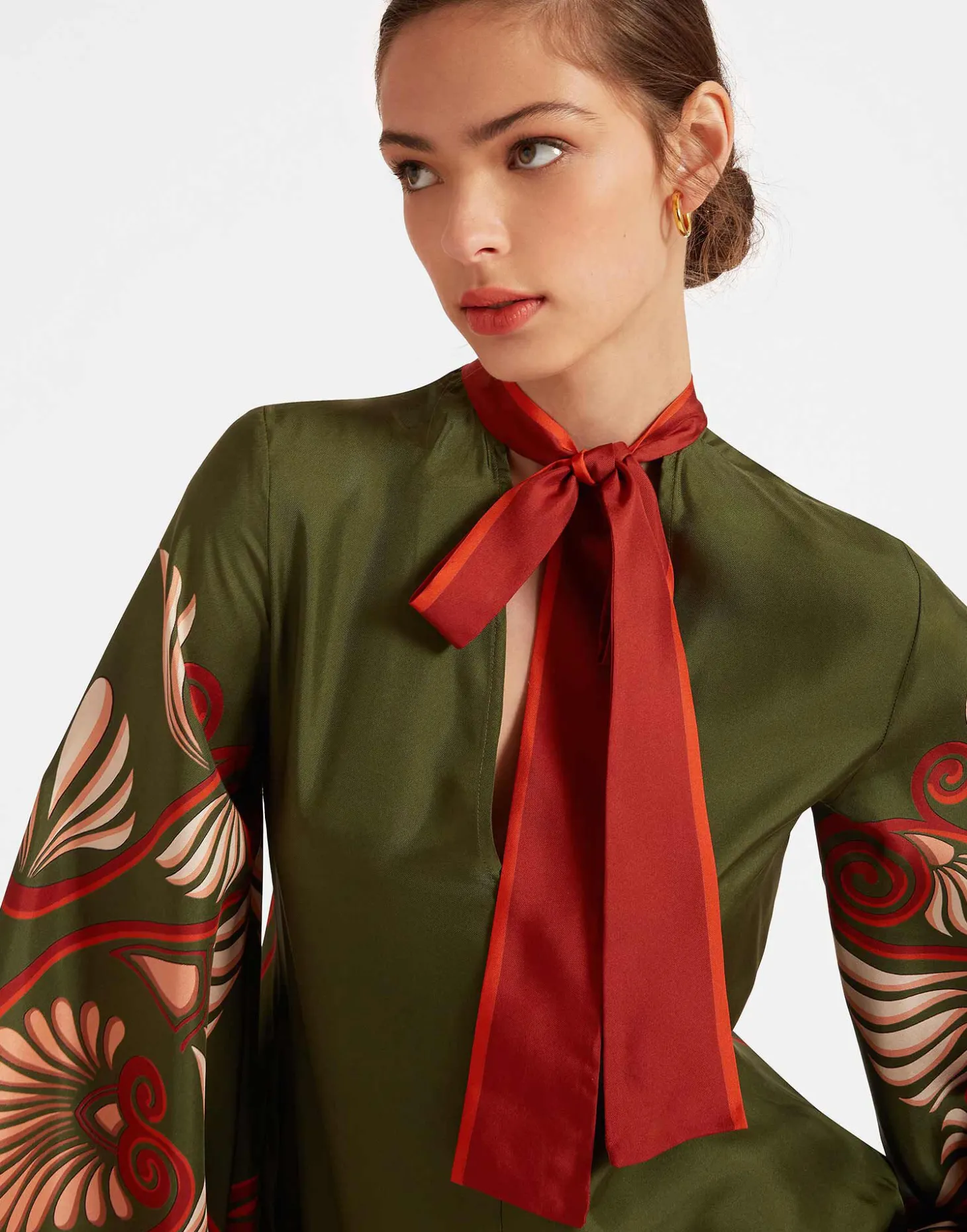 Magnifico DressKerylos Placée Dark Green in Silk Twill