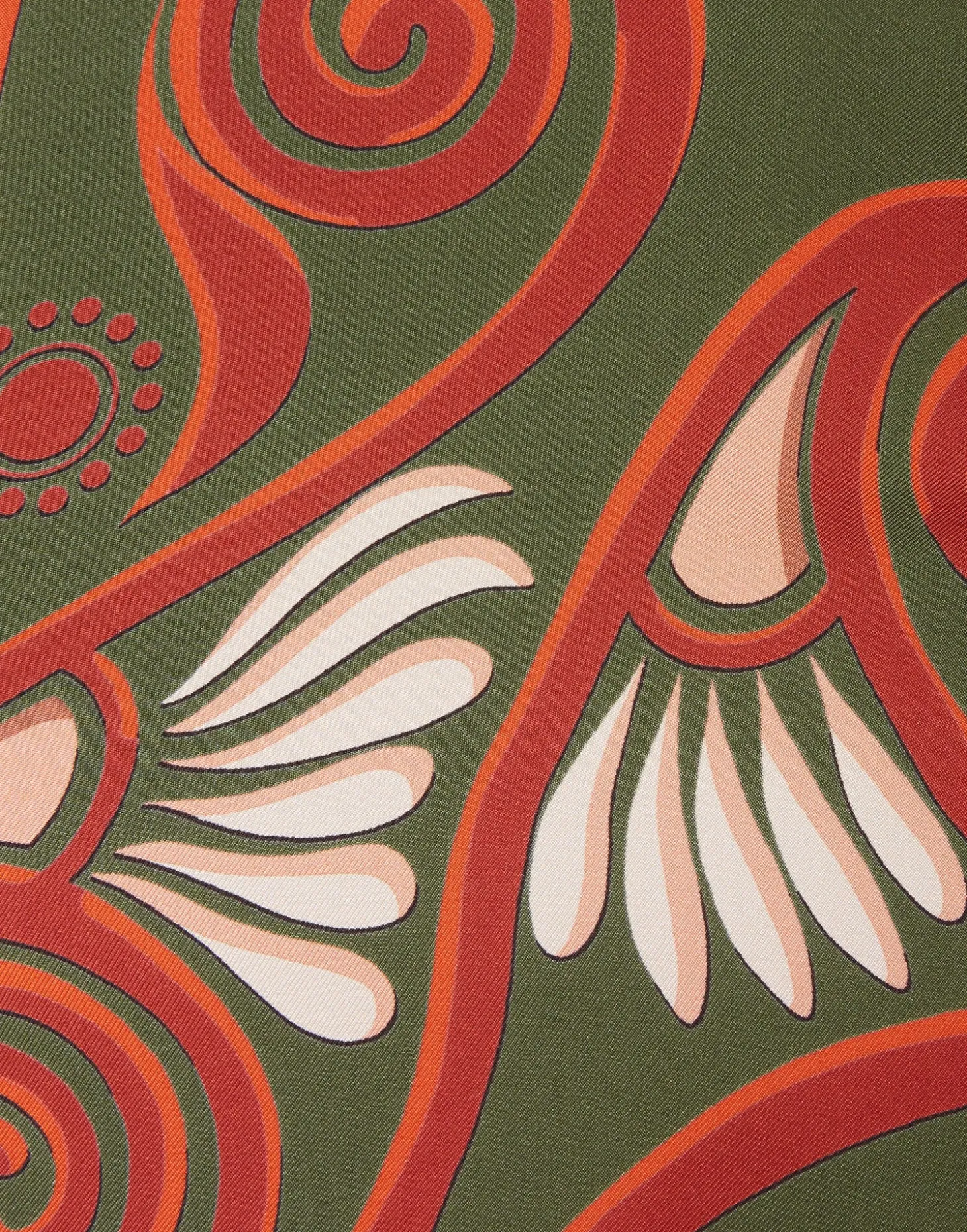 Shouldn’t every babe have a dress called the Magnifico hanging in her closet? La DoubleJ believes so! With a stand-up collar, long sash at the back and draped waterfall sleeves, this special number will glide you around the room with an ease and an elegance reserved for the most exclusive of occasions. Cut in our Como-made silk twill with a subtle sheen, it exudes chic Italian elegance in this dazzling print, exquisitely placed by artisan hands.