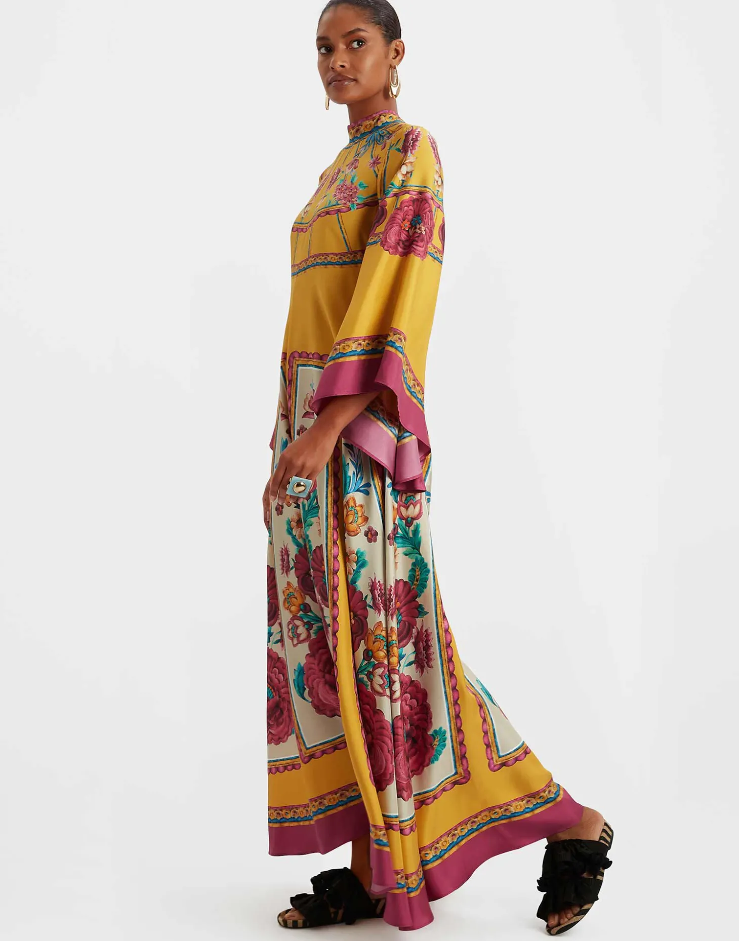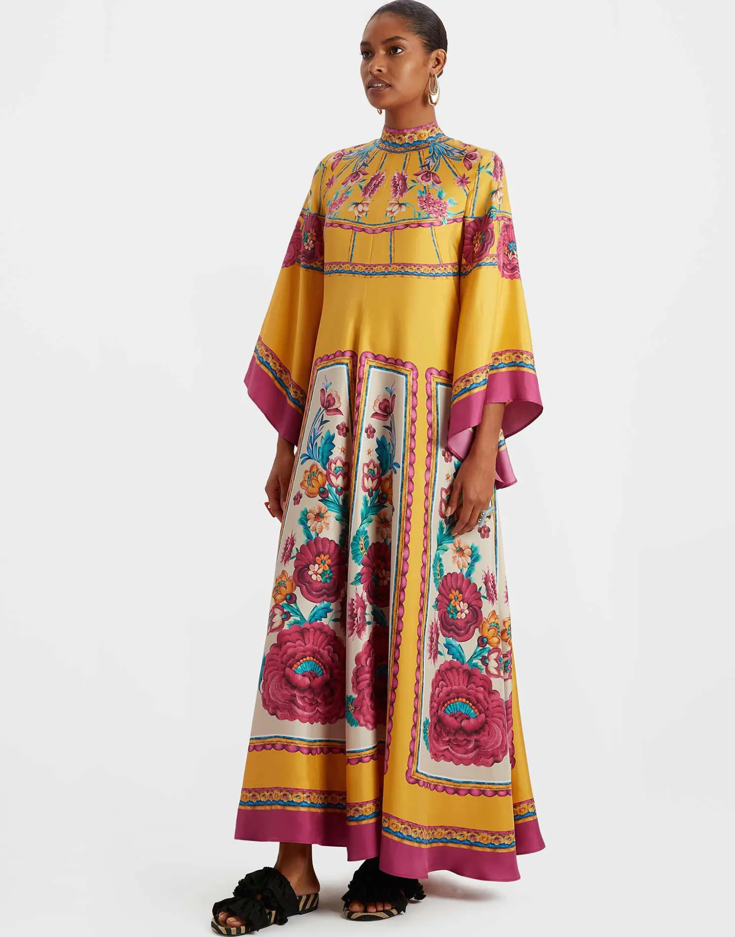 Shouldn’t every babe have a dress called the Magnifico hanging in her closet? La DoubleJ believes so! With a stand-up collar, long sash at the back and draped waterfall sleeves, this special number will glide you around the room with an ease and an elegance reserved for the most exclusive of occasions. A show-stopping sensation for spring in this hand-placed Zodiac print.