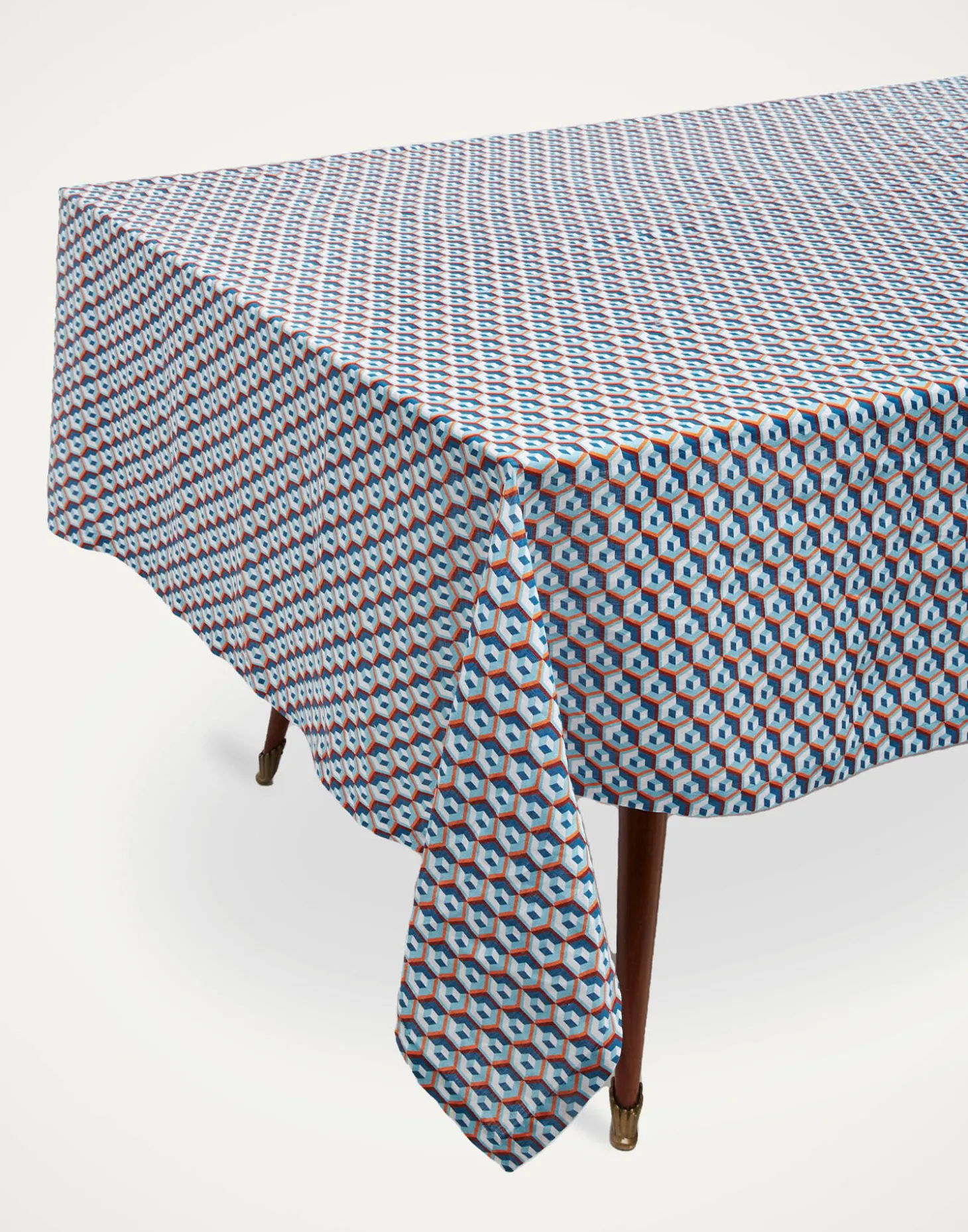 Medium Tablecloth (180×280)Cubi Blu in Linen