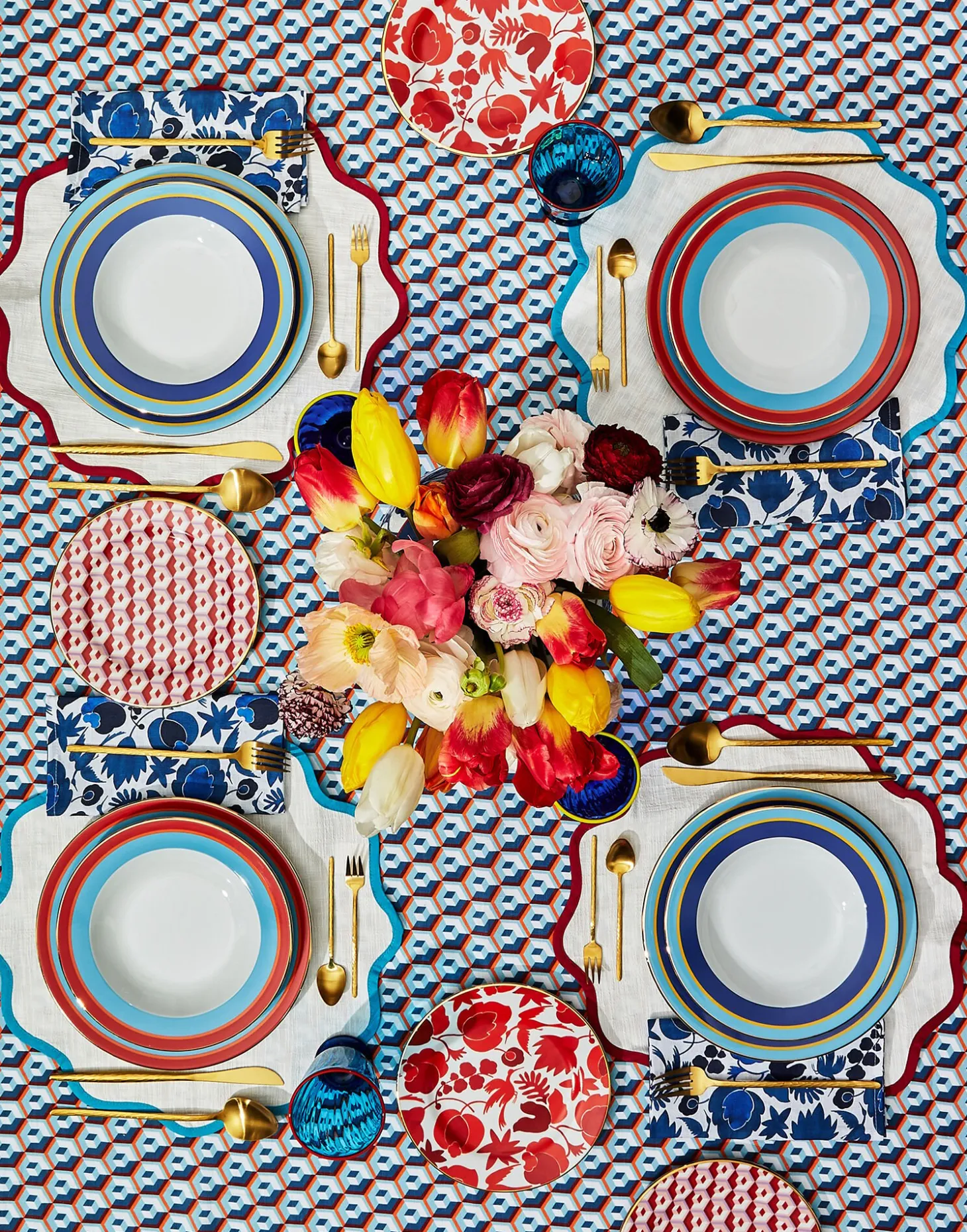 Part of our print-pumping collaboration with 1stDibs, this crisp 100% linen comes in a 1960s vintage geometric pattern, ready to be mixed and matched with the rest of the collection for a truly maximalist dining experience. A great gift for haute hostesses, do as J.J. does and throw it over your old table and pile it with Rainbow Glasses to make a fabulous centrepiece for at-home aperitivo parties. Treat with care: our bellissimo Italian-made linen has natural irregularities, such as small knots in the yarn which, for us, doubles the charm.