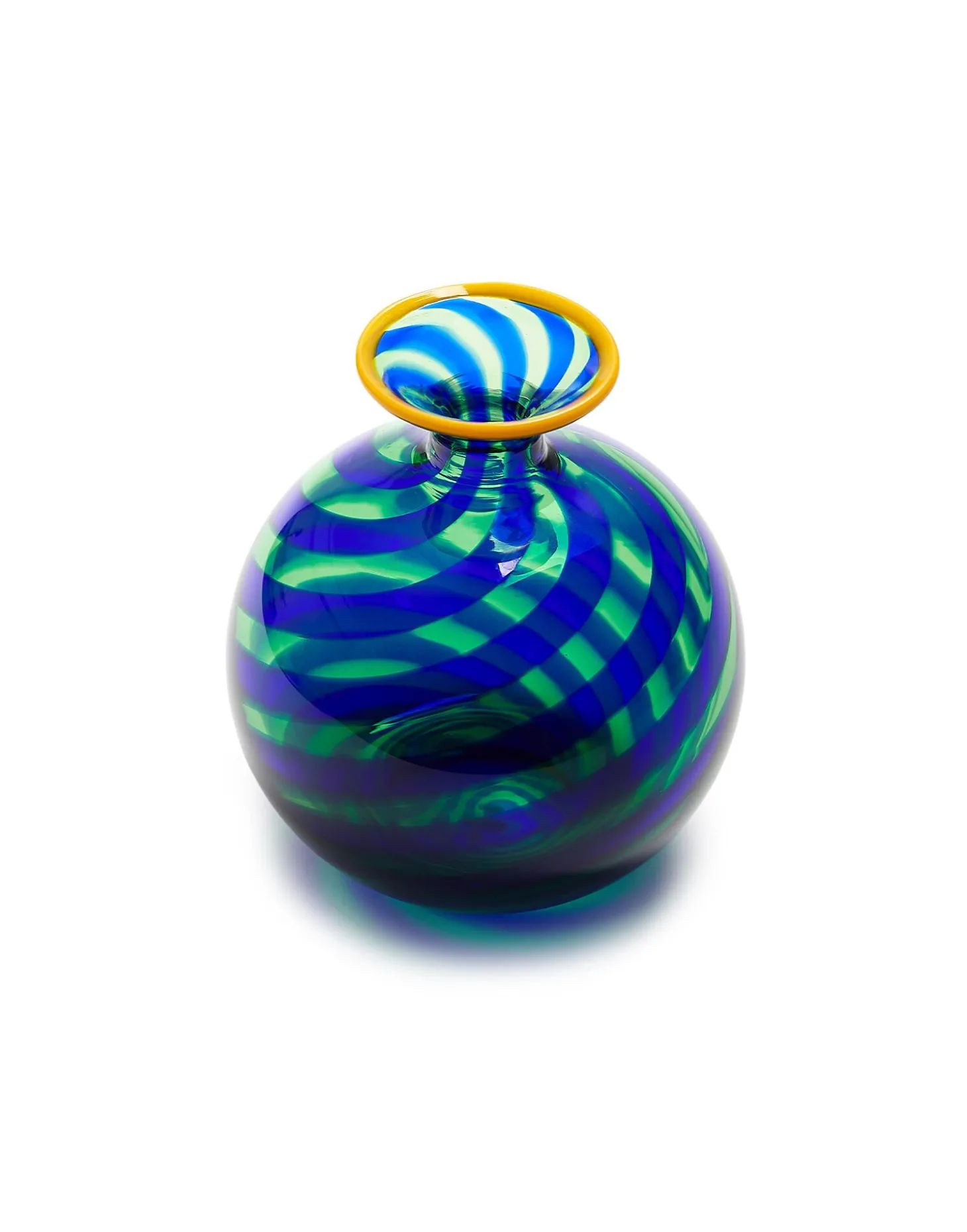 A perfectly petite vase that packs a perky punch, this beauty is crafted from hand-blown Murano glass, featuring all the unique signs and marks of its artisanal production that make each piece one-of-a-kind. With ridged details to draw your eye, place it around your home for a pop of joy, fill with buds or mix and match with our other vases for a vibration-raising table centrepiece. Oh, and it makes a great gift, too