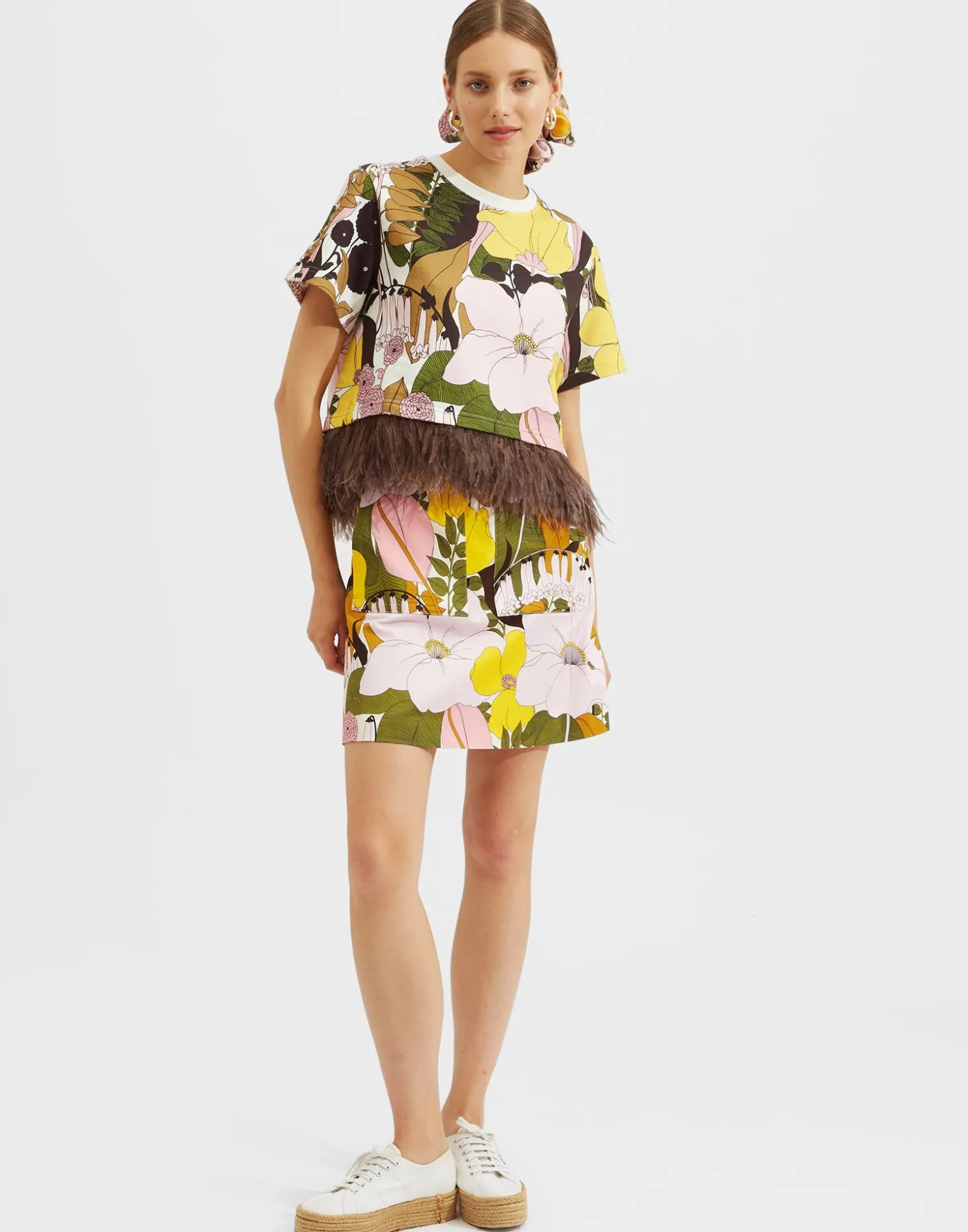 Mini SkirtBig Flower Rose in Heavy Cotton Stretch