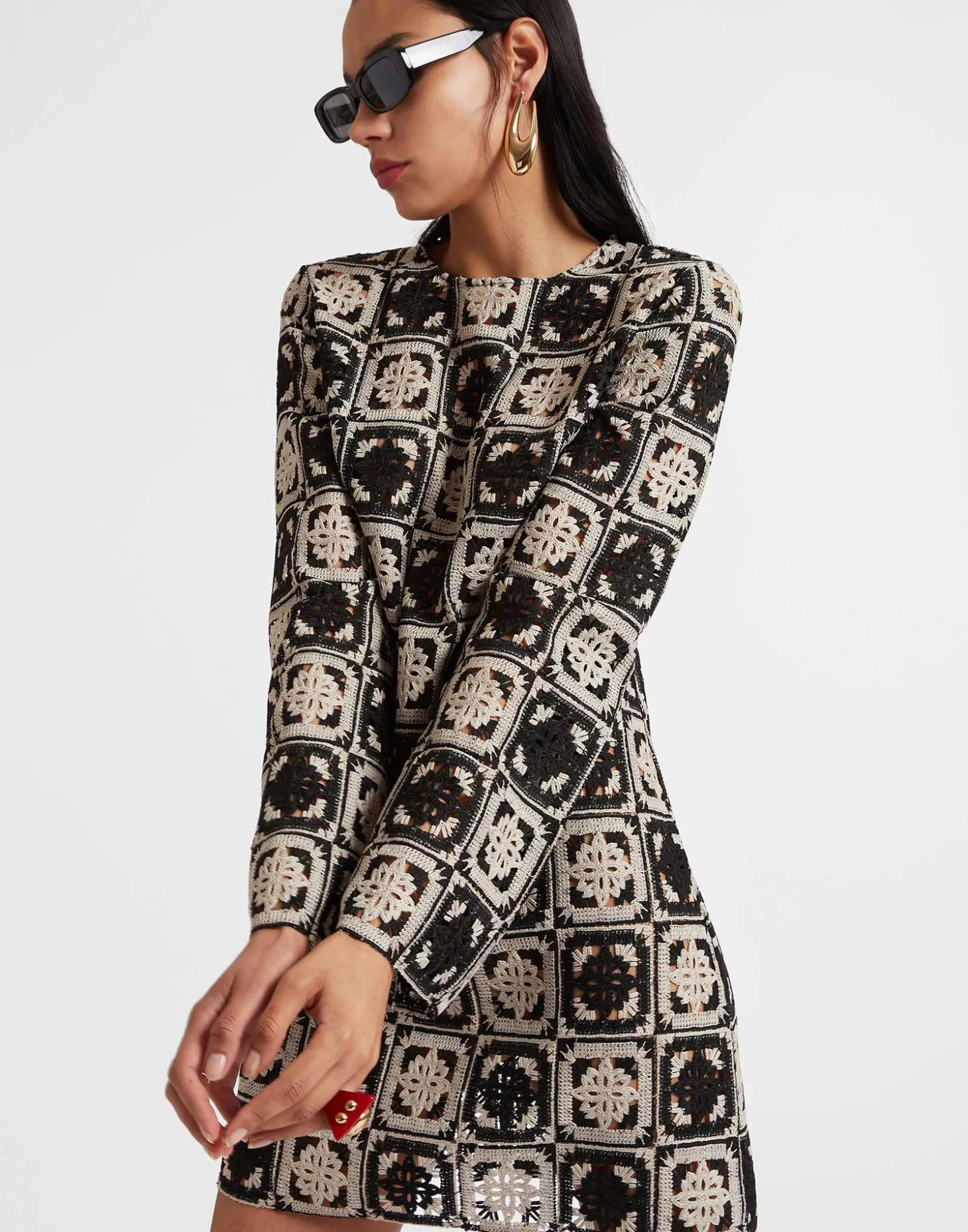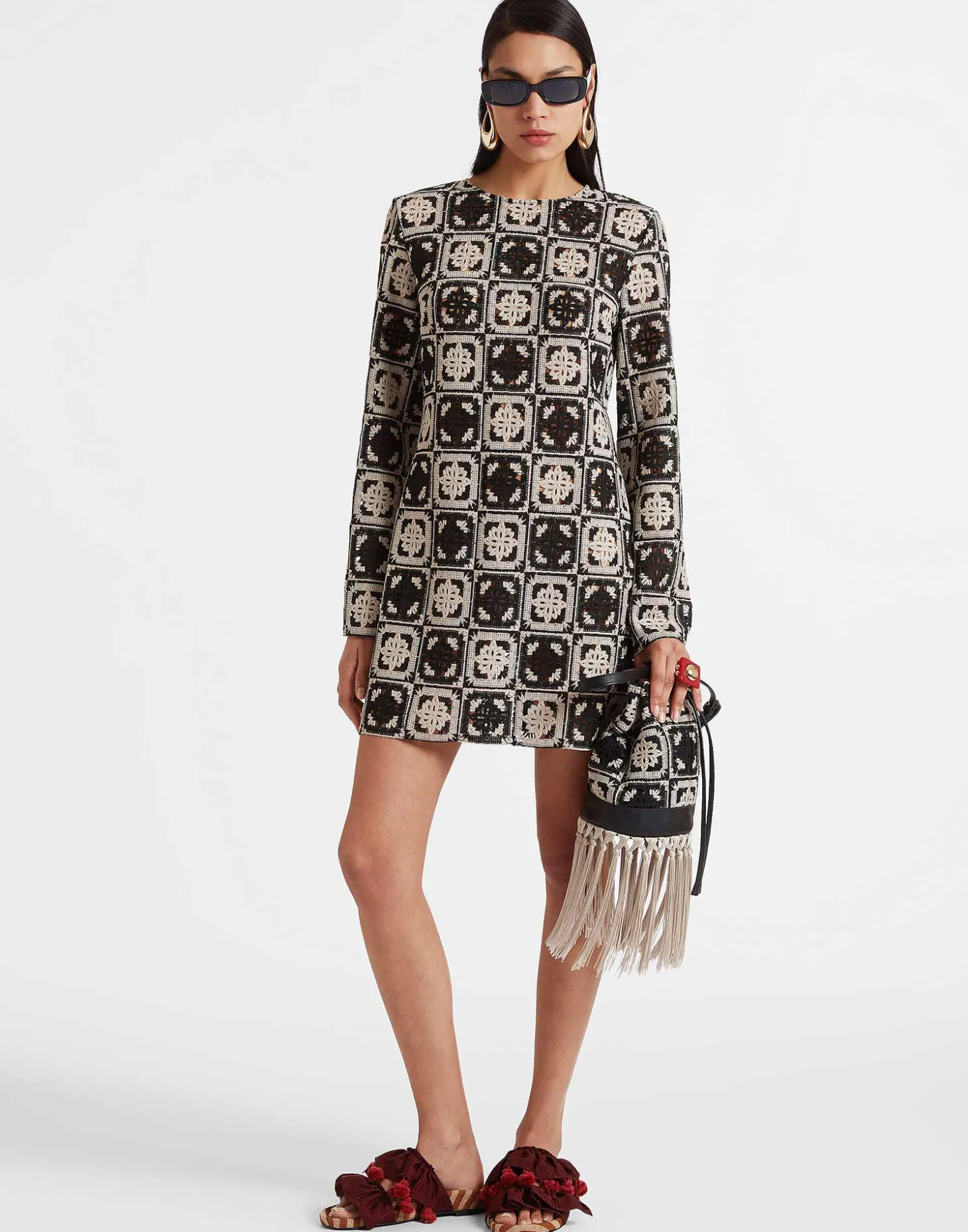 Mini Supreme Swing DressMini Tiles Black in Macramé