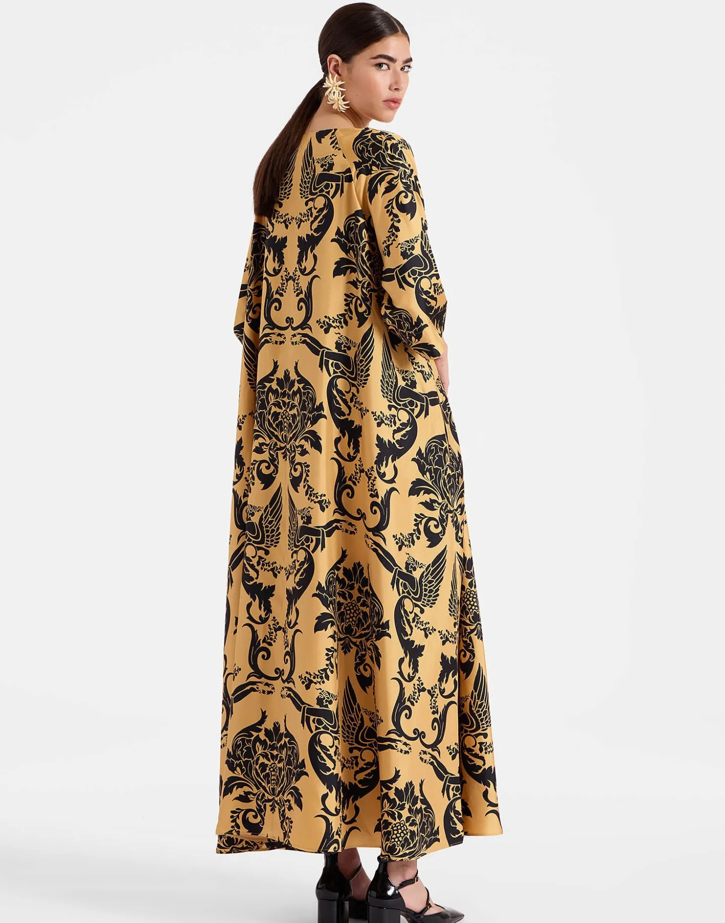 For discerning caftan lovers only, this big volume bella has a 1970s feel and comes in veritable acres of our Como-made silk. A generous fit is a must-have when dinner is involved at any decadent Italian soirée and this baby brings it with floor-sweeping lengths and a flowing cut. Simply add some flats and doorknocker earrings and prepare to be ravishing, sister.
